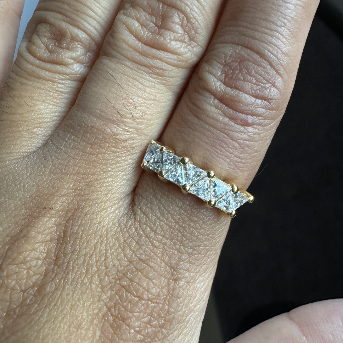 18K Gold Half Eternity Wedding Band Triangle Cut Moissanite Engagement Ring
