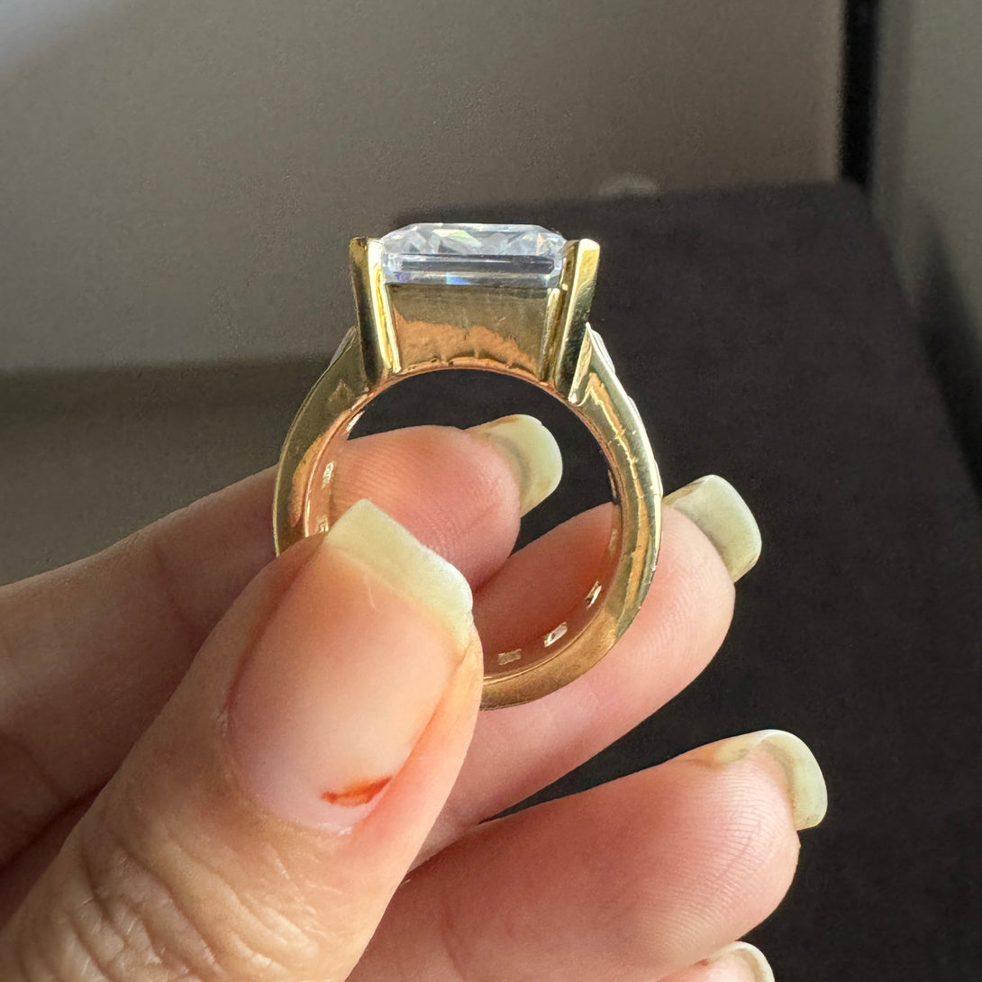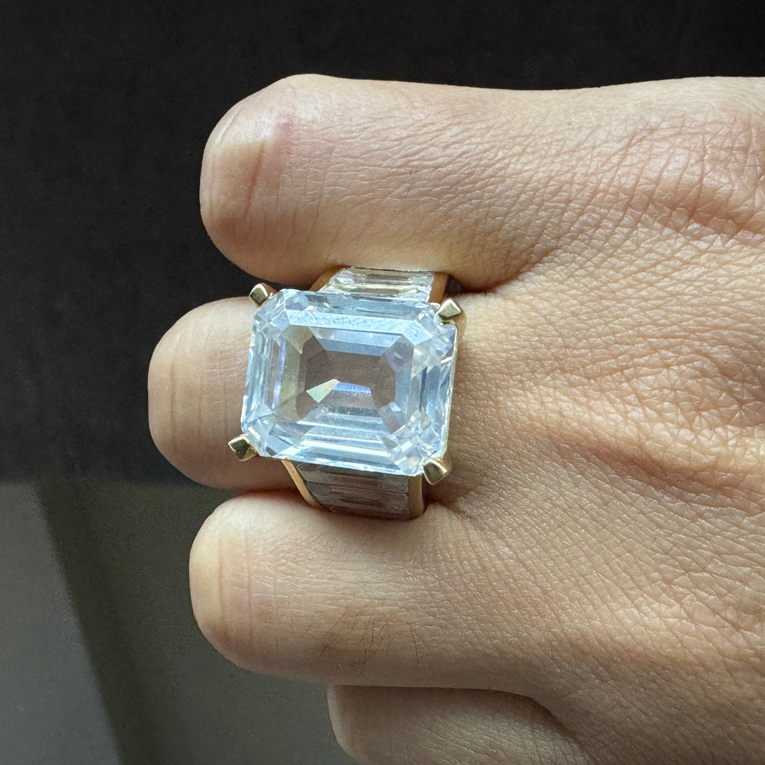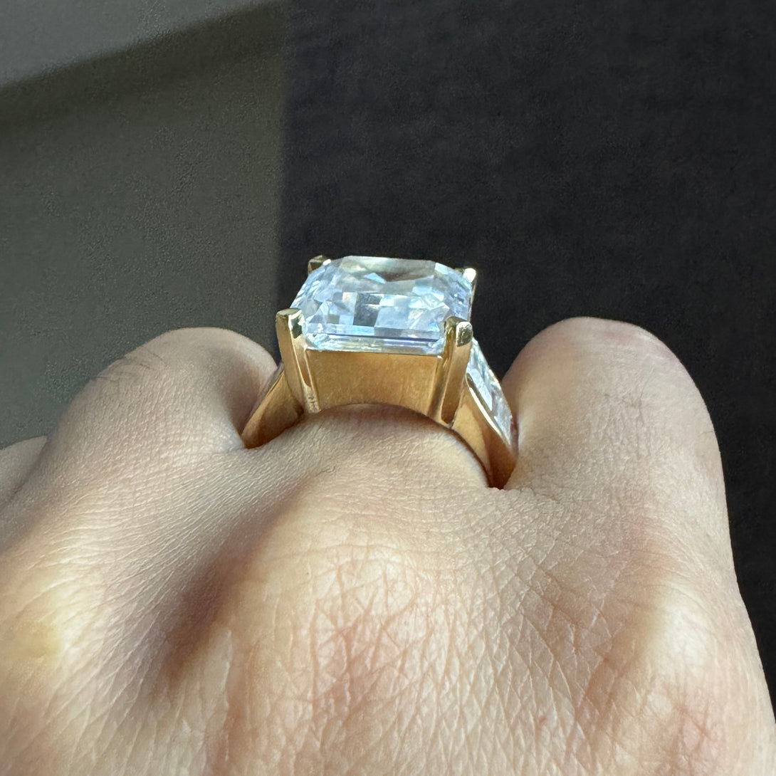 Channel Set Emerald Diamond Ring 7 CTW Emerald Cut Moissanite Engagement Ring
