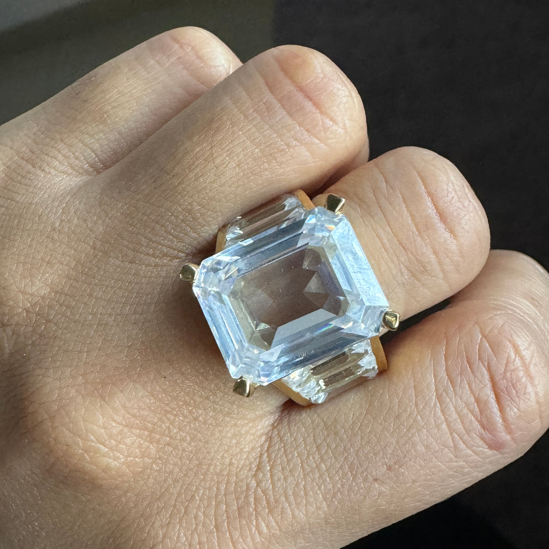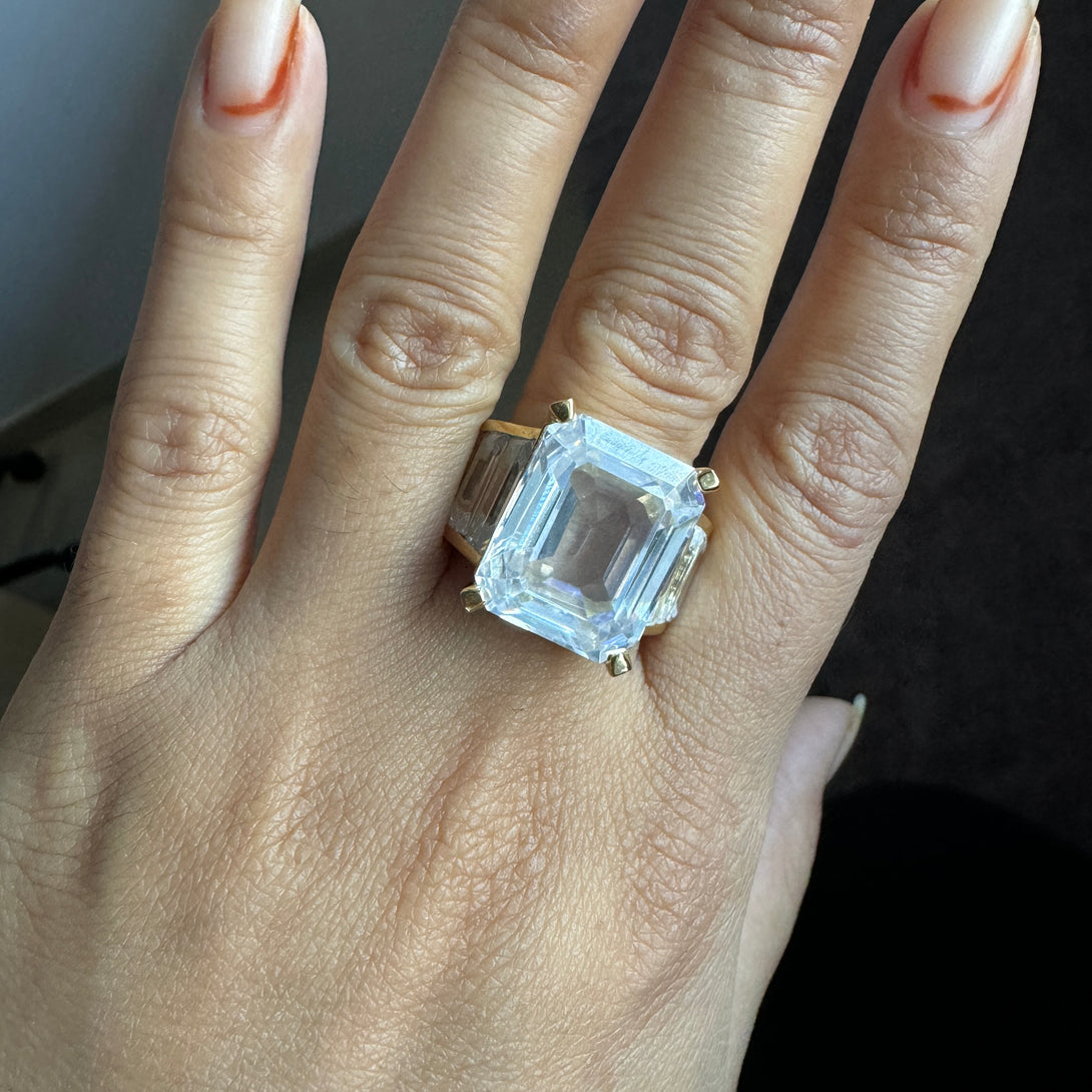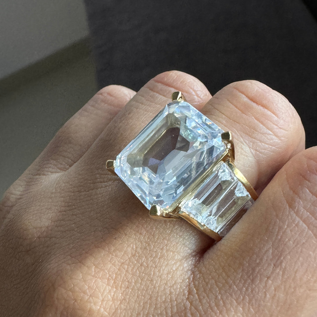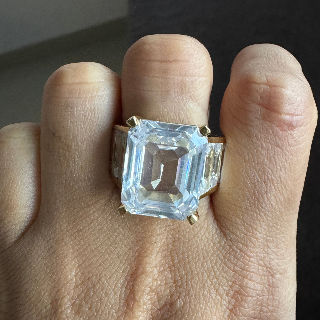 Channel Set Emerald Diamond Ring 7 CTW Emerald Cut Moissanite Engagement Ring