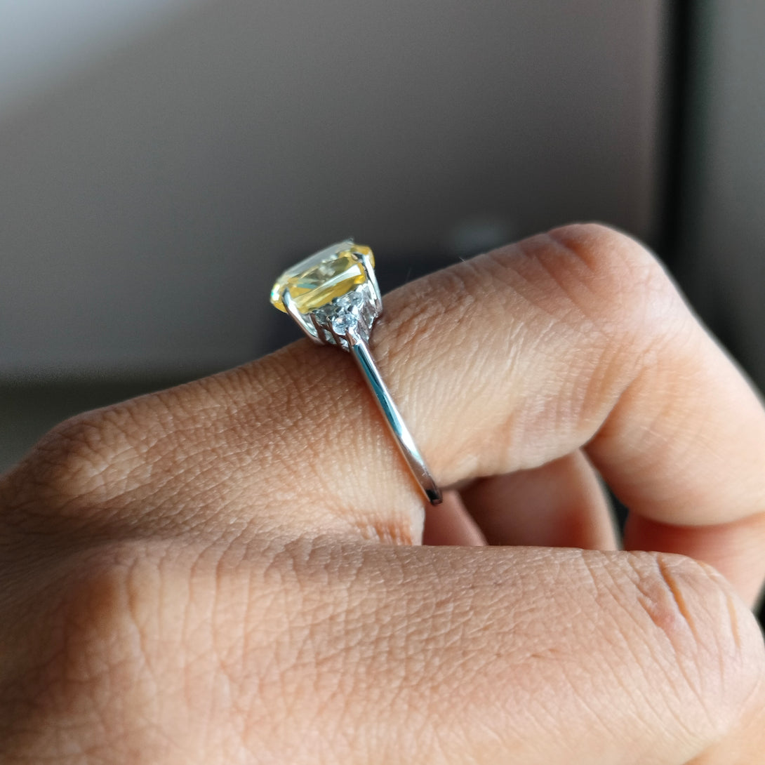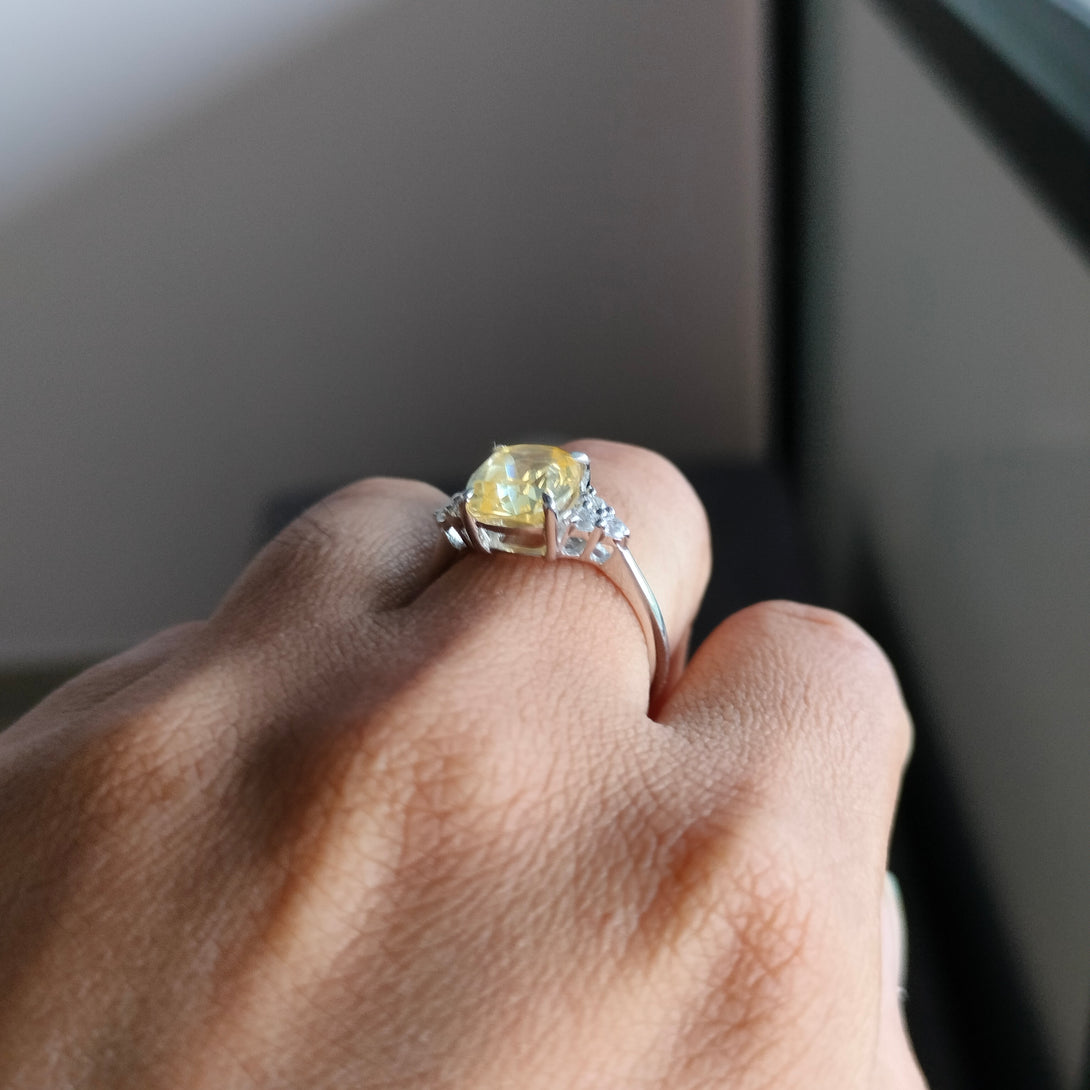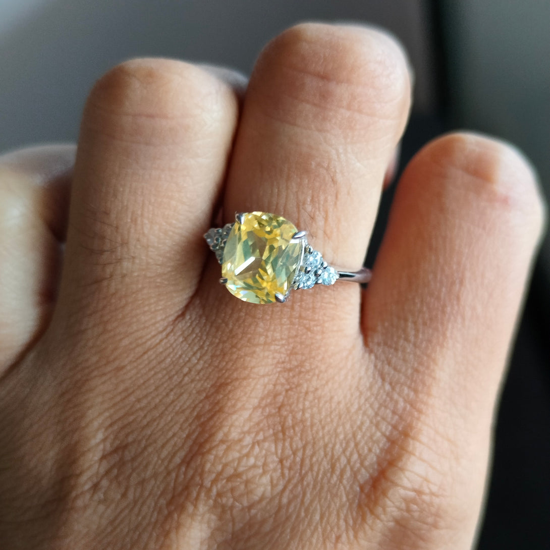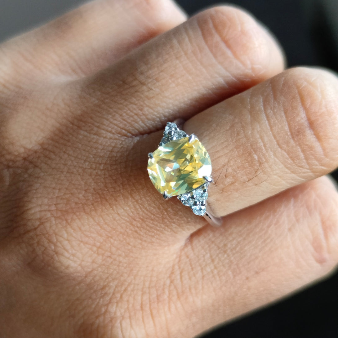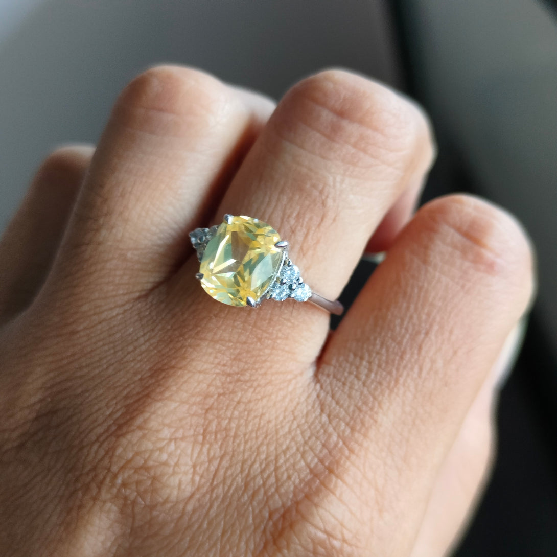 Canary Yellow Moissanite Ring Long Cushion Cut Engagement Art Deco Ring For Her