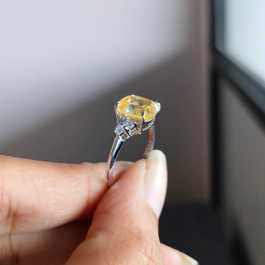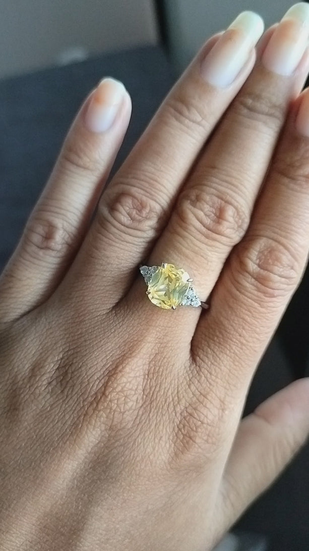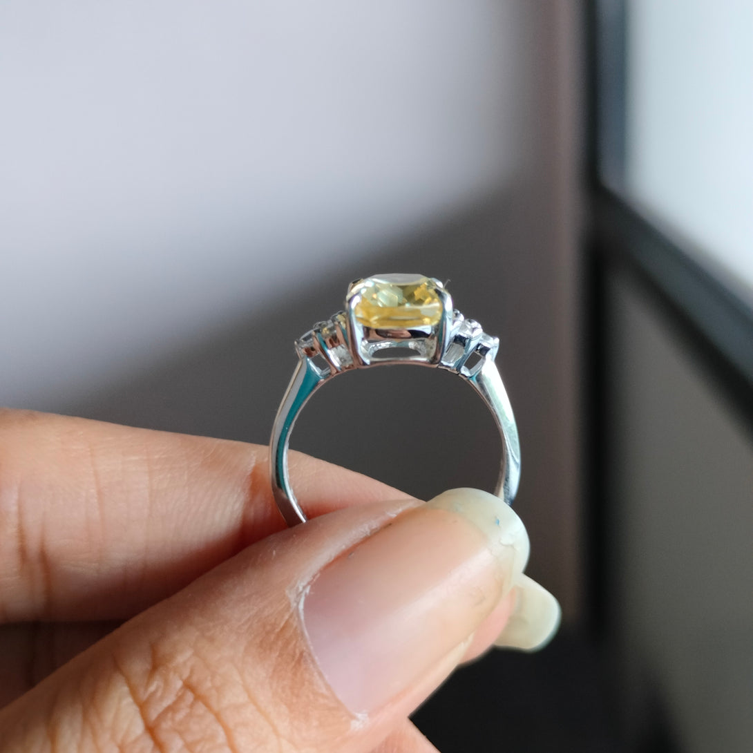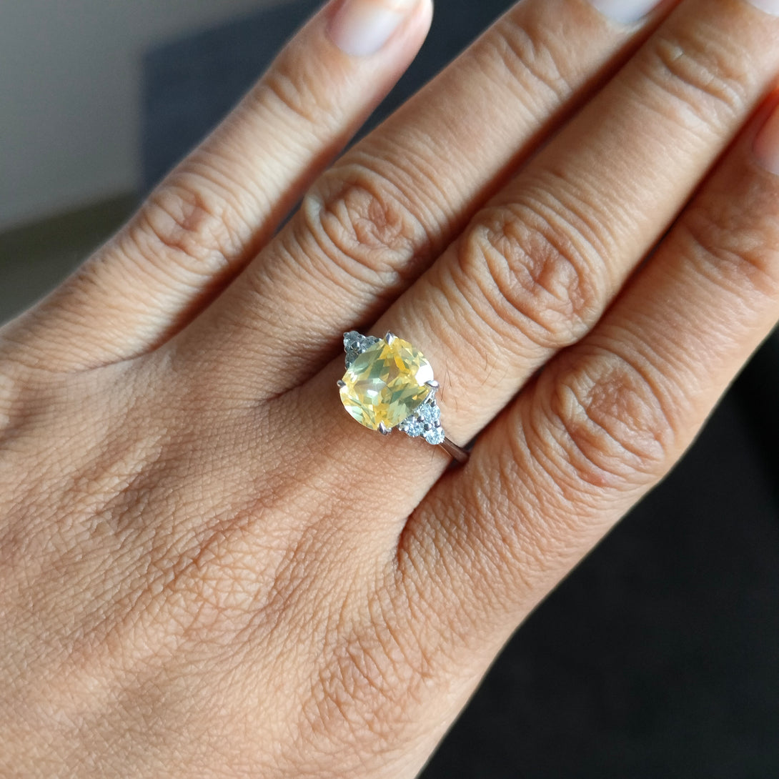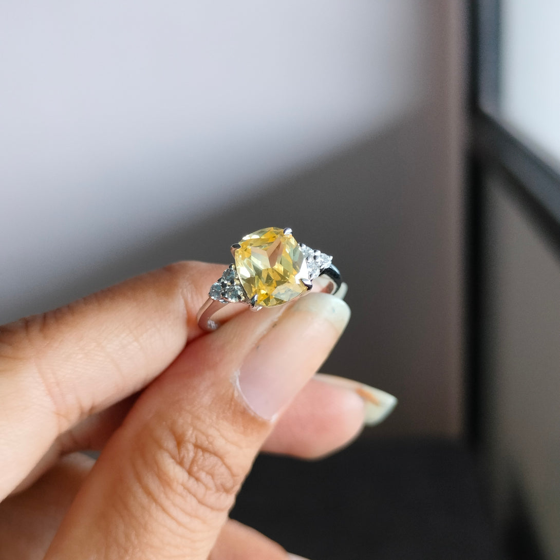 Canary Yellow Moissanite Ring Long Cushion Cut Engagement Art Deco Ring For Her