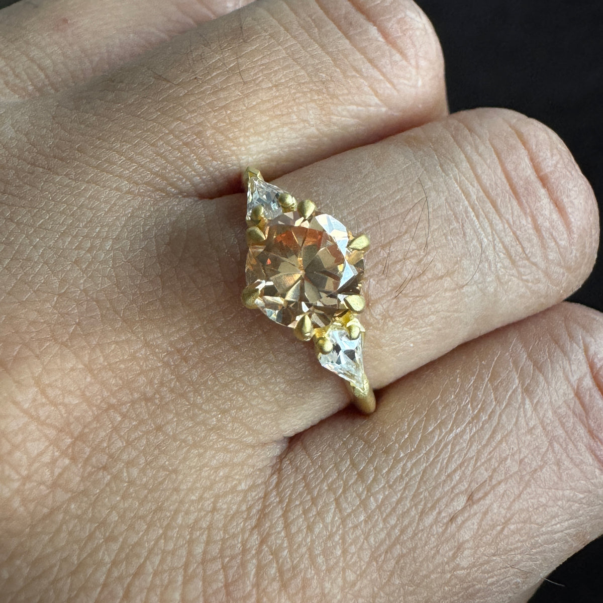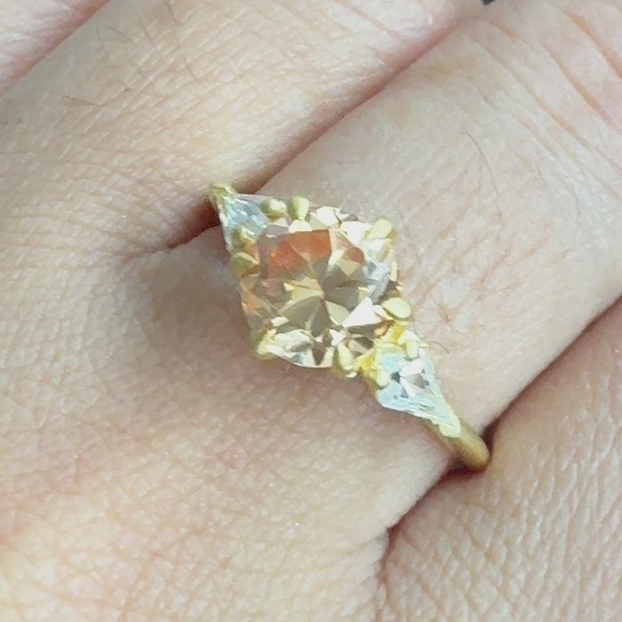 1.60 CTW Round Cut Three Stone Ring Brown Moissanite Engagement Ring