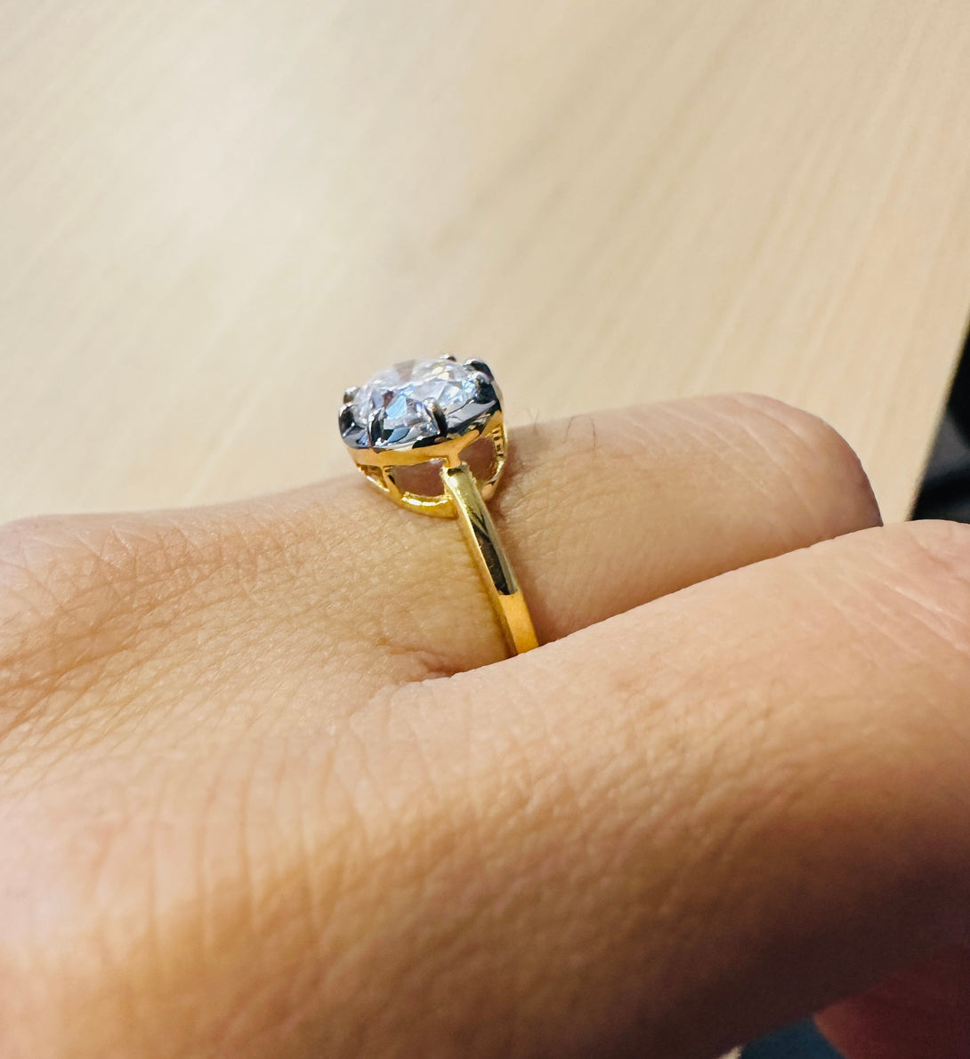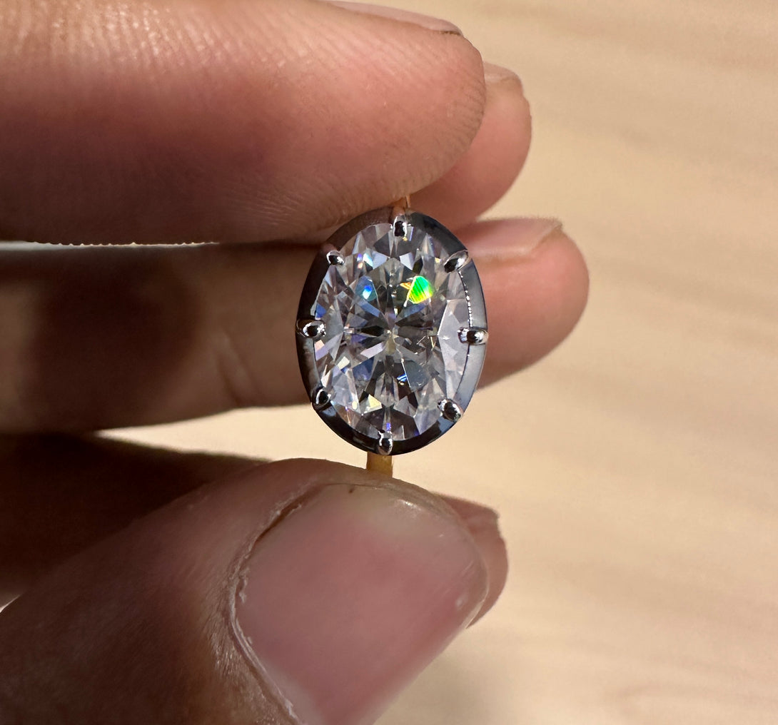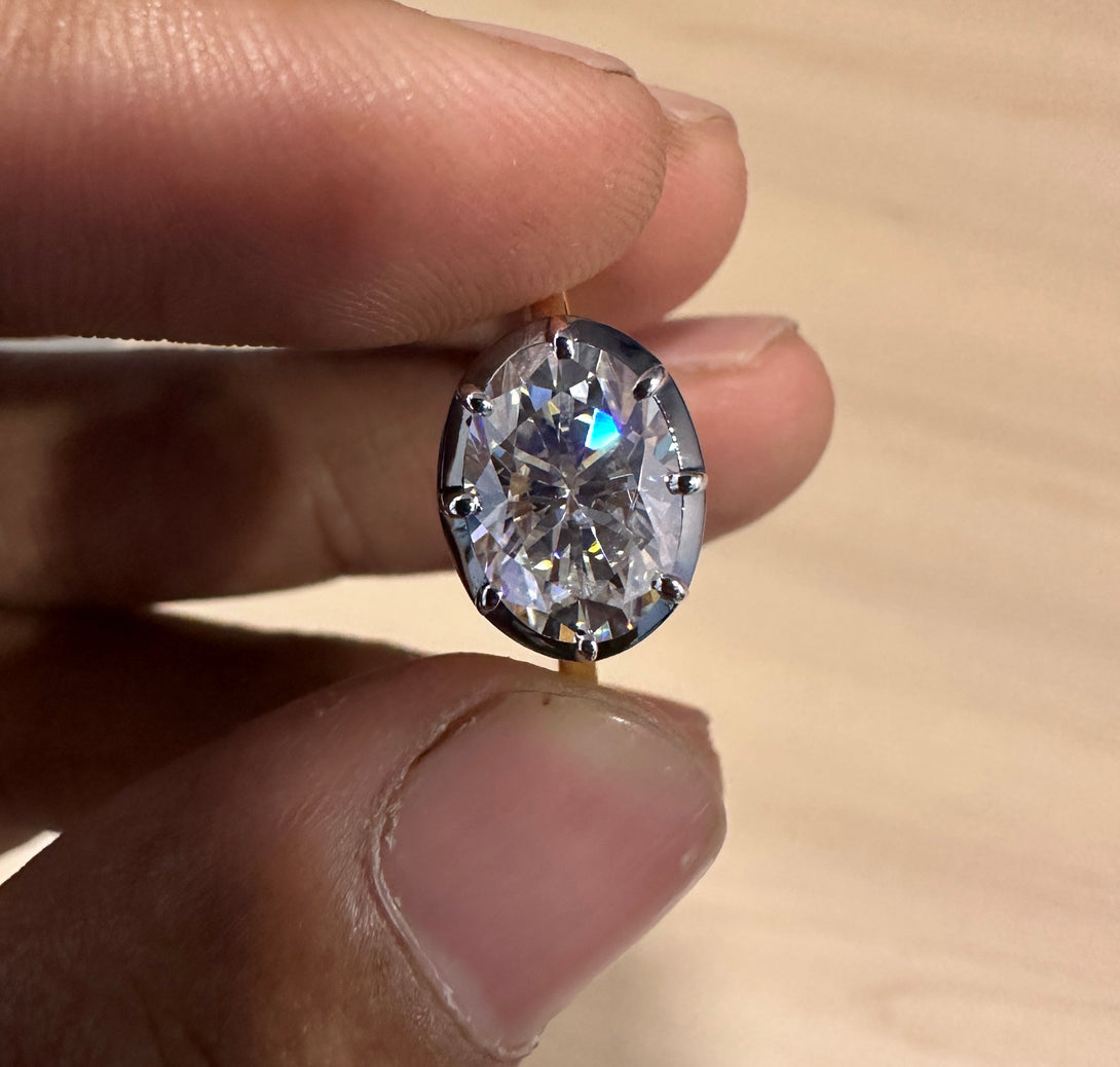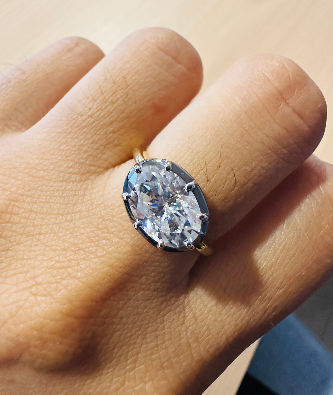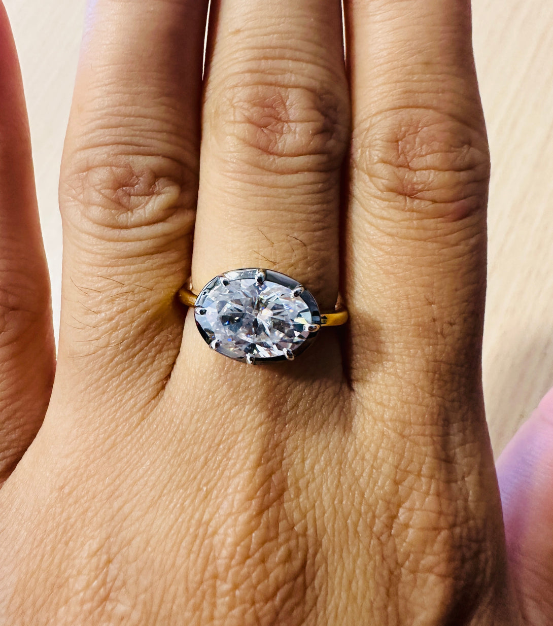 Black Rhodium Bezel Set Solitaire Ring White Oval Moissanite East West Engagement Ring
