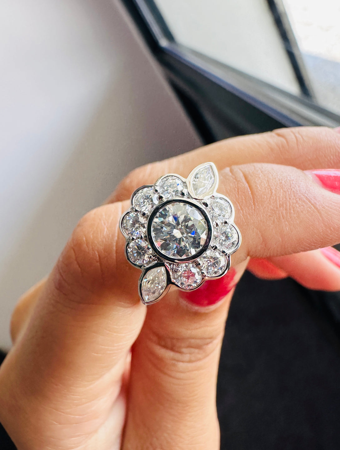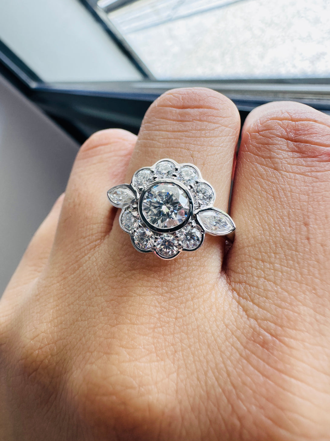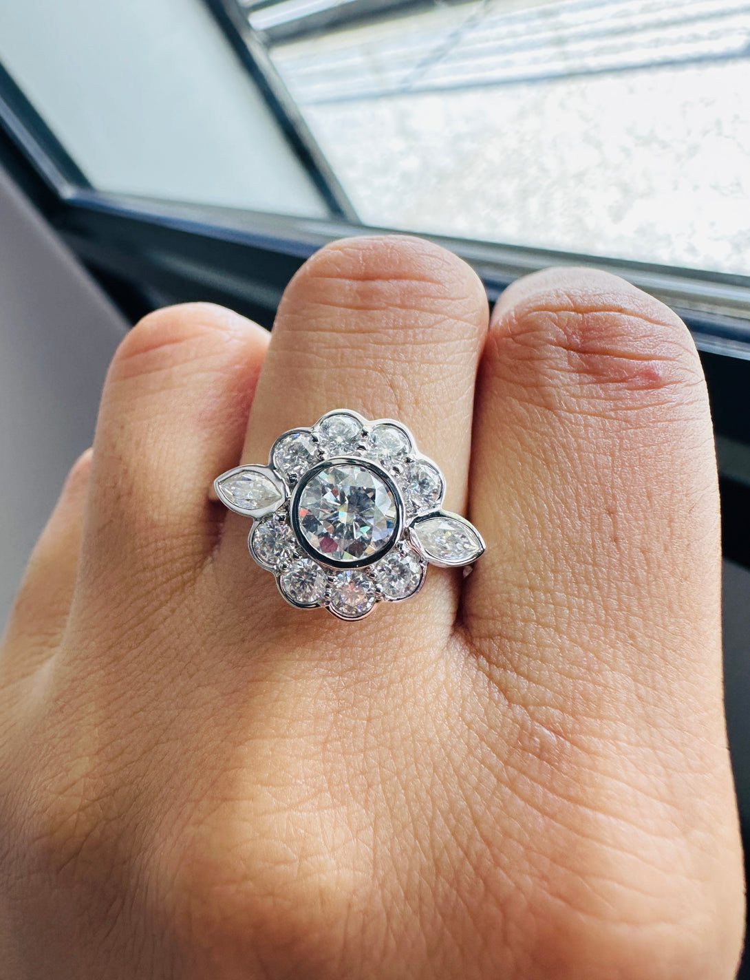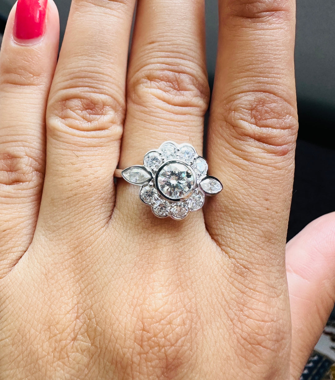 Bezel Set Round Cut Moissanite Beautiful Floral Minimalist Engagement Ring Her