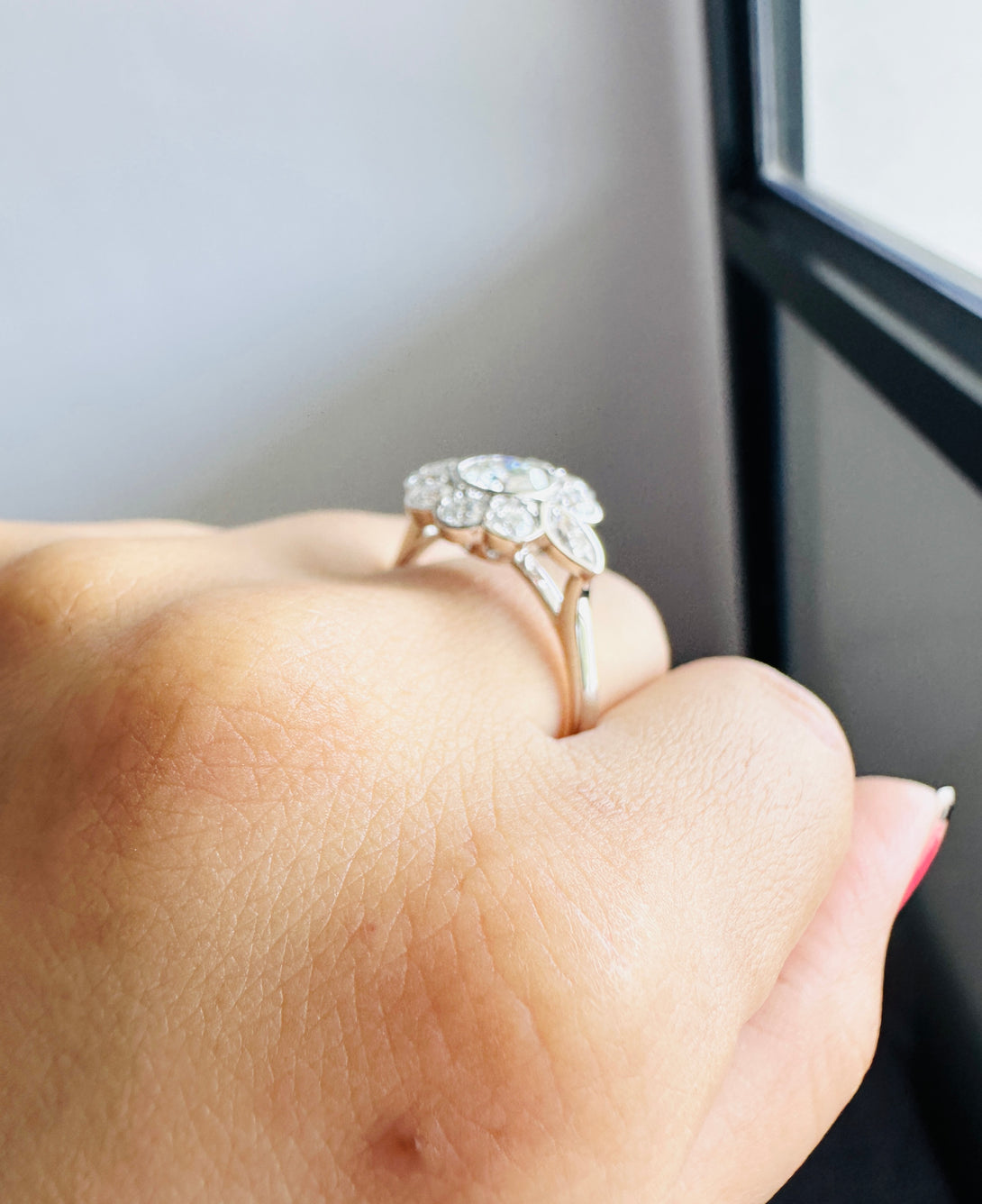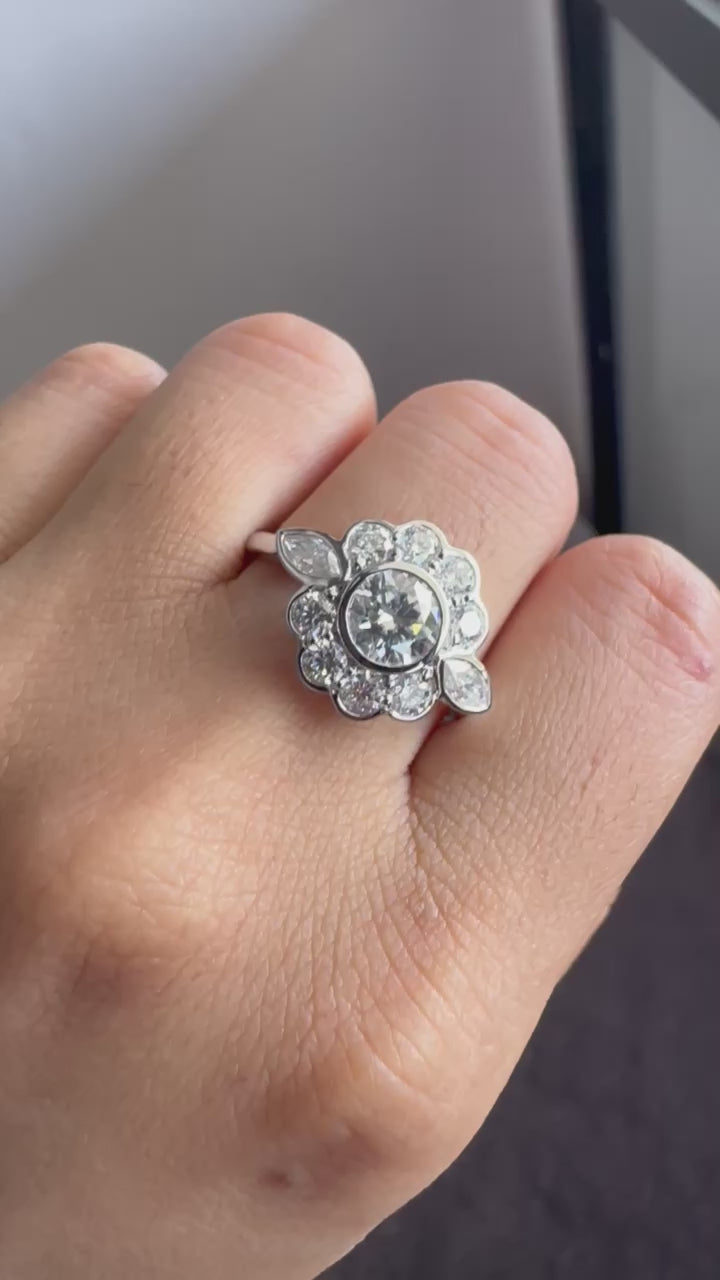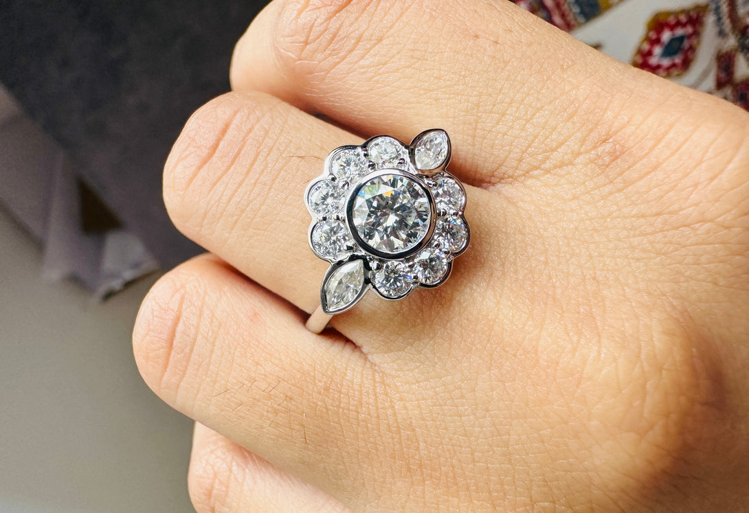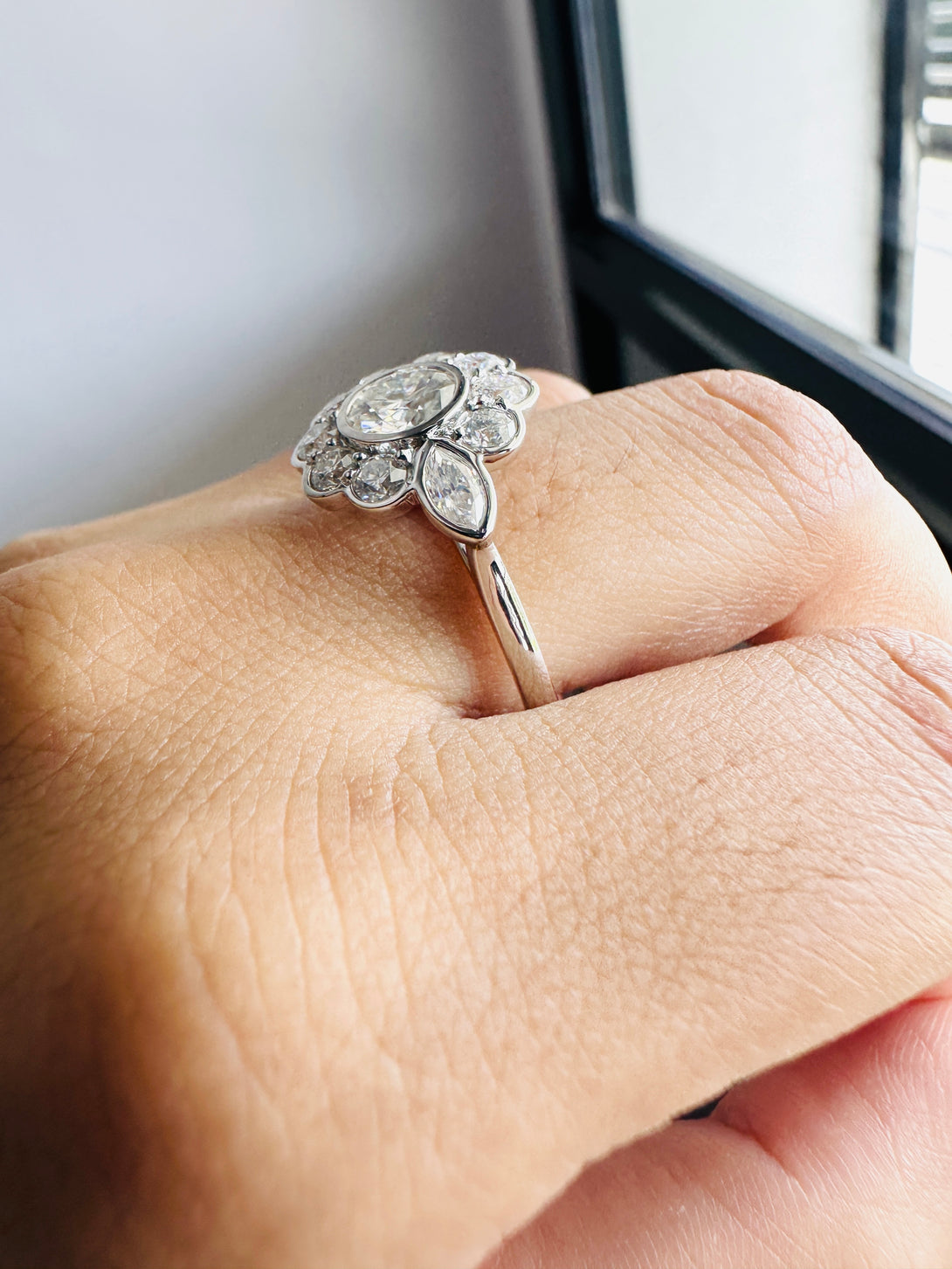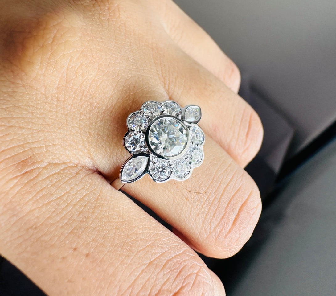 Bezel Set Round Cut Moissanite Beautiful Floral Minimalist Engagement Ring Her