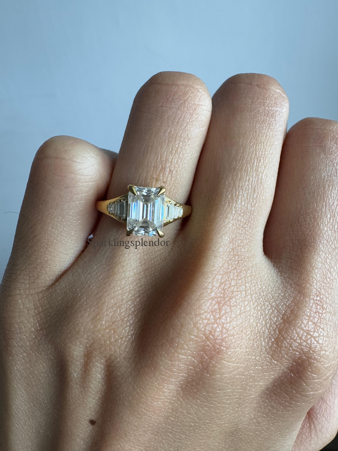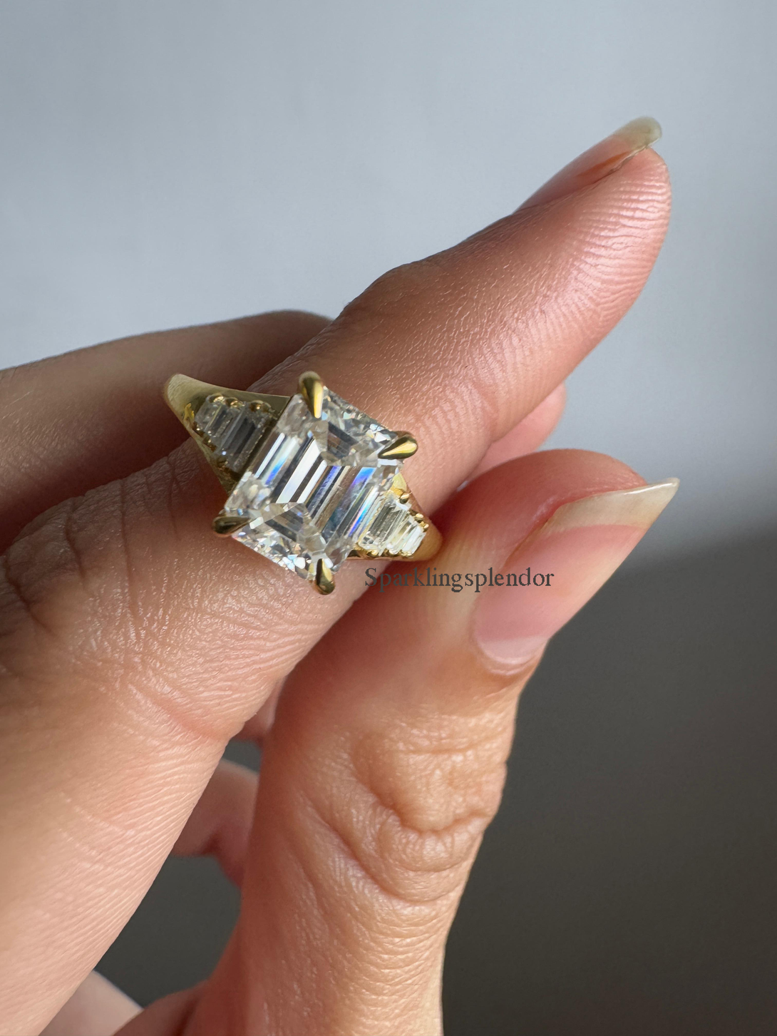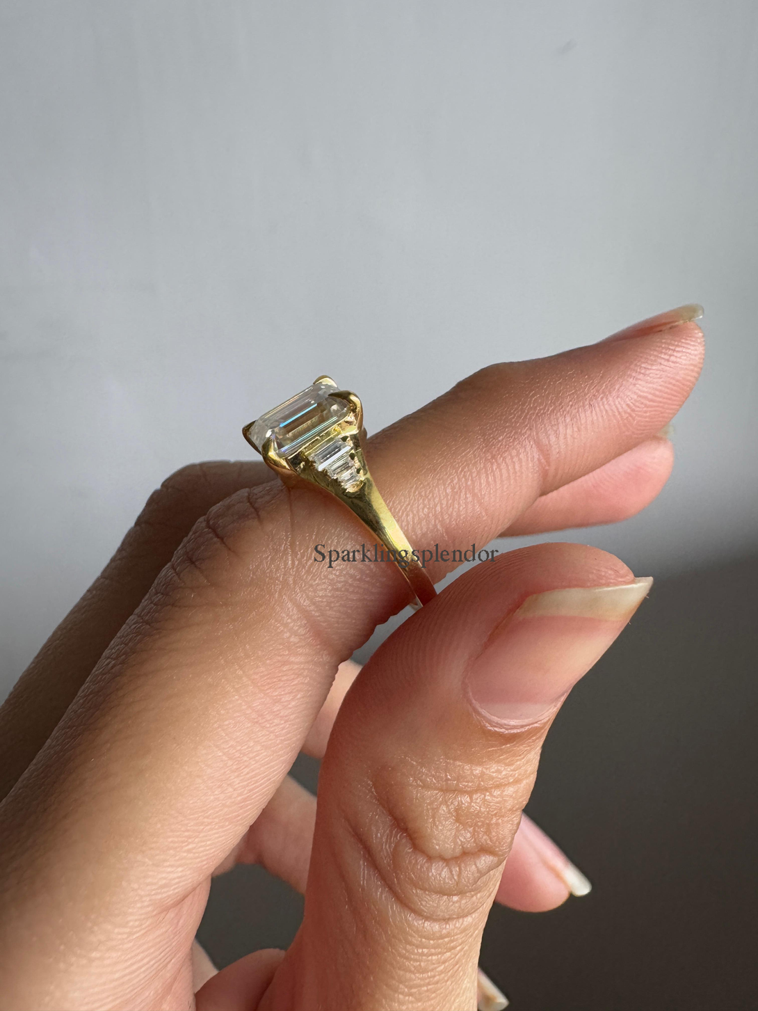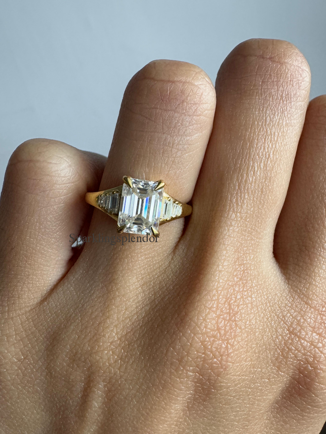 Colorless Emerald Cut Moissanite Engagement Ring Wedding Bridal Proposal Ring