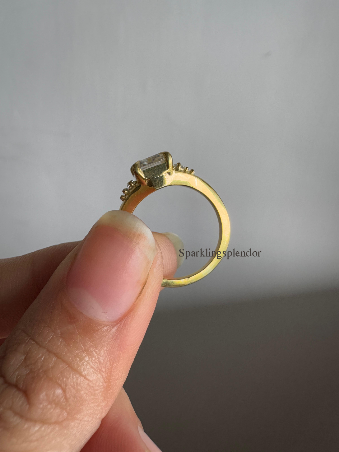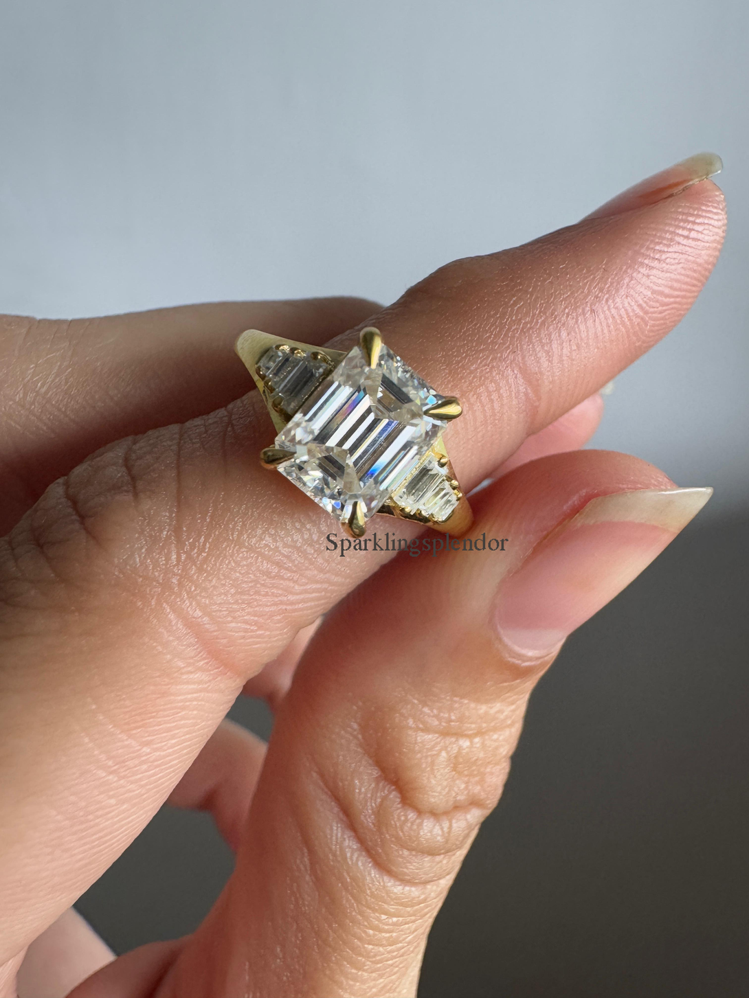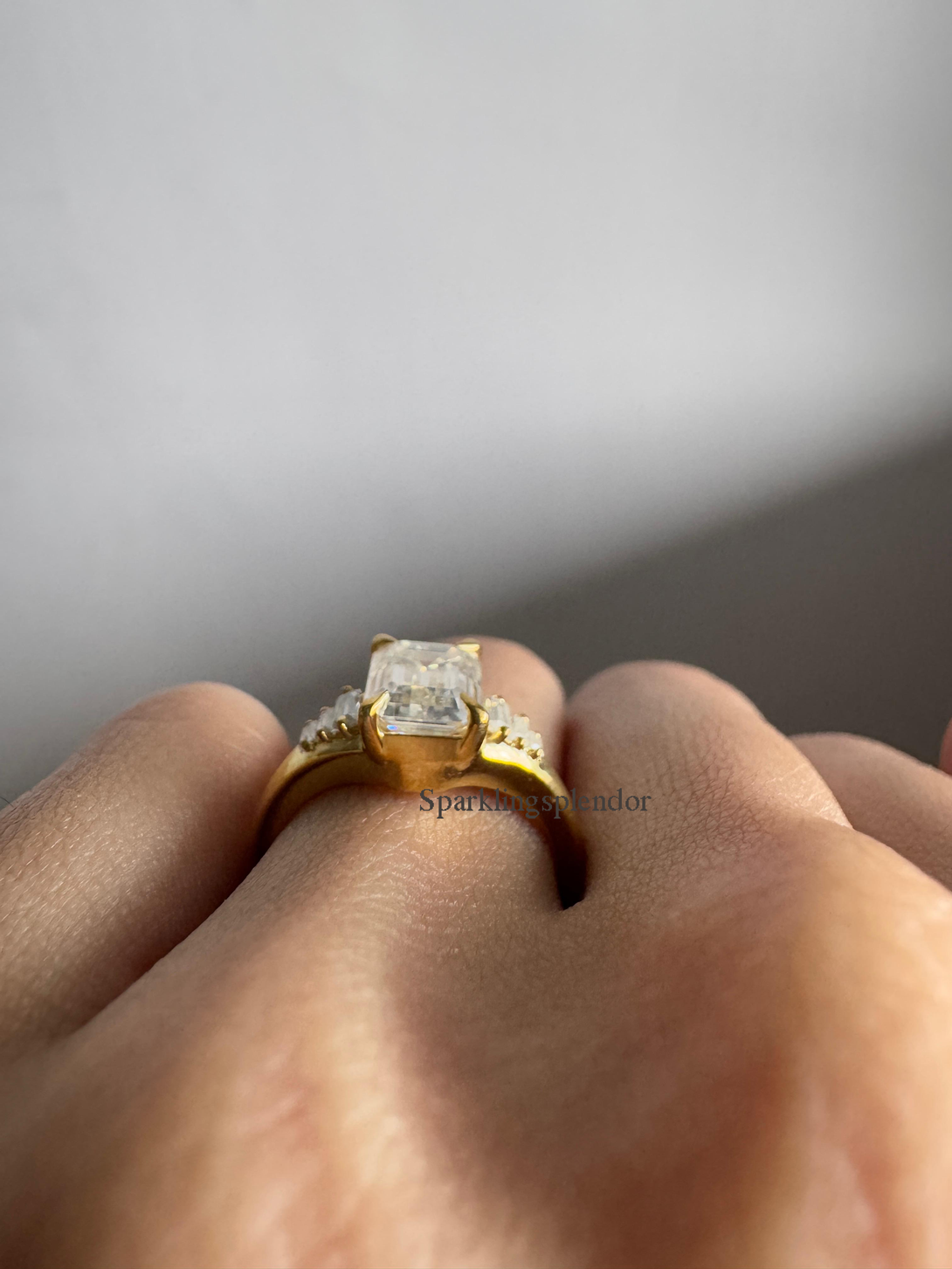 Colorless Emerald Cut Moissanite Engagement Ring Wedding Bridal Proposal Ring