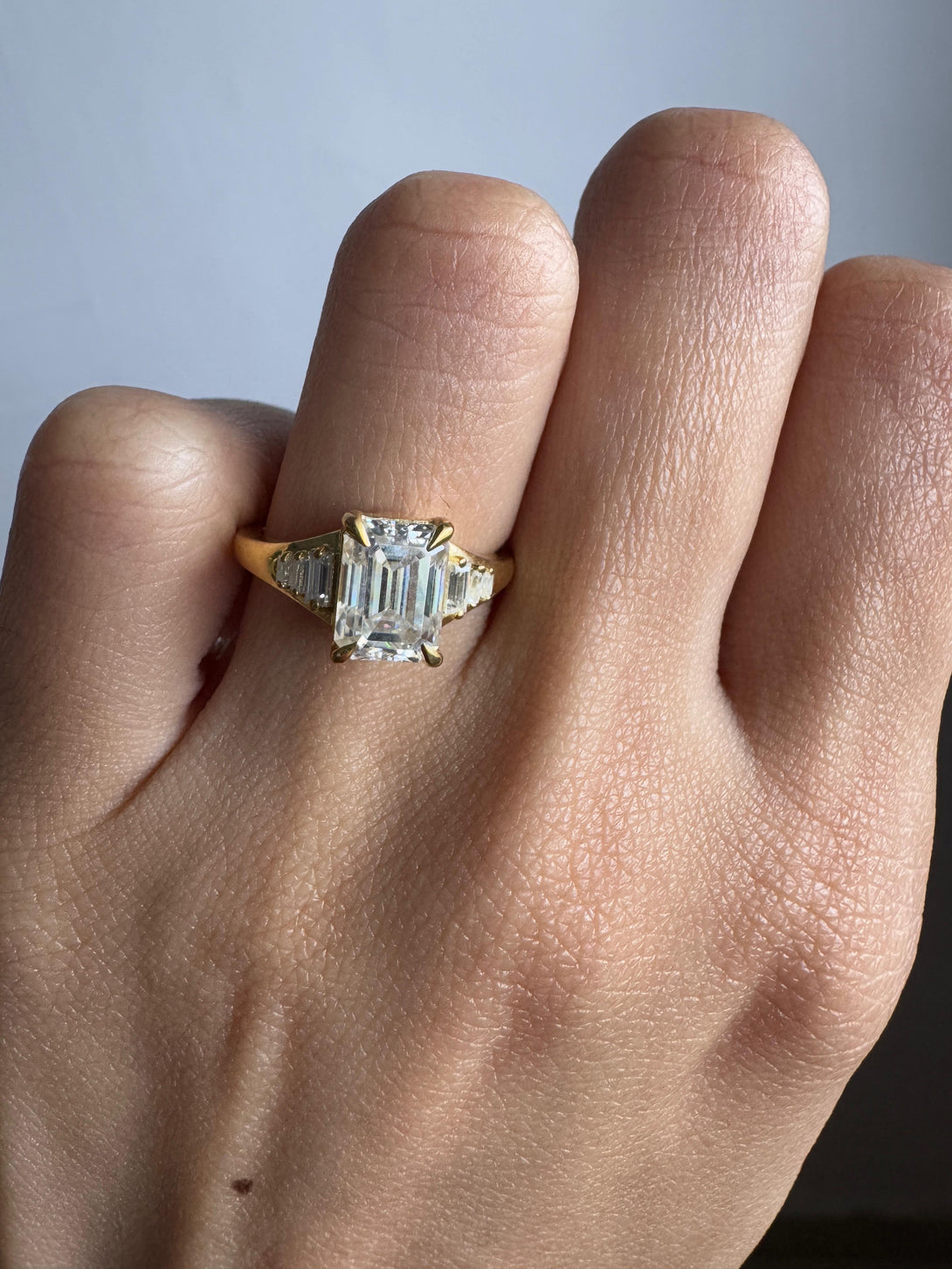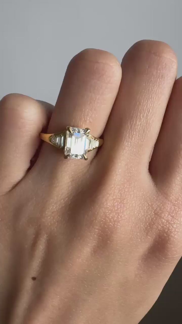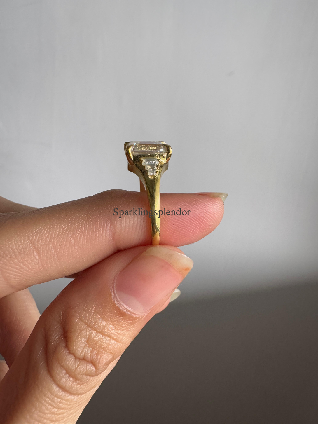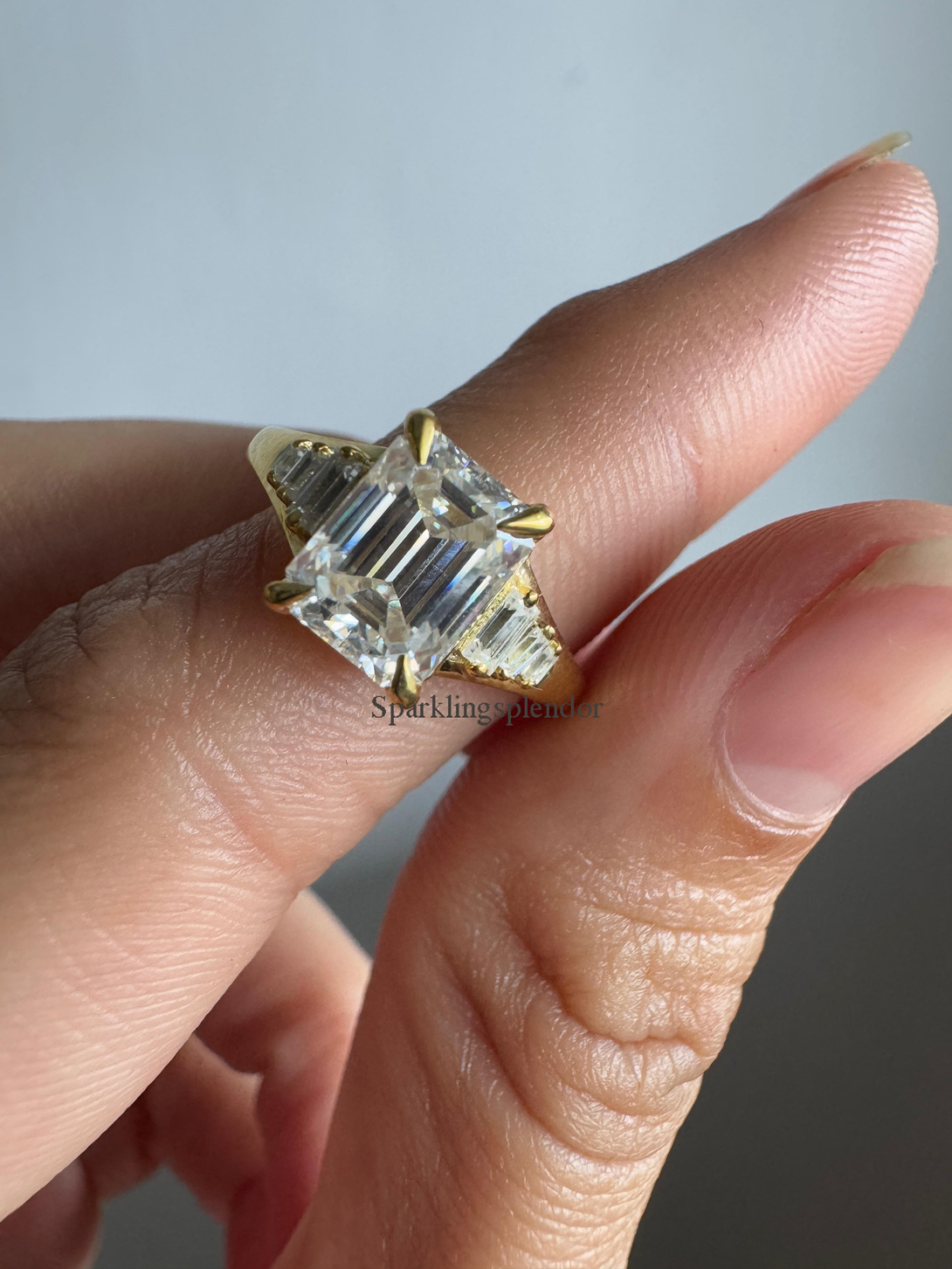 Colorless Emerald Cut Moissanite Engagement Ring Wedding Bridal Proposal Ring