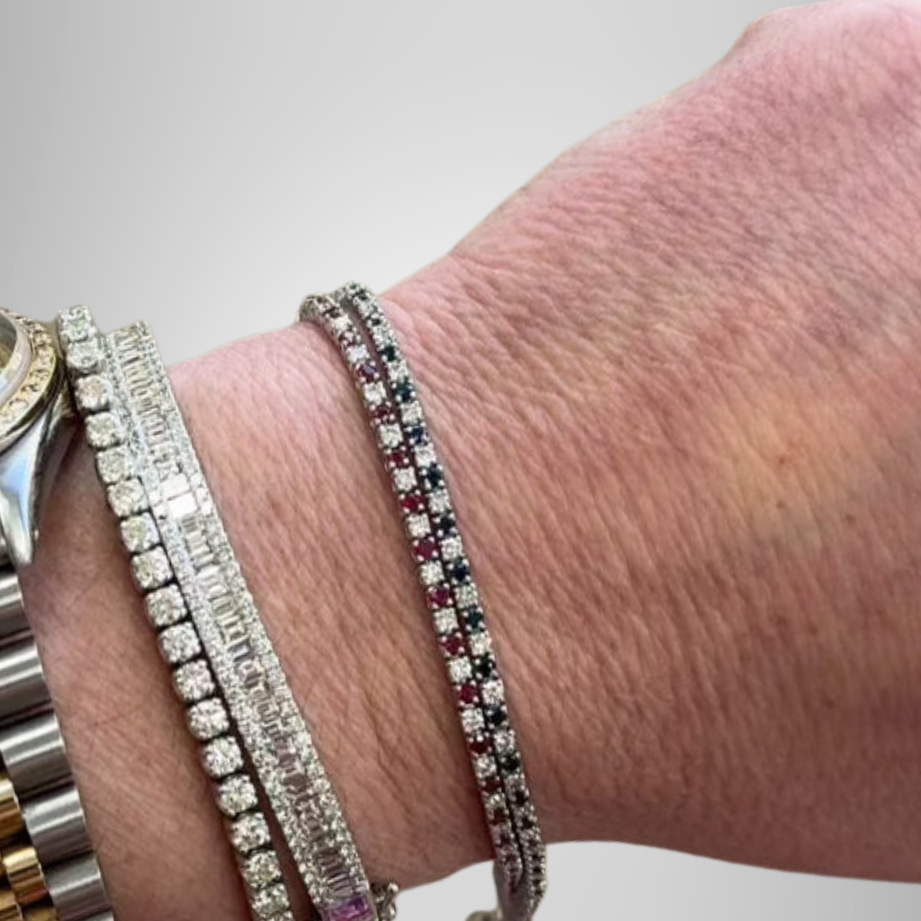 Diamond & Pink Ruby Tennis Bracelet Minimal Round CZ Diamond Beautiful Bracelet