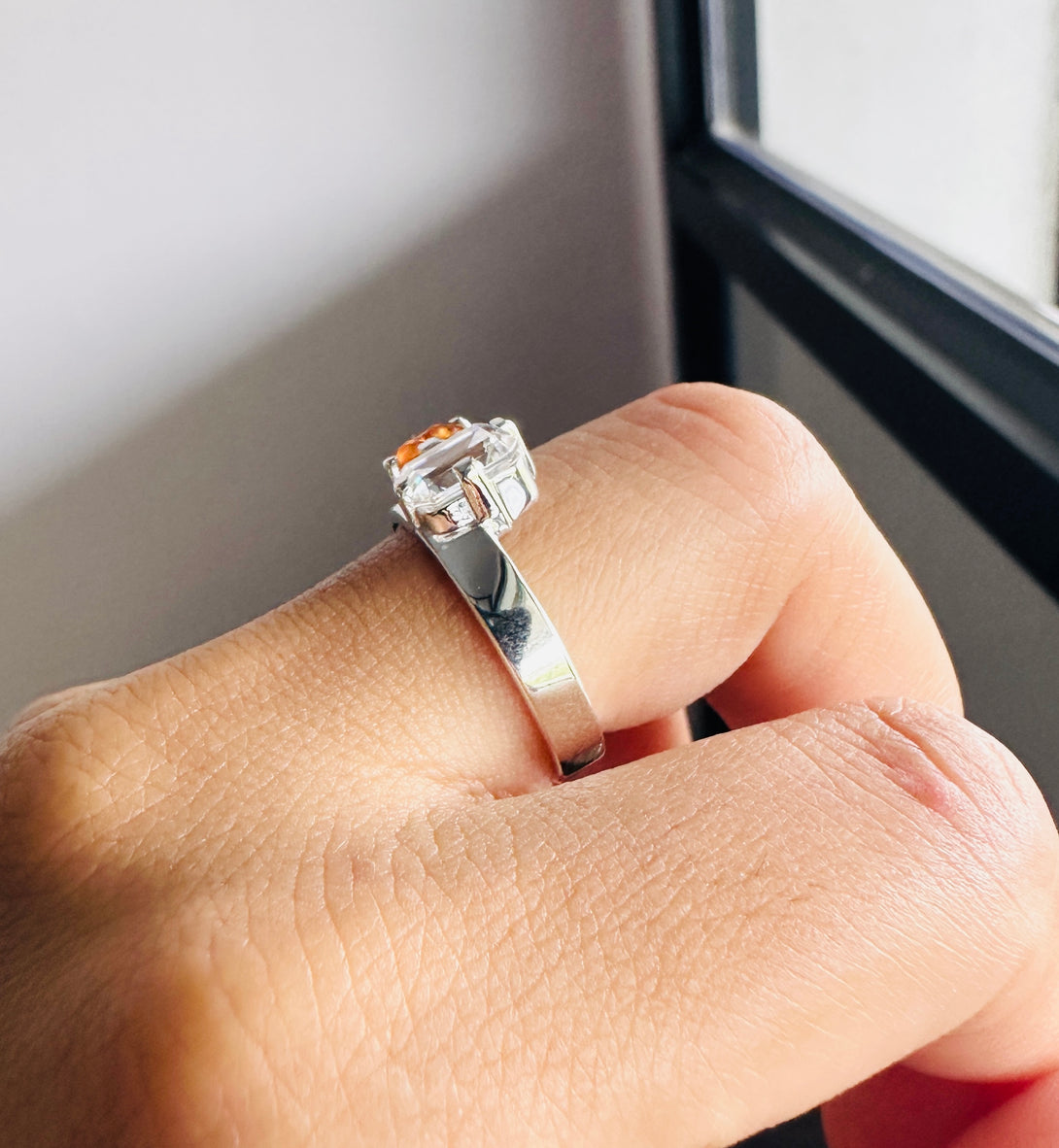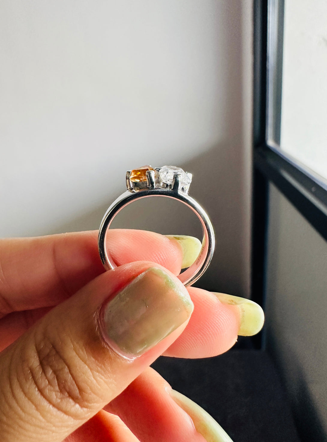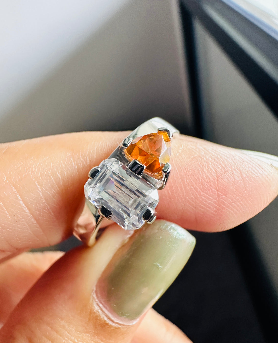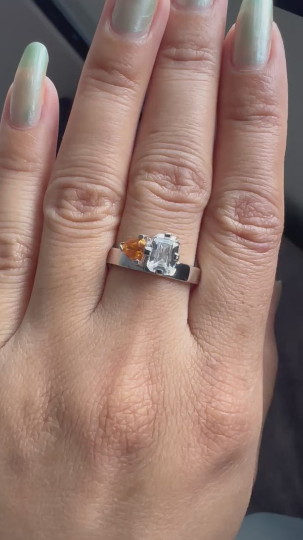 Brown Trillion & White Emerald Moissanite Chunky Band 2 Stone Wedding Ring in Gold