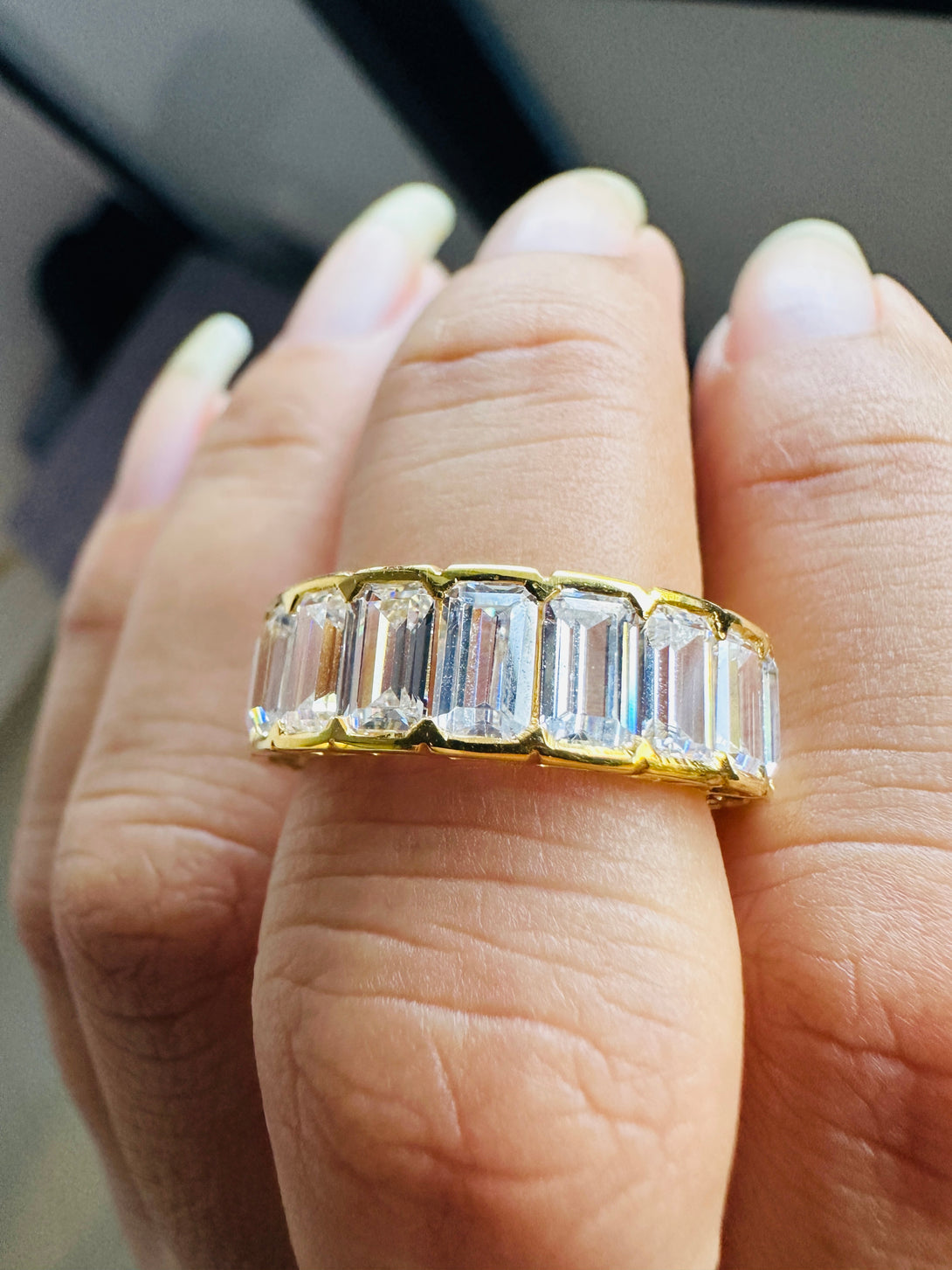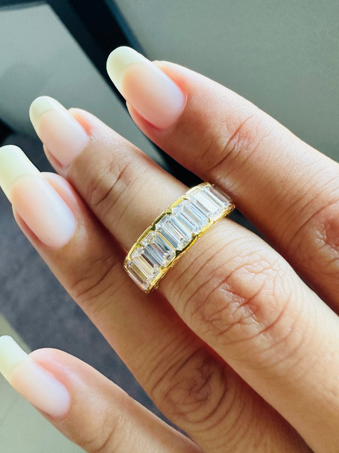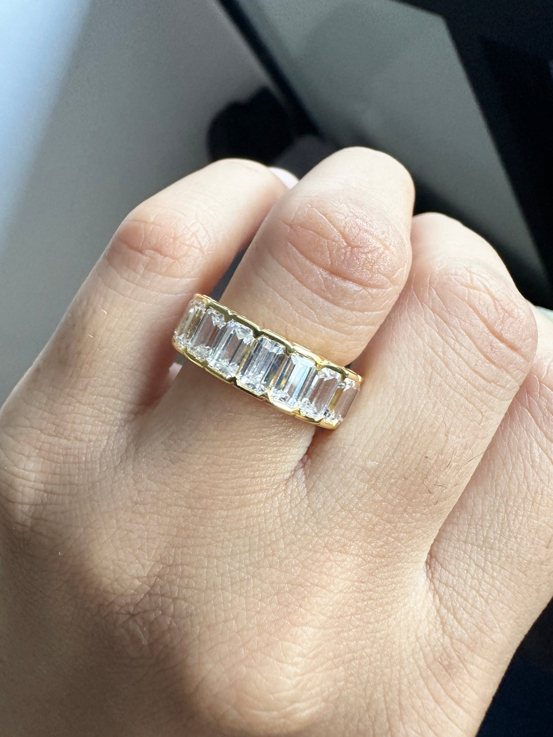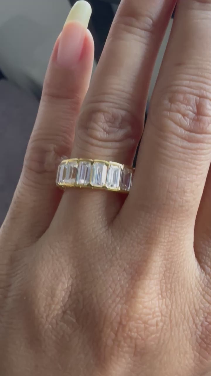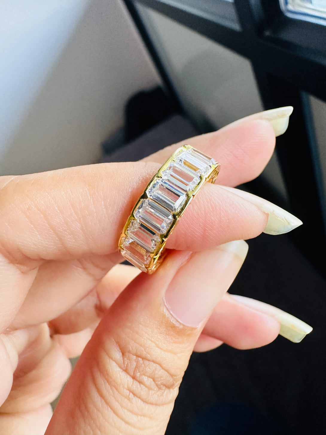 8 CTW Emerald Moissanite Wedding Band 18K Gold Eternity Anniversary Band Her