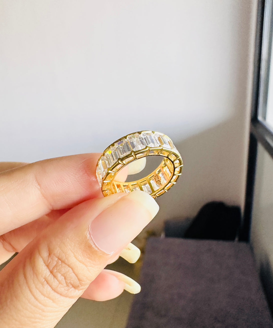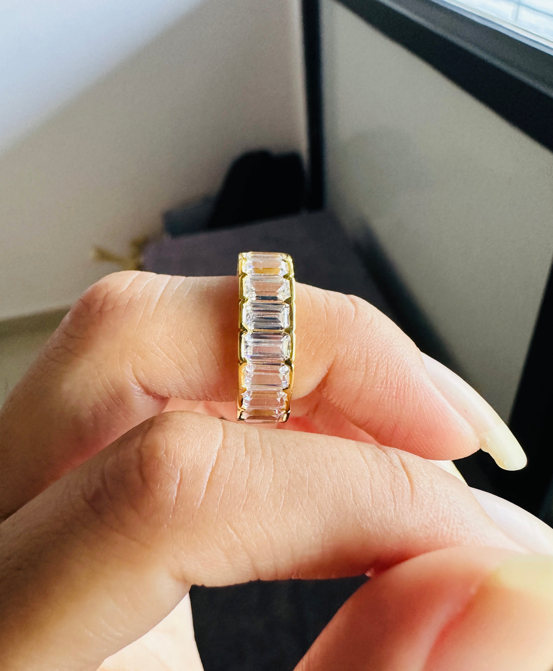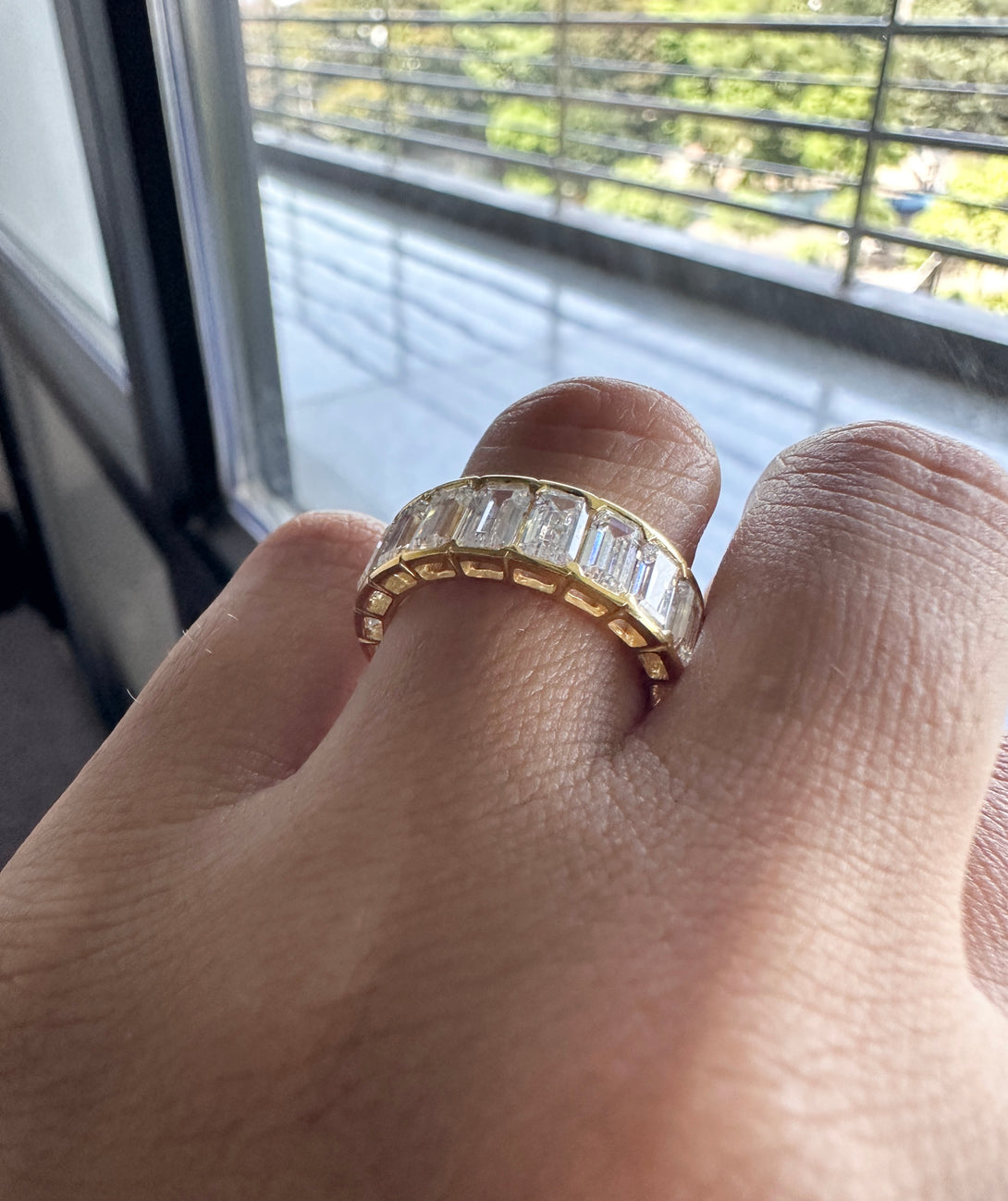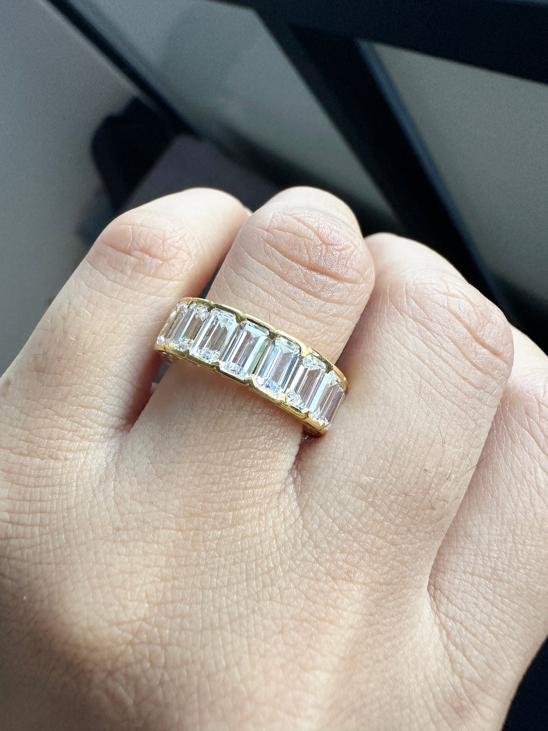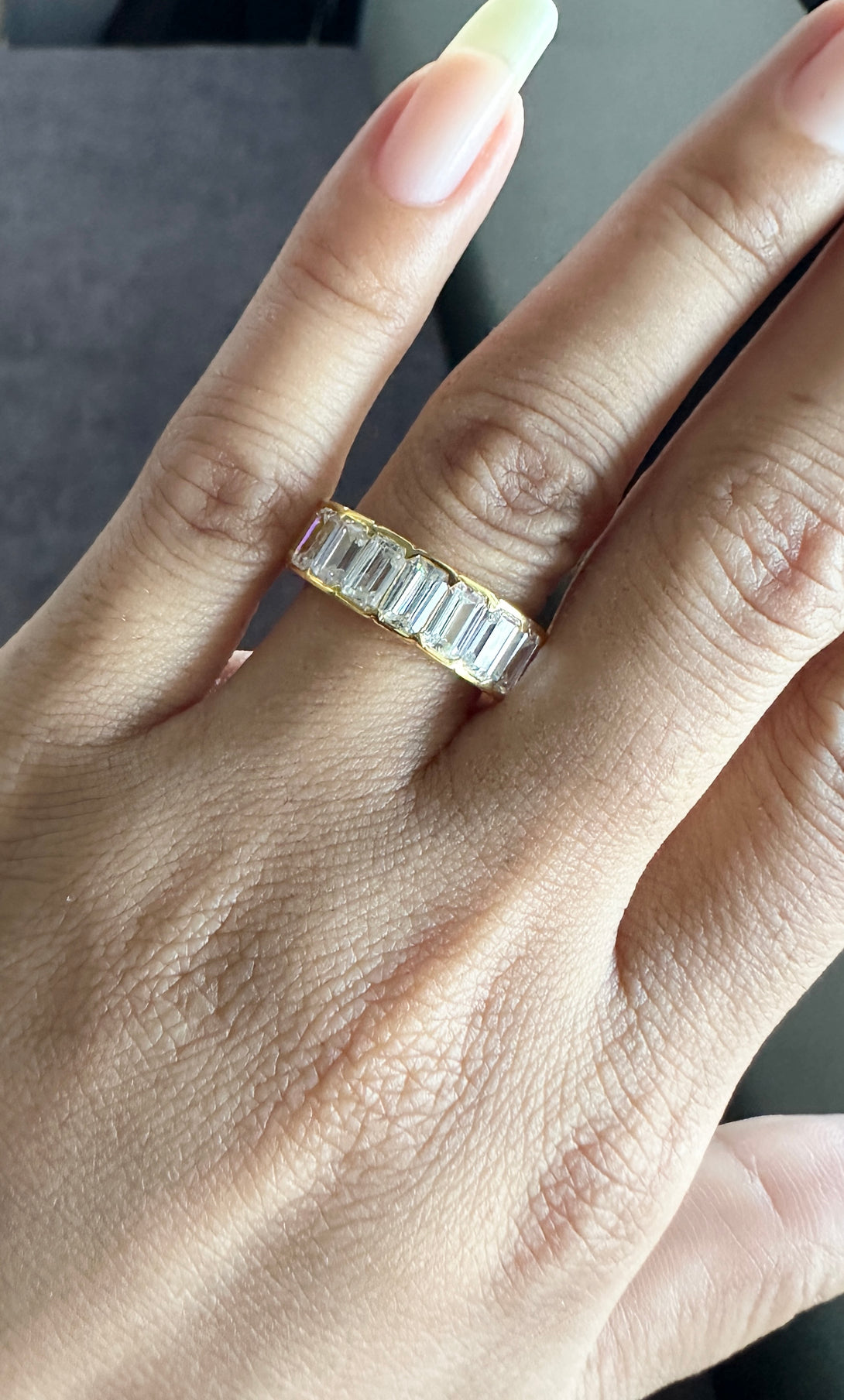 8 CTW Emerald Moissanite Wedding Band 18K Gold Eternity Anniversary Band Her