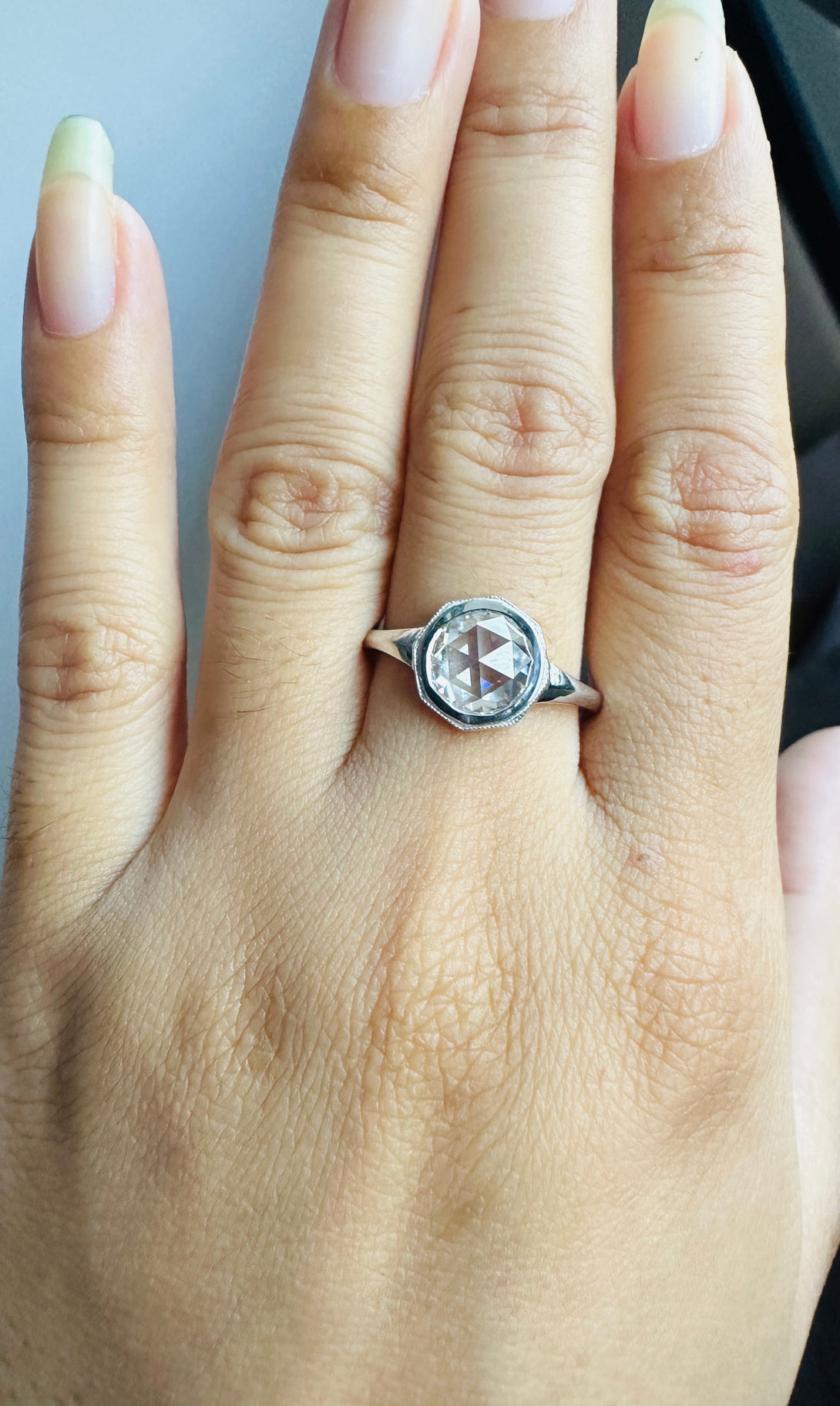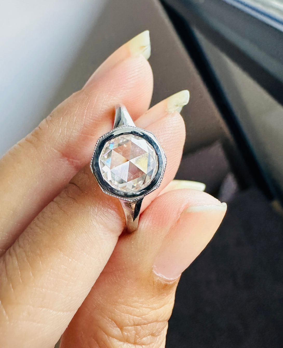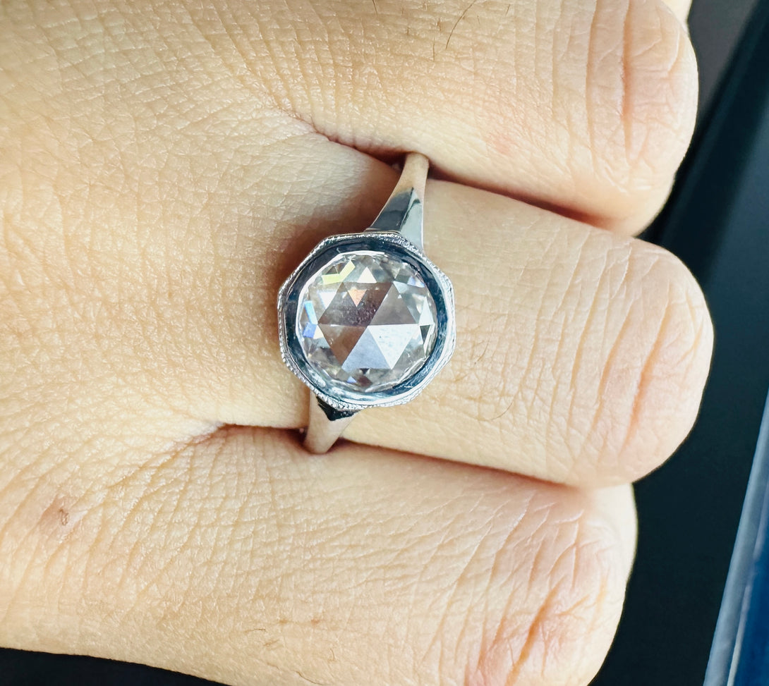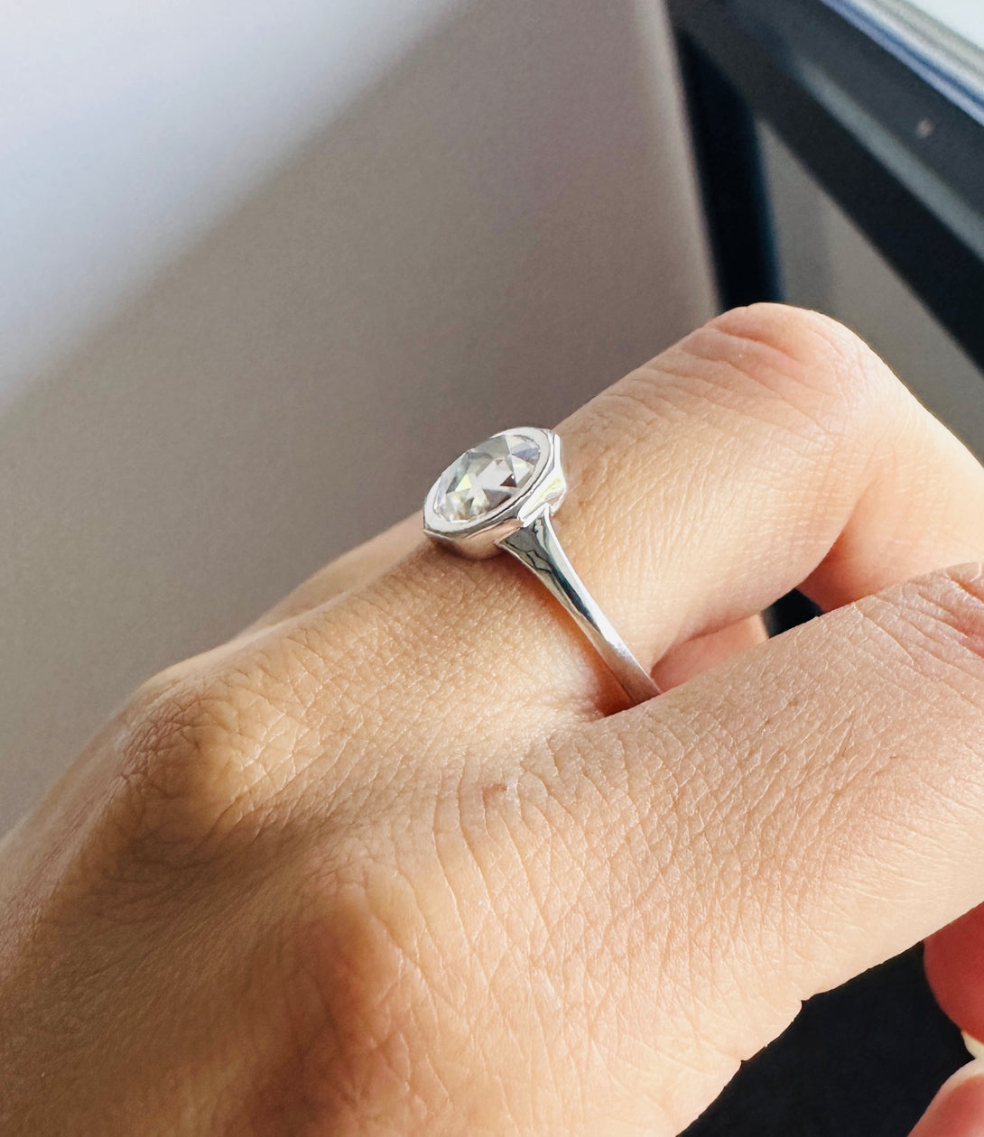 Solitaire Rose Cut Moissanite Ring Bezel Set Round Engagement Ring in 18K Gold