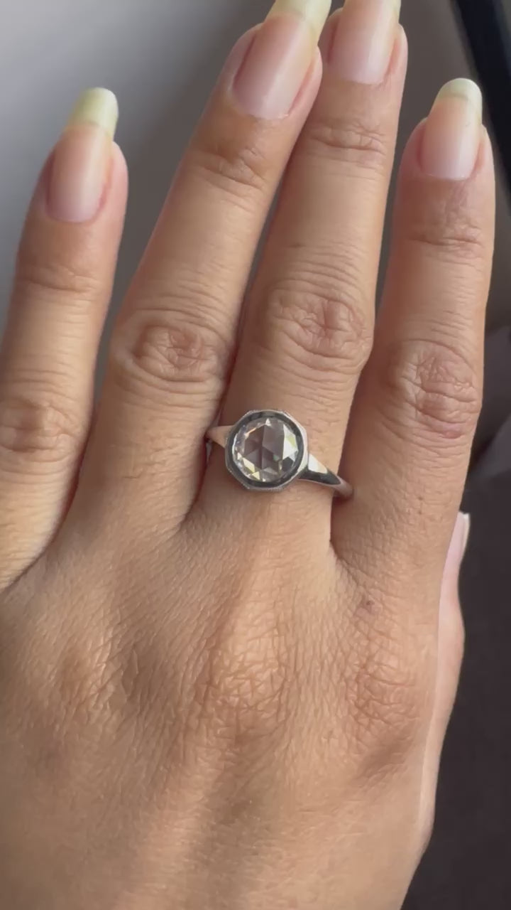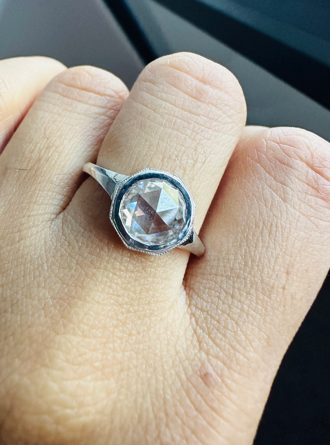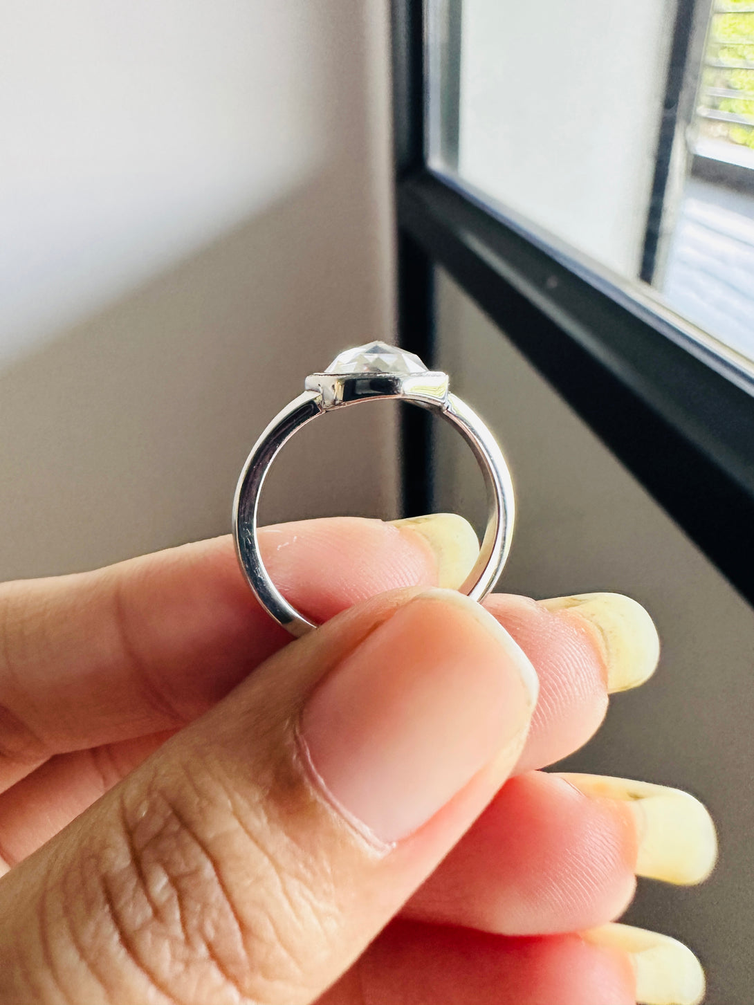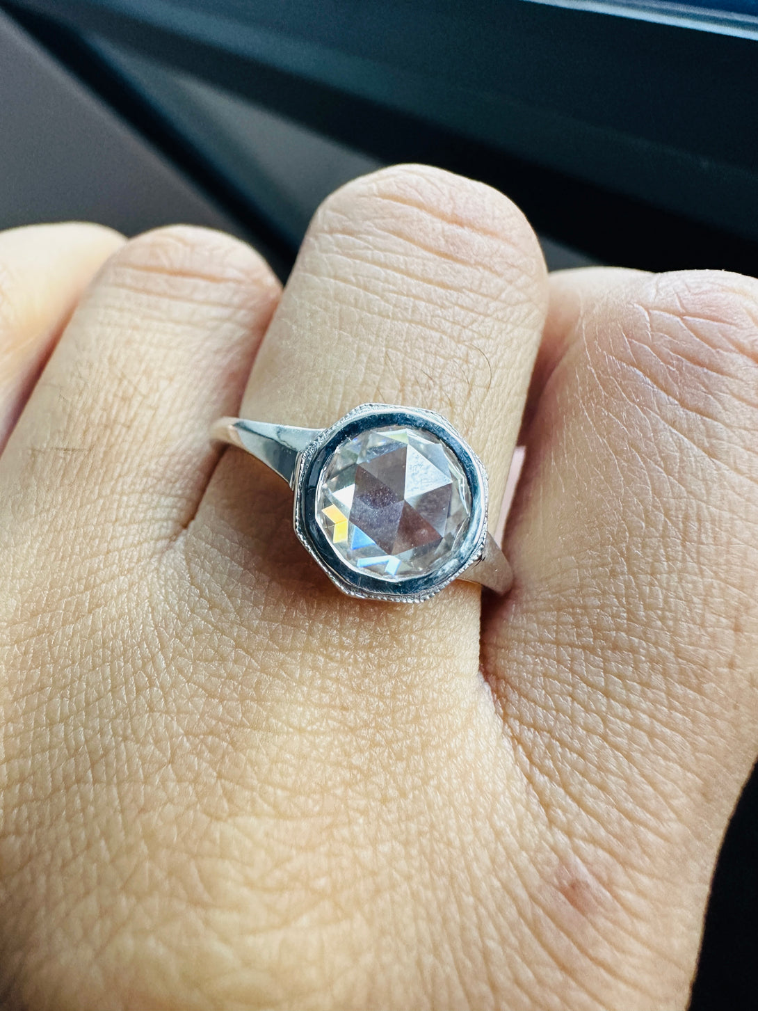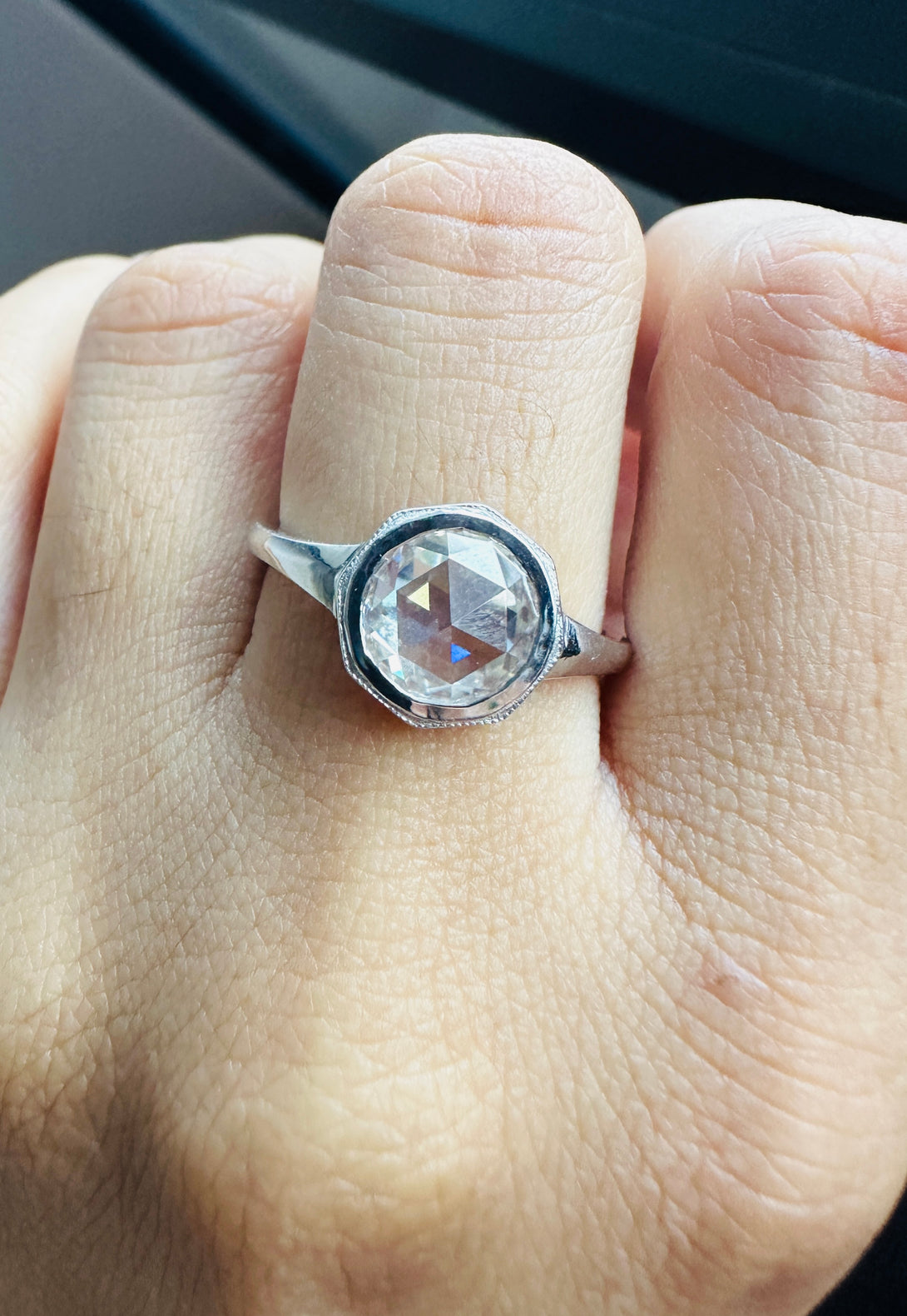Solitaire Rose Cut Moissanite Ring Bezel Set Round Engagement Ring in 18K Gold