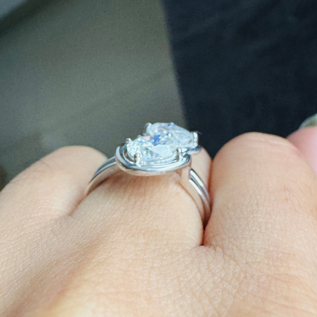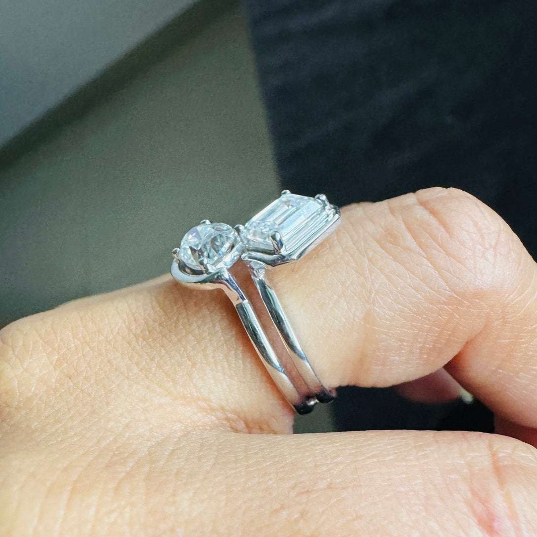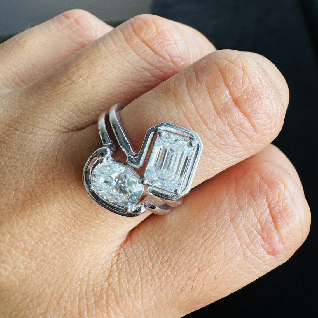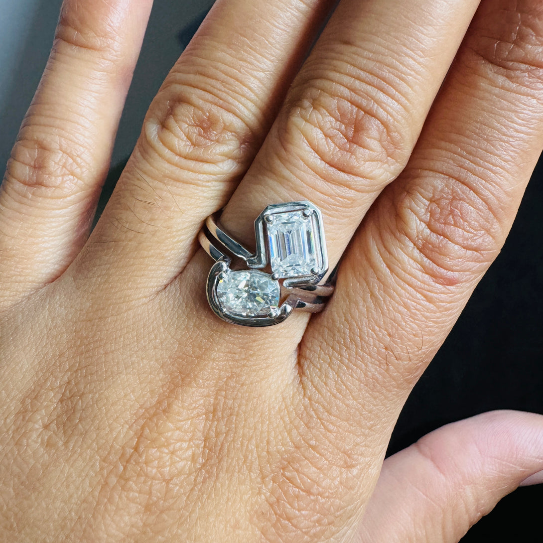 Toi Et Moi Ring Double Band Ring Emerald & Cushion Cut Moissanite Engagement Ring