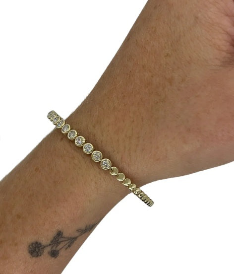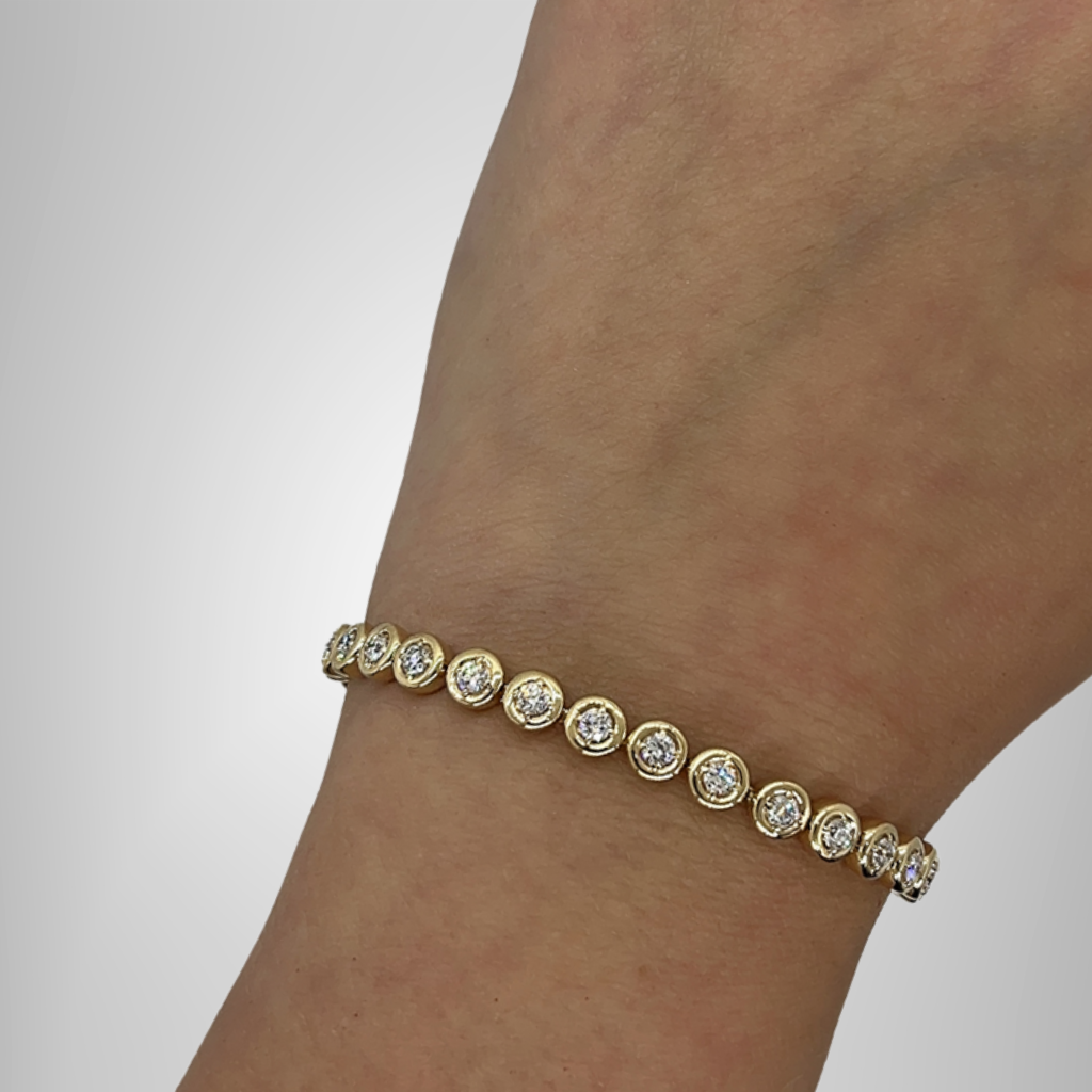 Real Moissanite Bangle Style Bracelet Round Brilliant Cut Bezel Set Bracelet For Girls