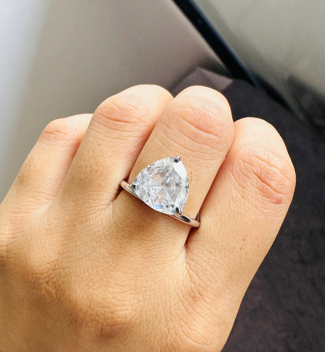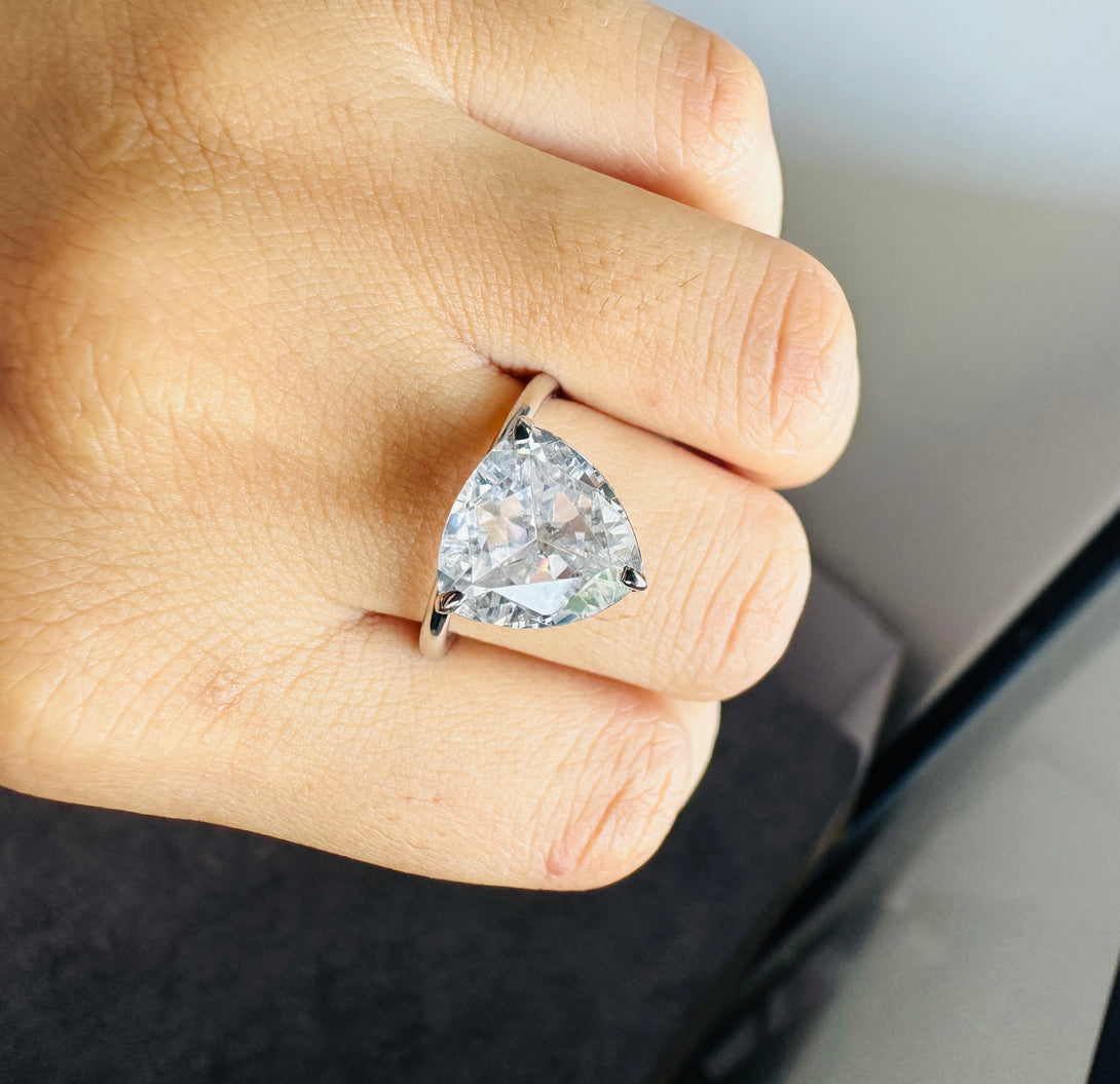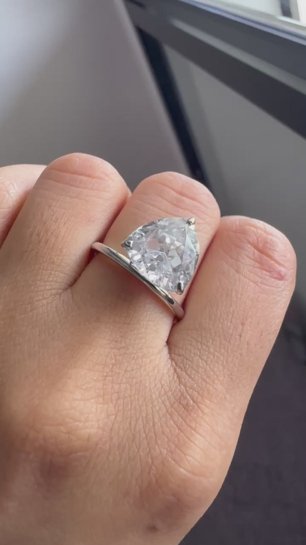 Trilliant Cut Solitaire Engagement Ring 3 Carat Moissanite Ring in 18K Solid Gold