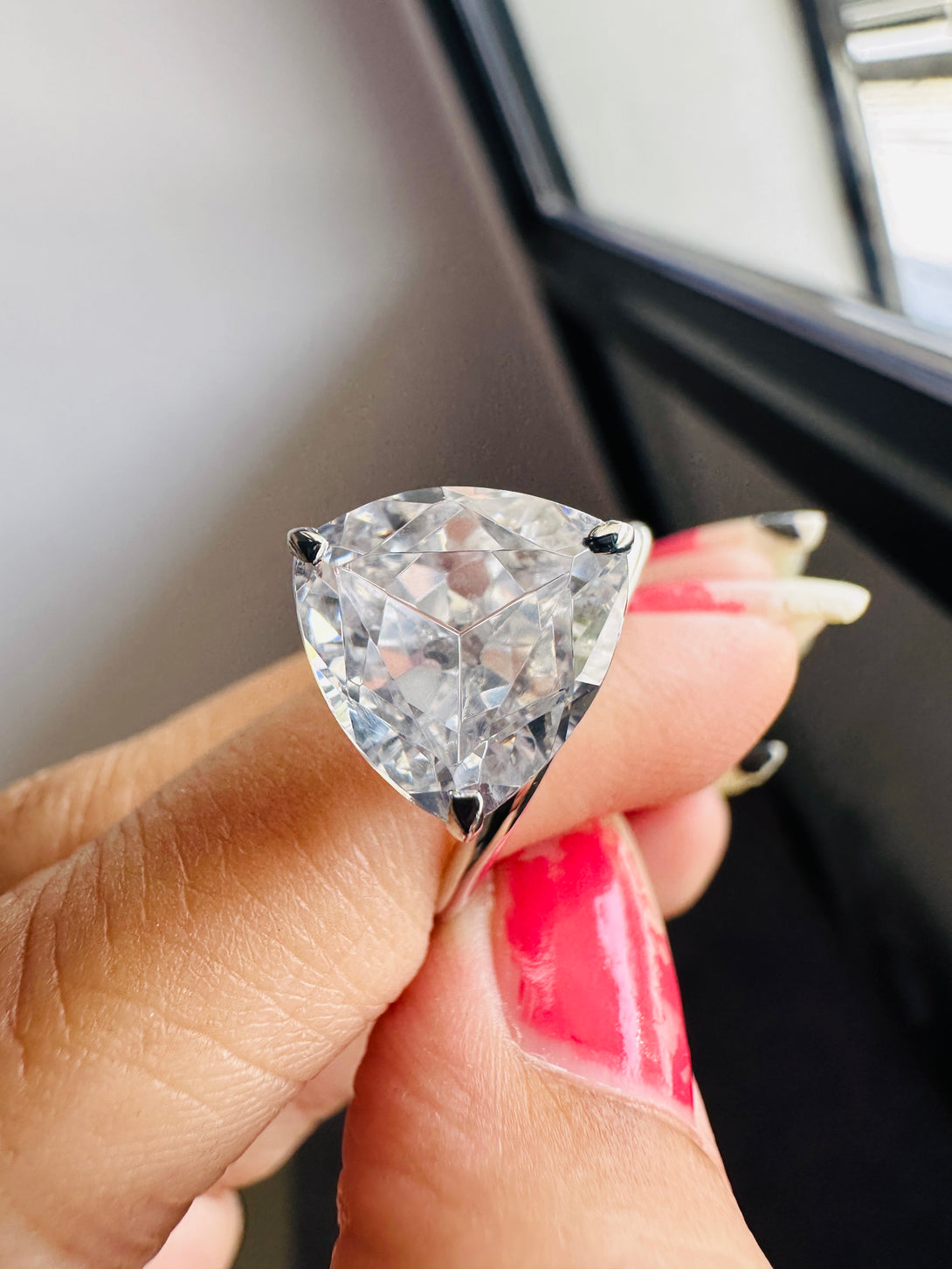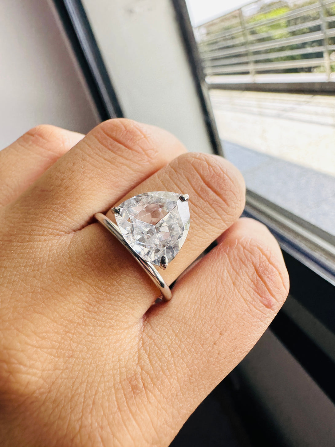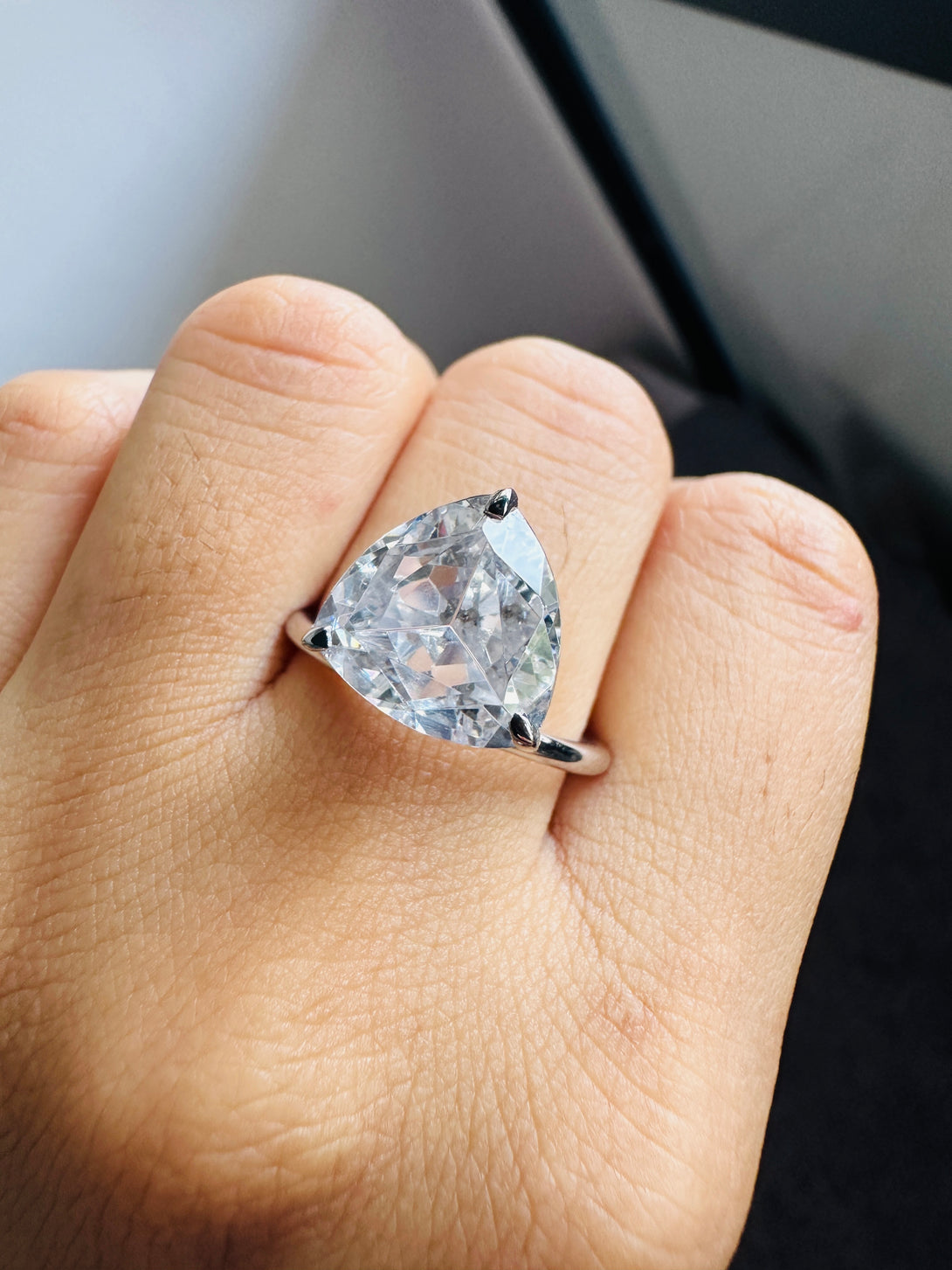 Trilliant Cut Solitaire Engagement Ring 3 Carat Moissanite Ring in 18K Solid Gold