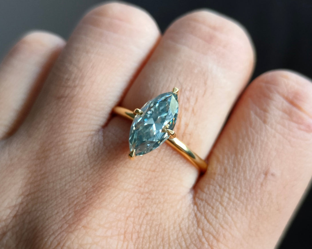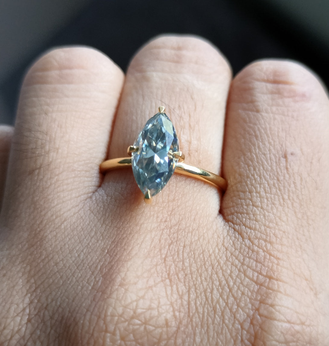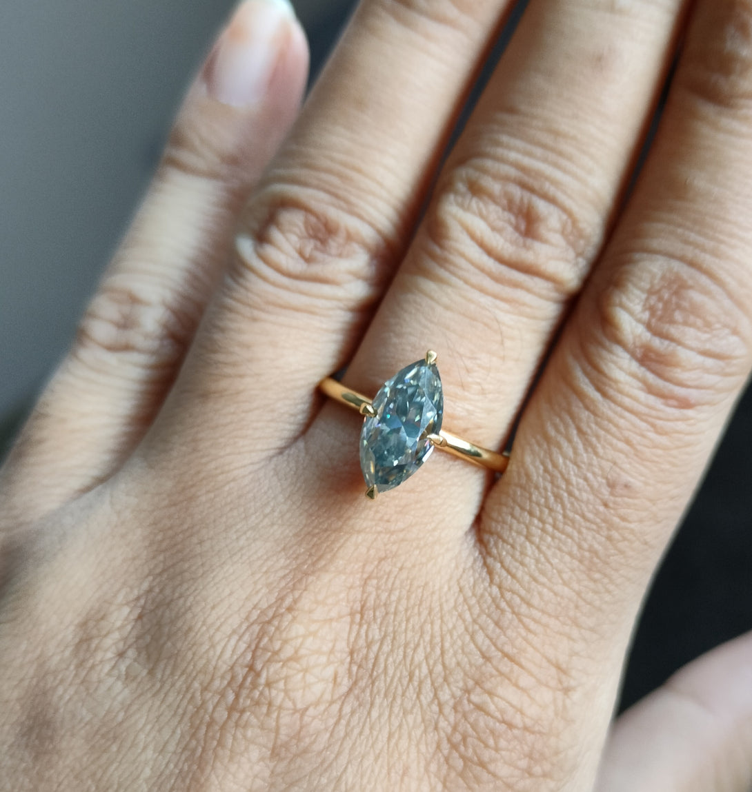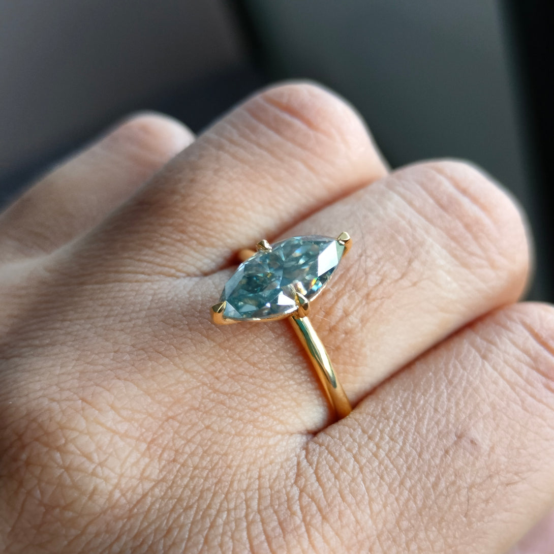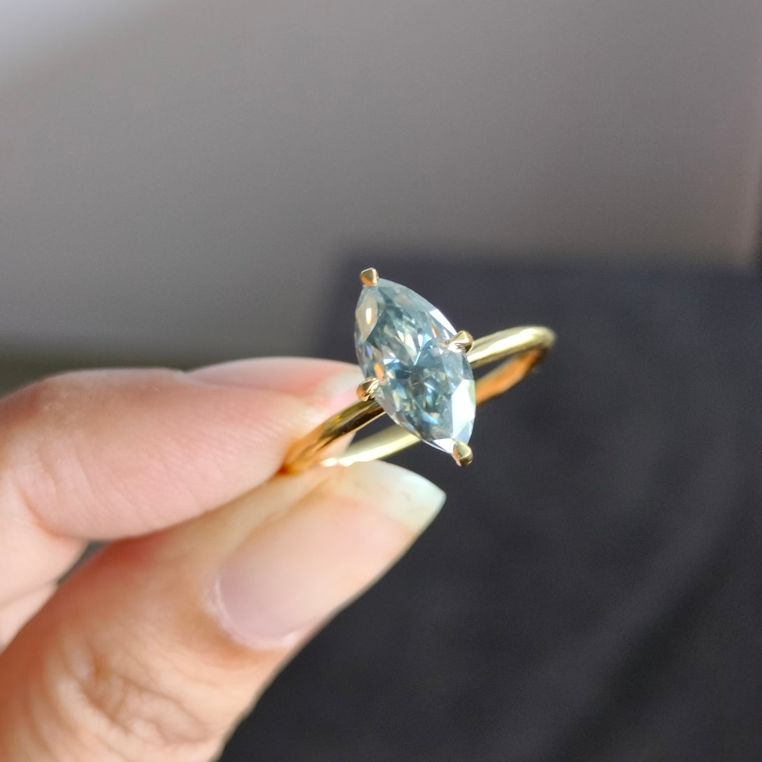 Dark Gray Moissanite Marquise Cut Ring Solitaire Engagement Ring in Gold