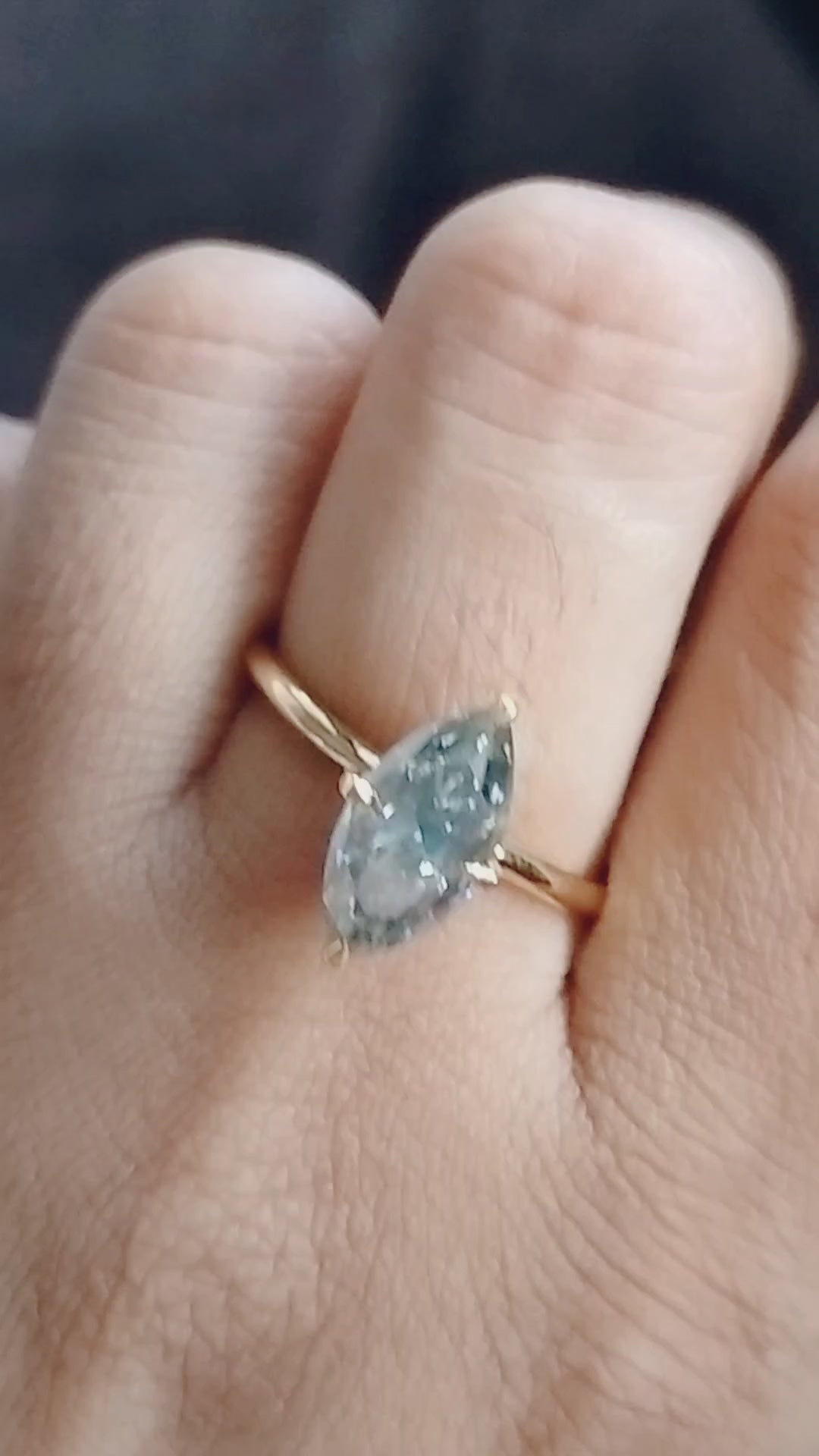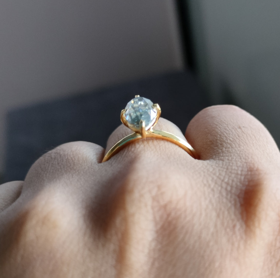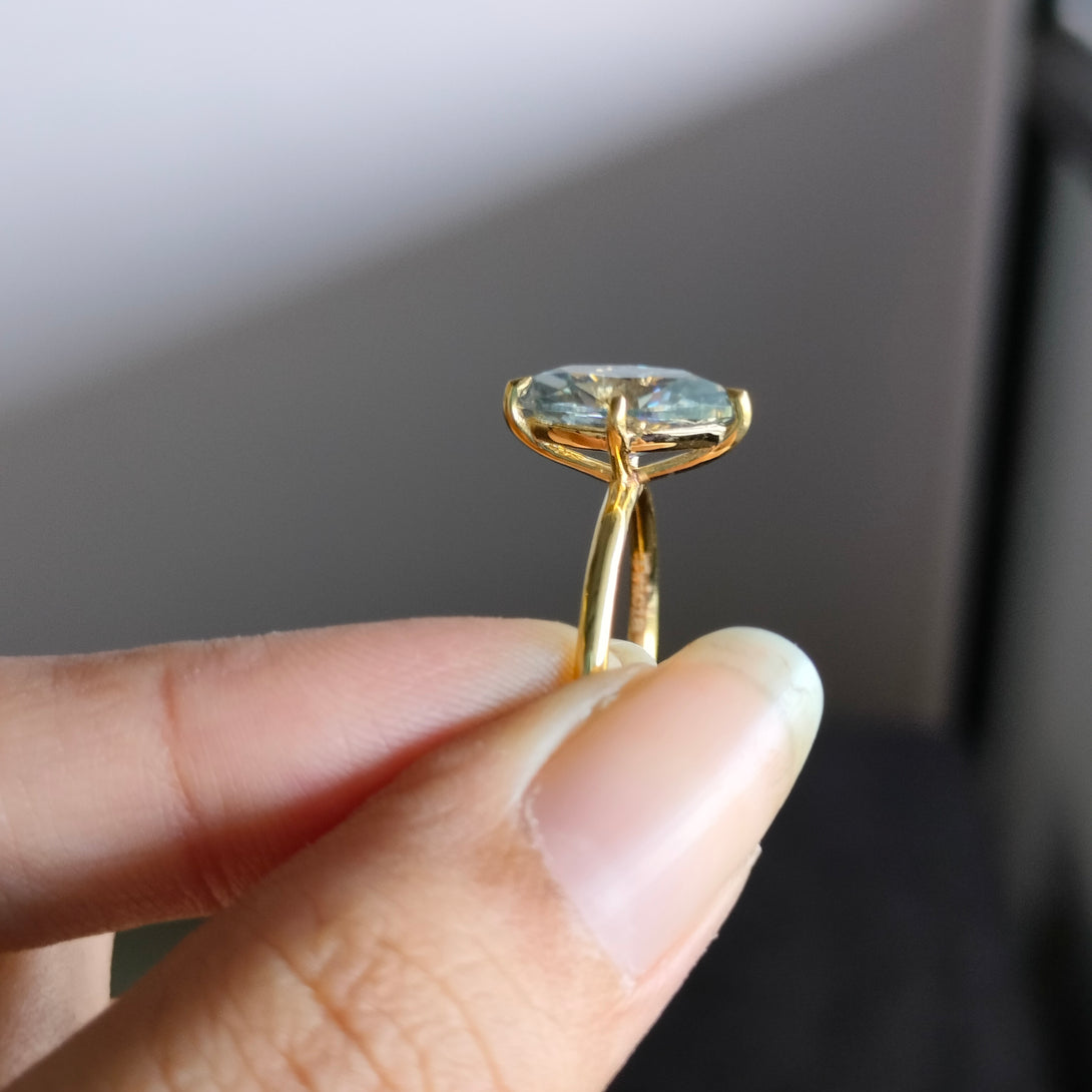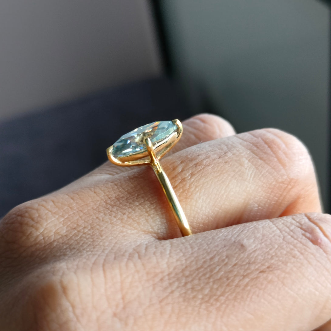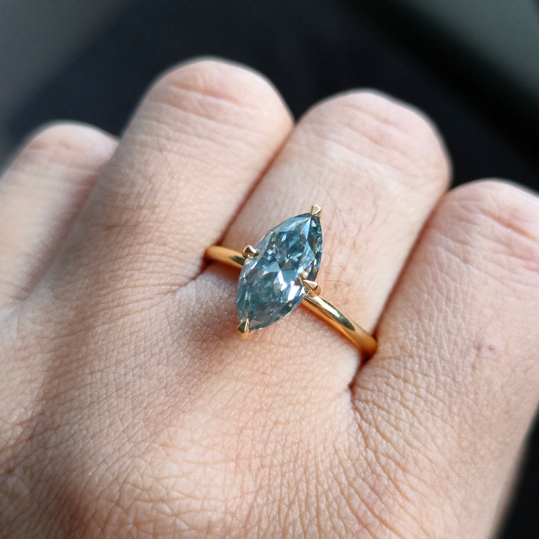 Dark Gray Moissanite Marquise Cut Ring Solitaire Engagement Ring in Gold