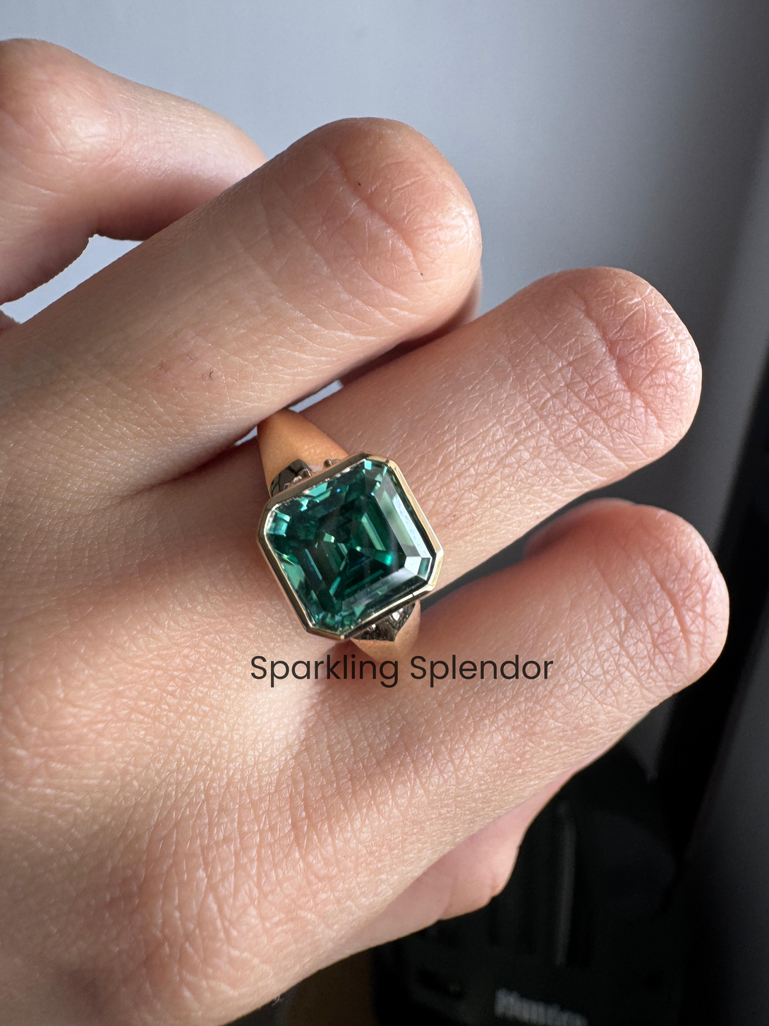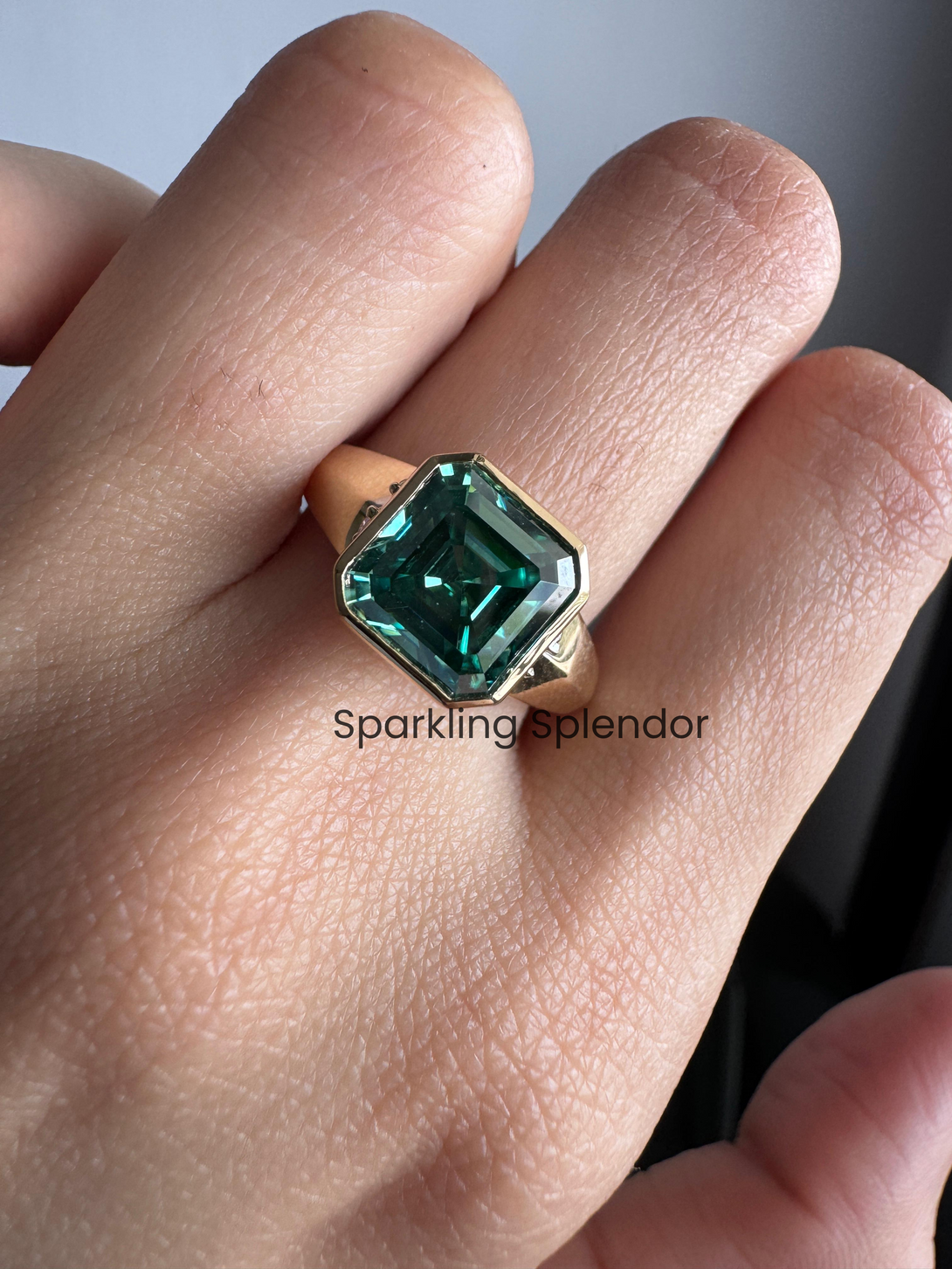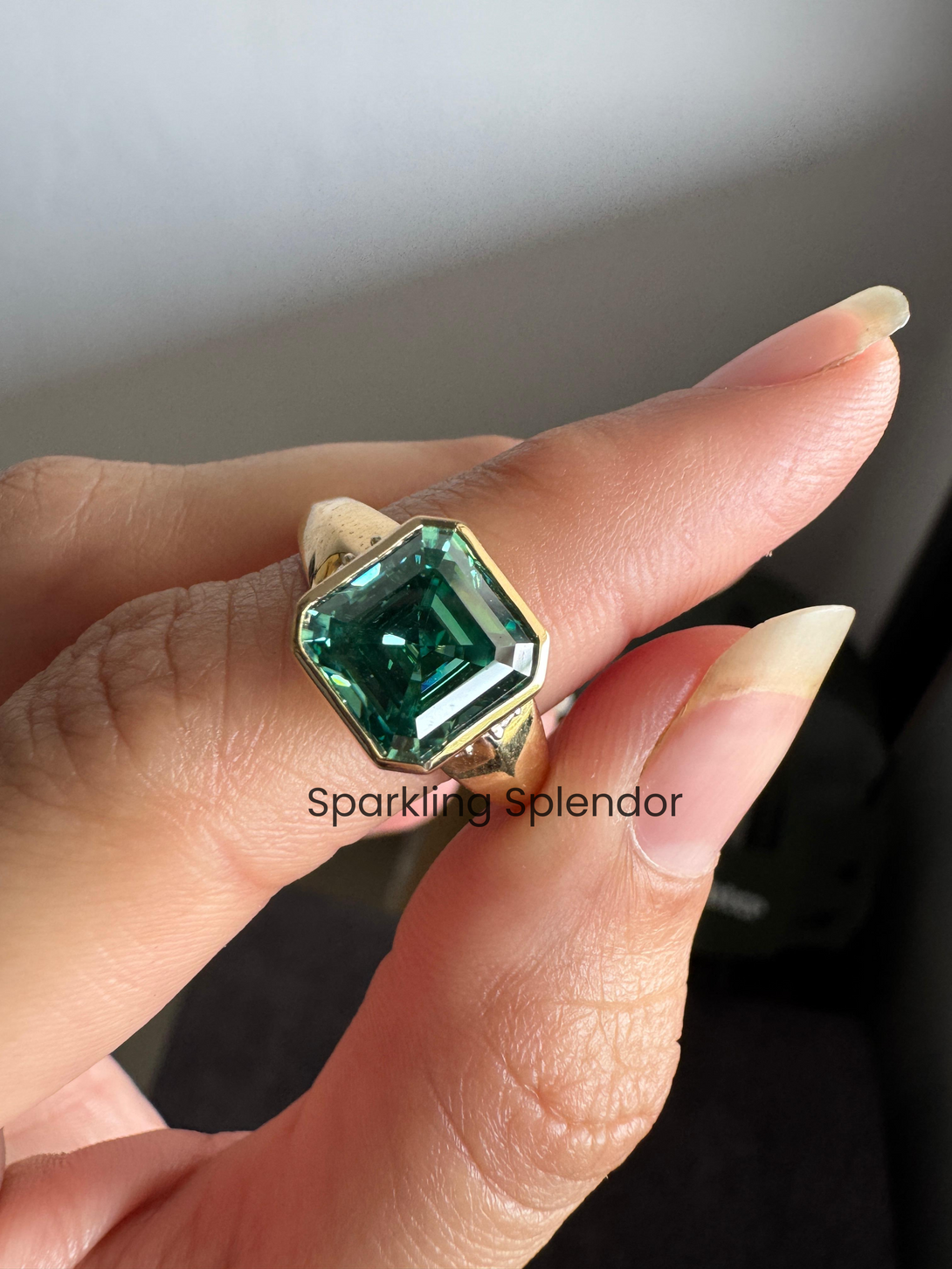 Solitaire Asscher Cut Engagement Ring Green Moissanite Wedding Ring For Her