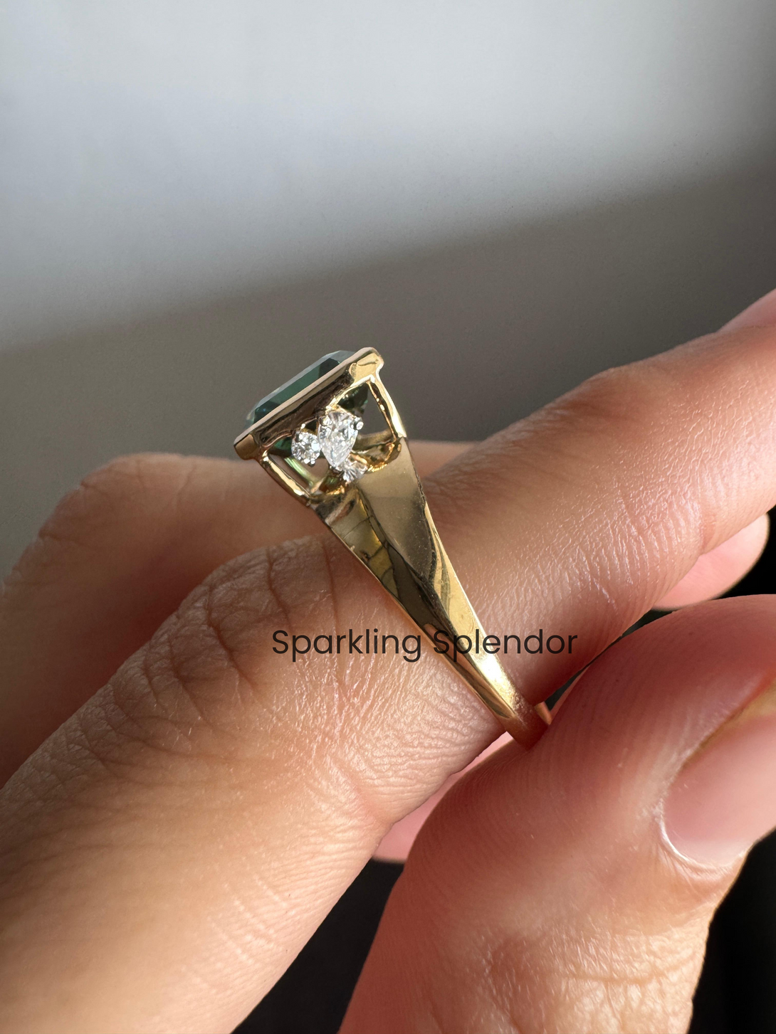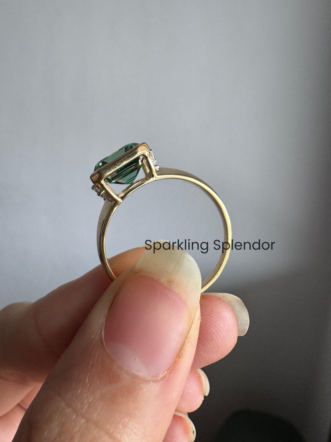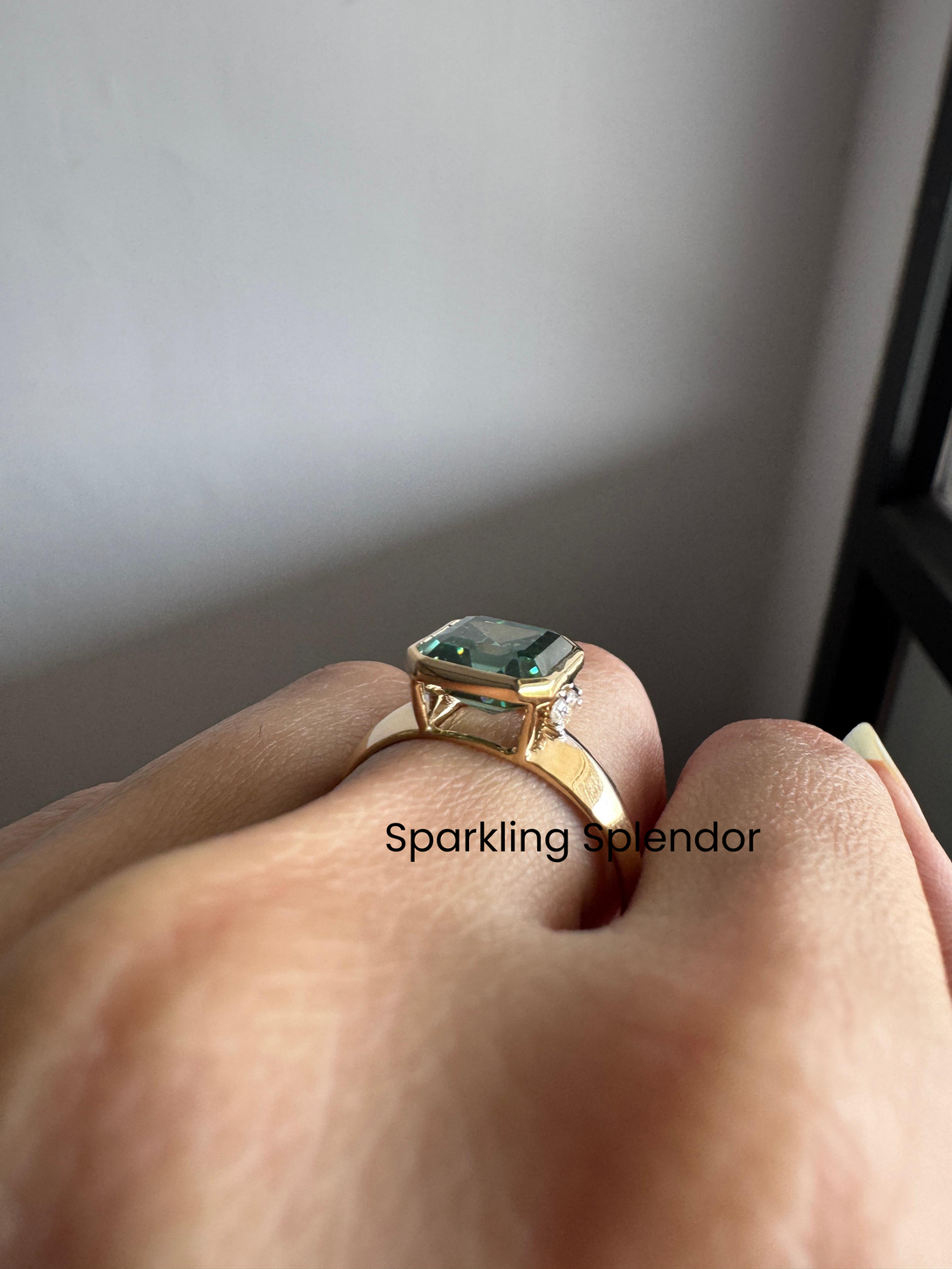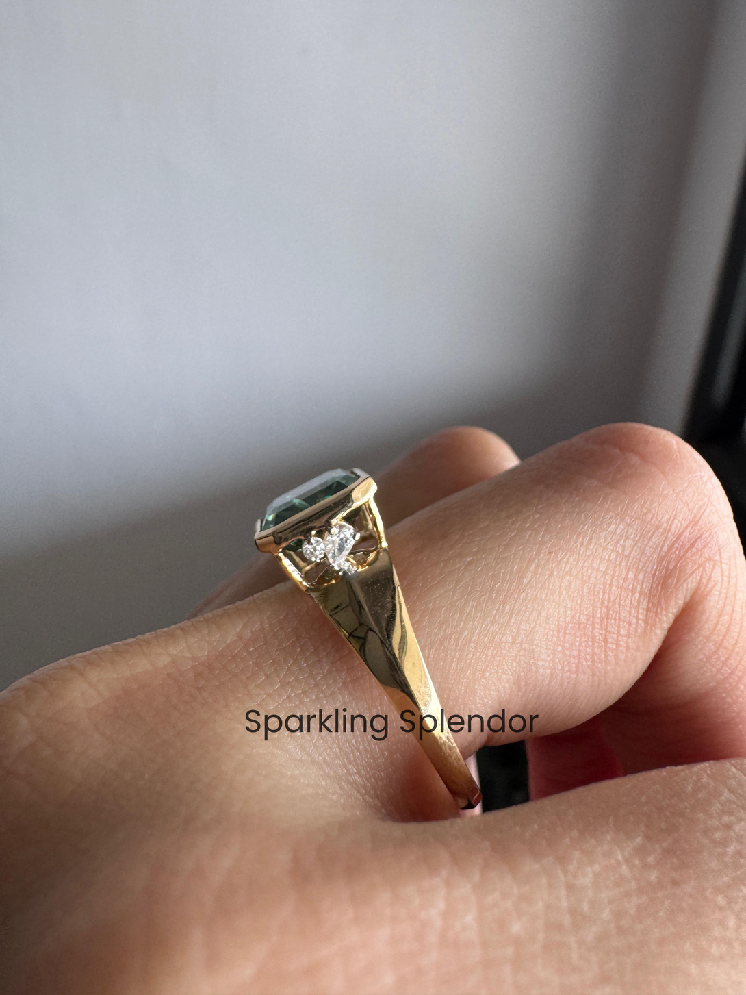 Solitaire Asscher Cut Engagement Ring Green Moissanite Wedding Ring For Her