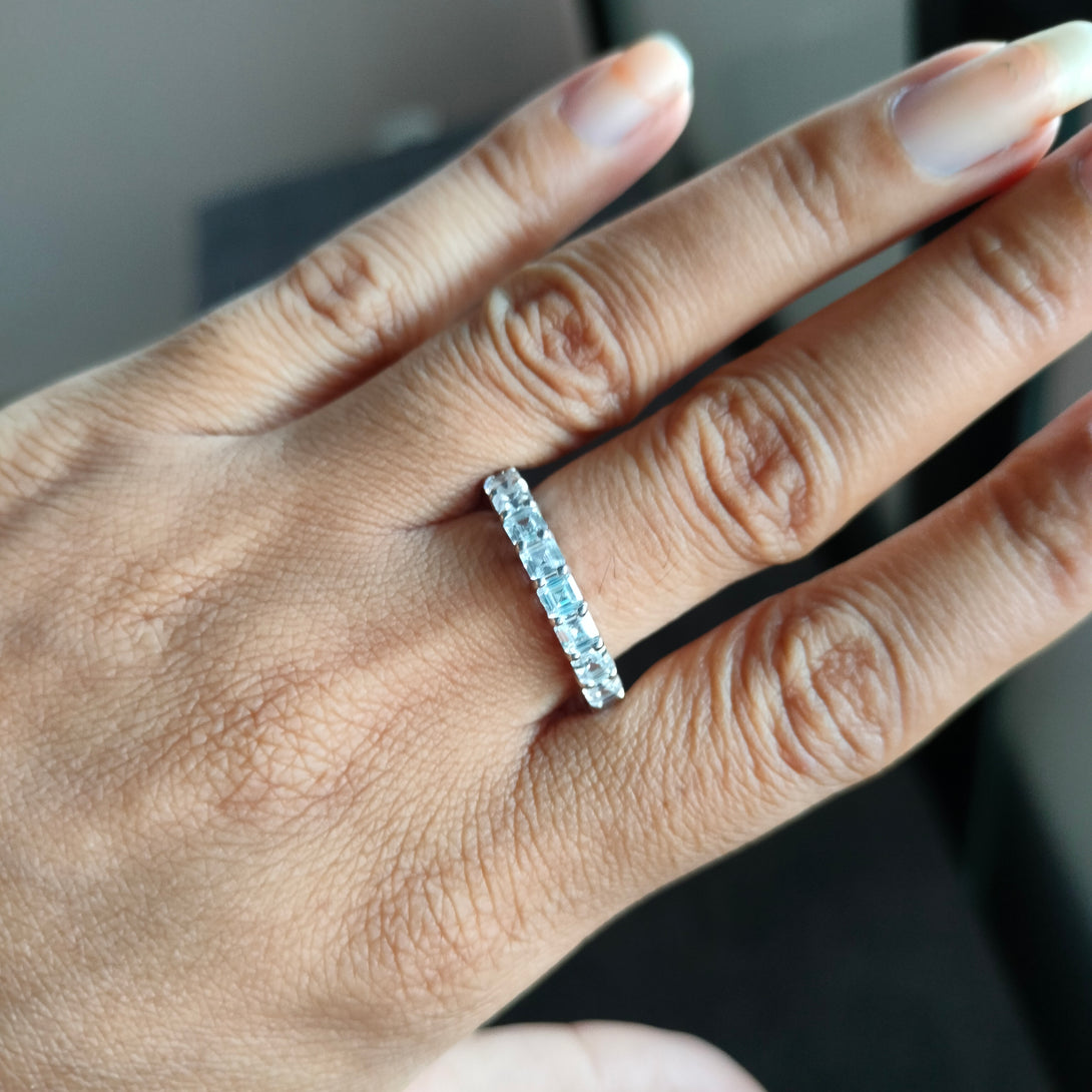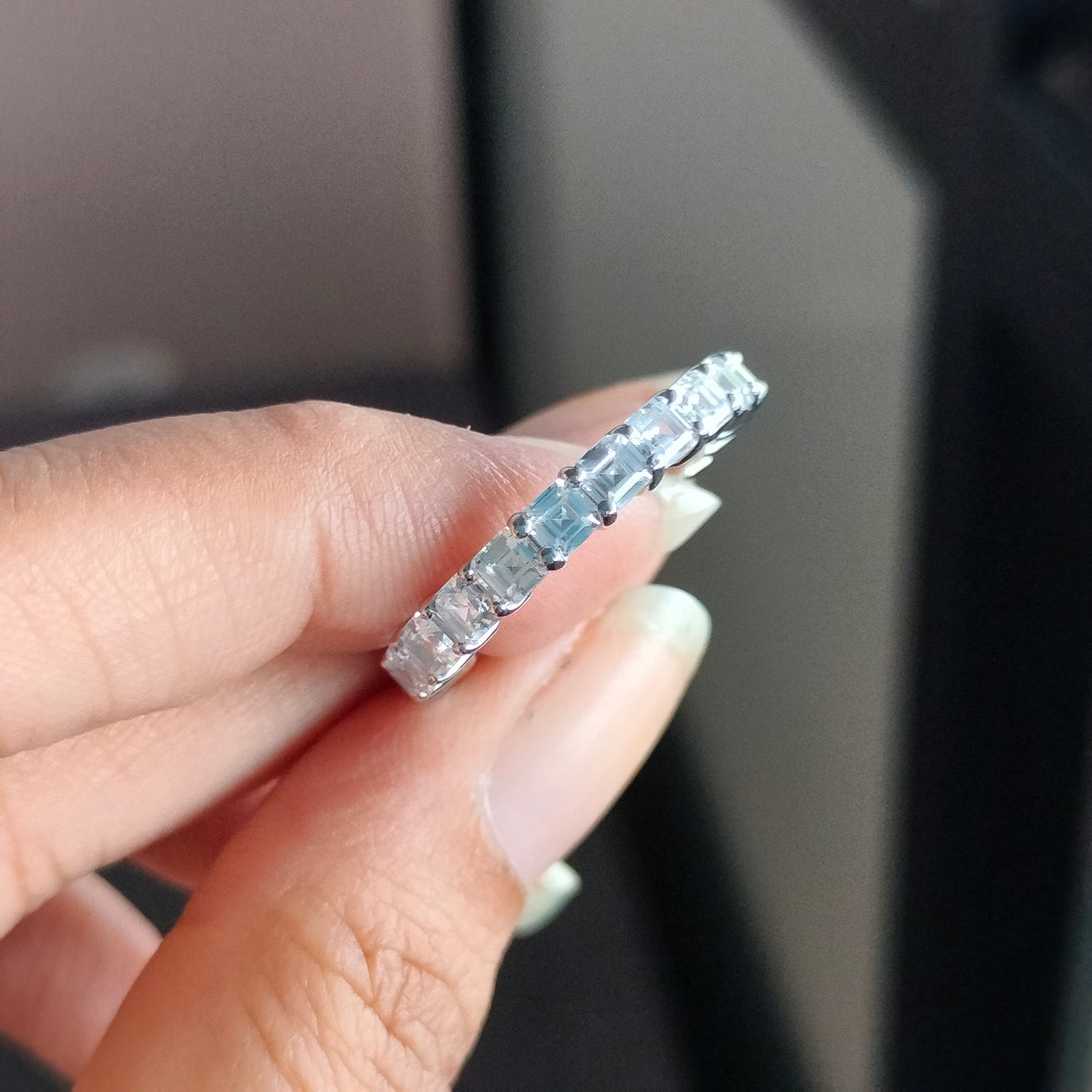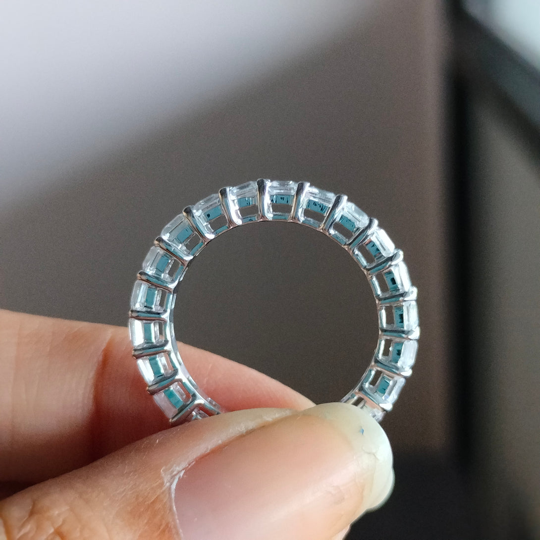 Classic Asscher Cut Moissanite Full Eternity Band 18K Solid Gold Wedding Band