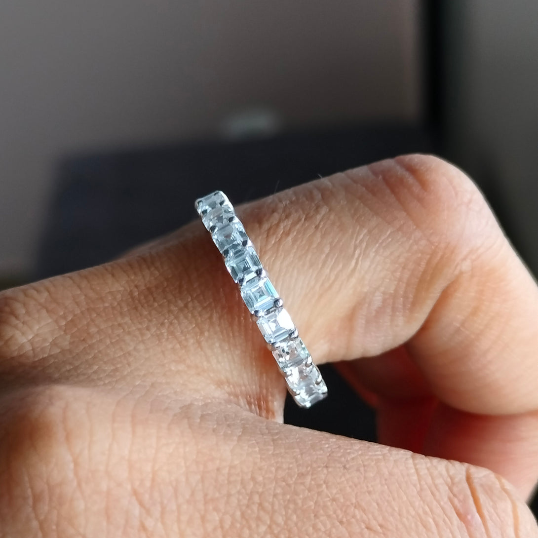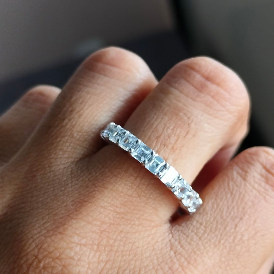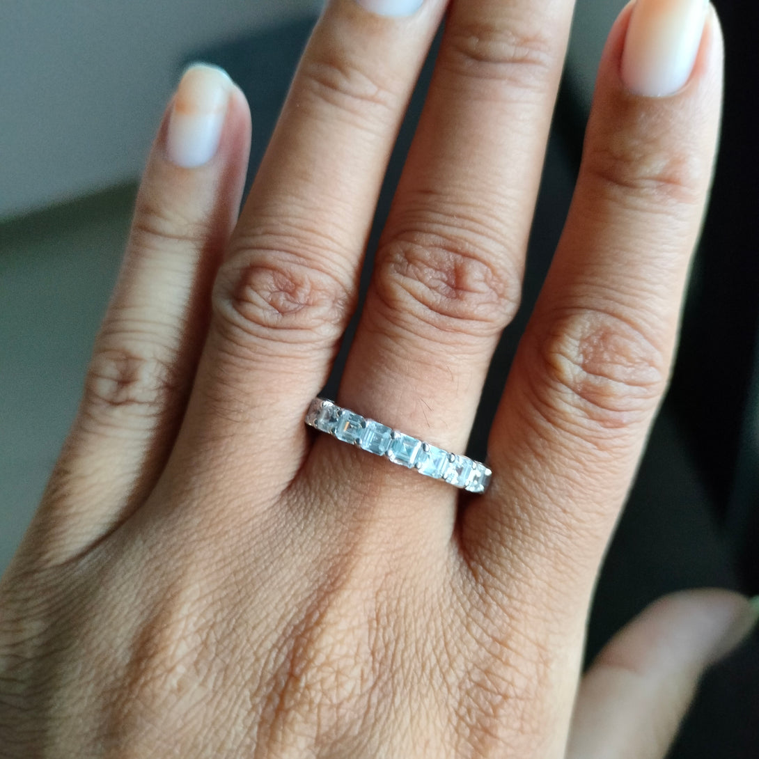 Classic Asscher Cut Moissanite Full Eternity Band 18K Solid Gold Wedding Band