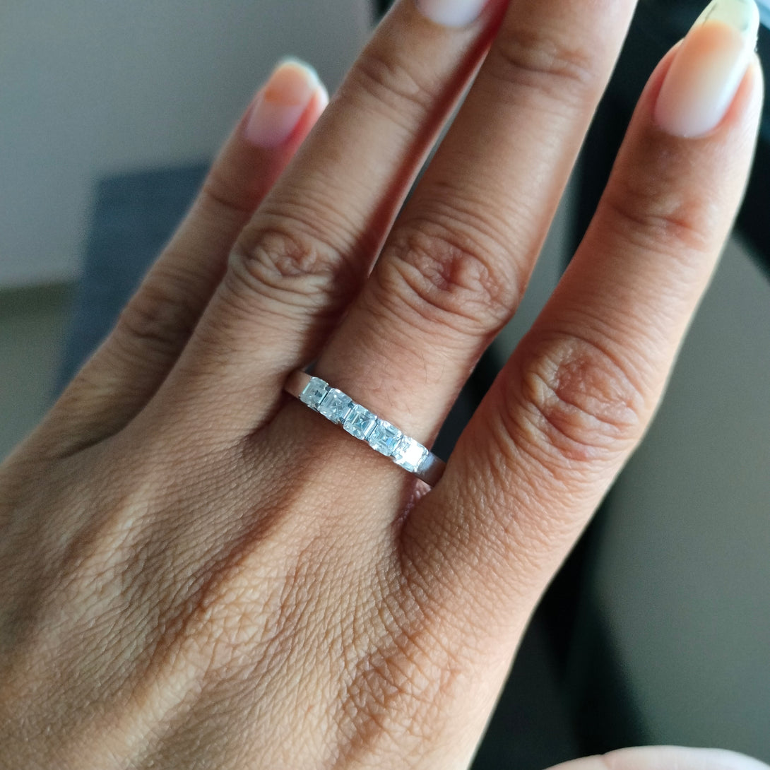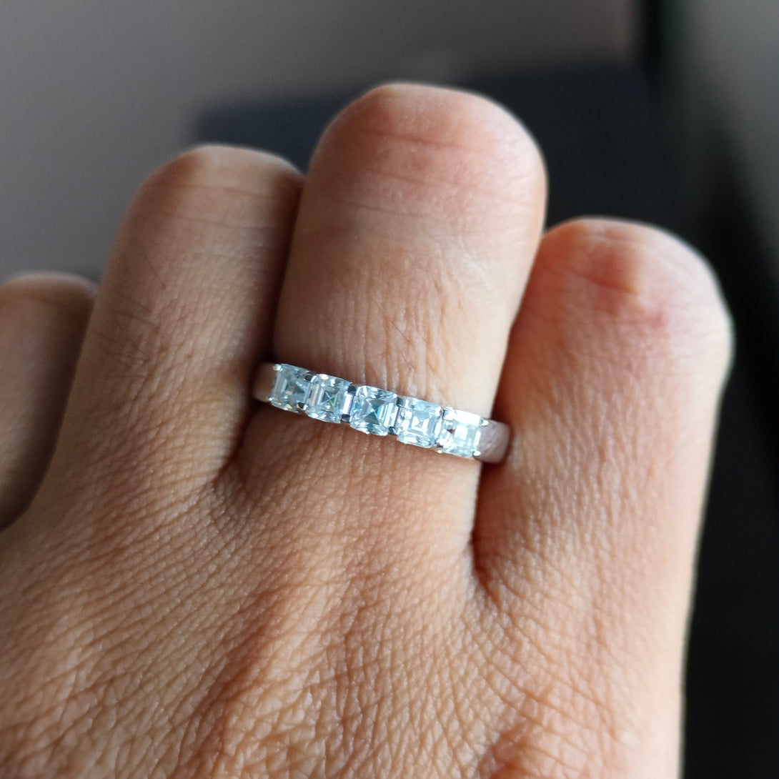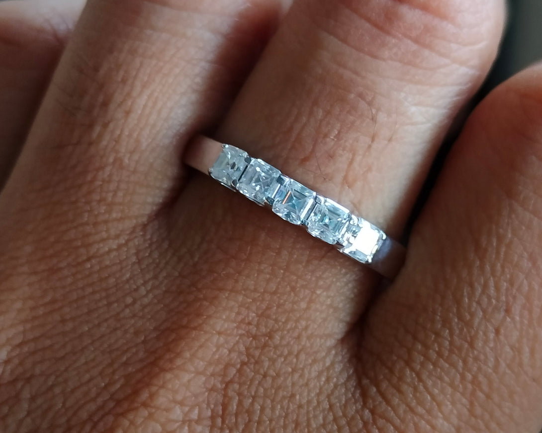 Square 5 Stone Wedding Band Asscher Moissanite Eternity Ring Dainty Fine Jewelry