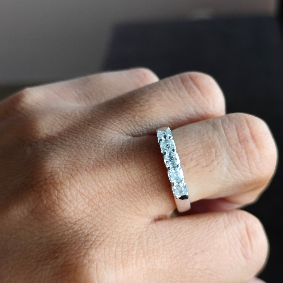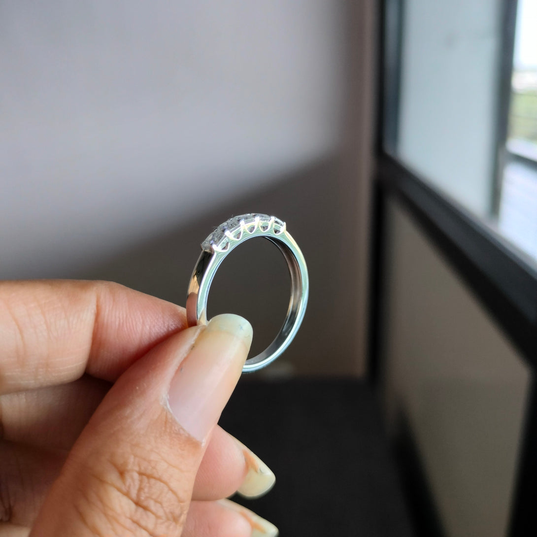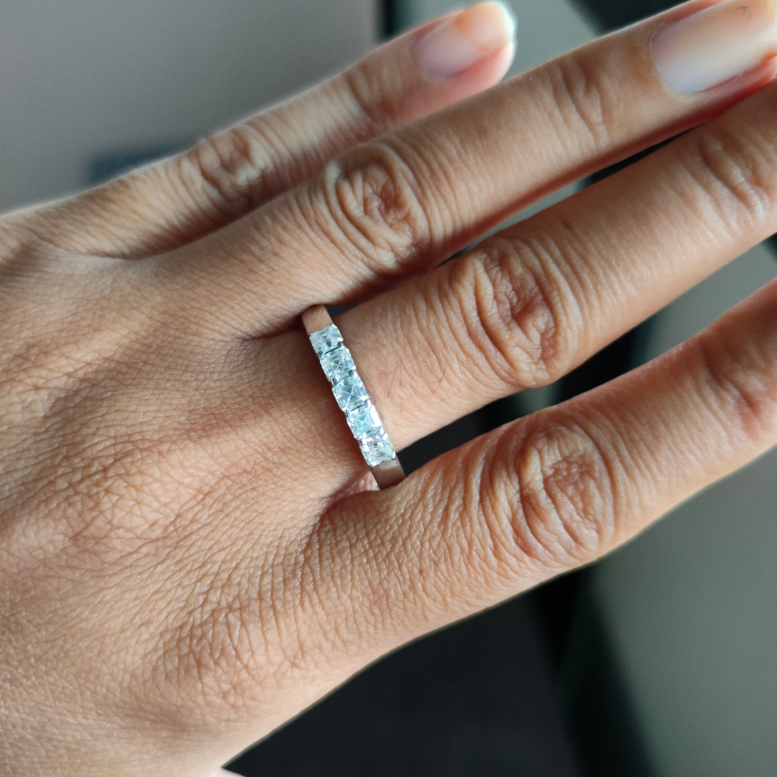 Square 5 Stone Wedding Band Asscher Moissanite Eternity Ring Dainty Fine Jewelry