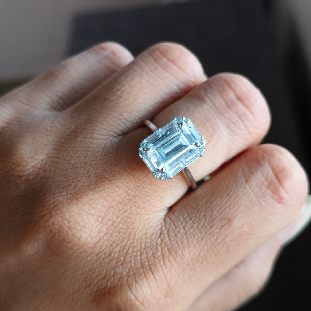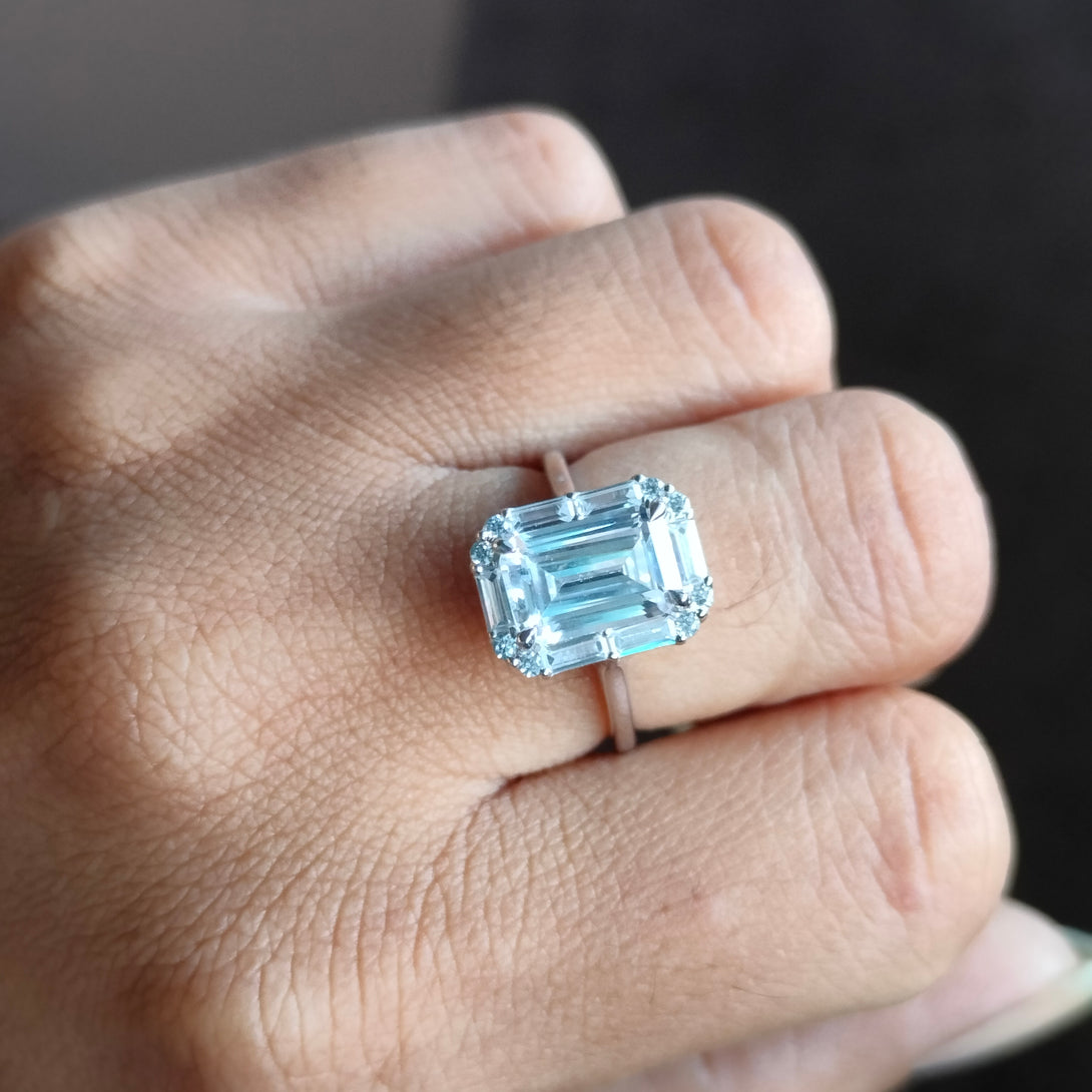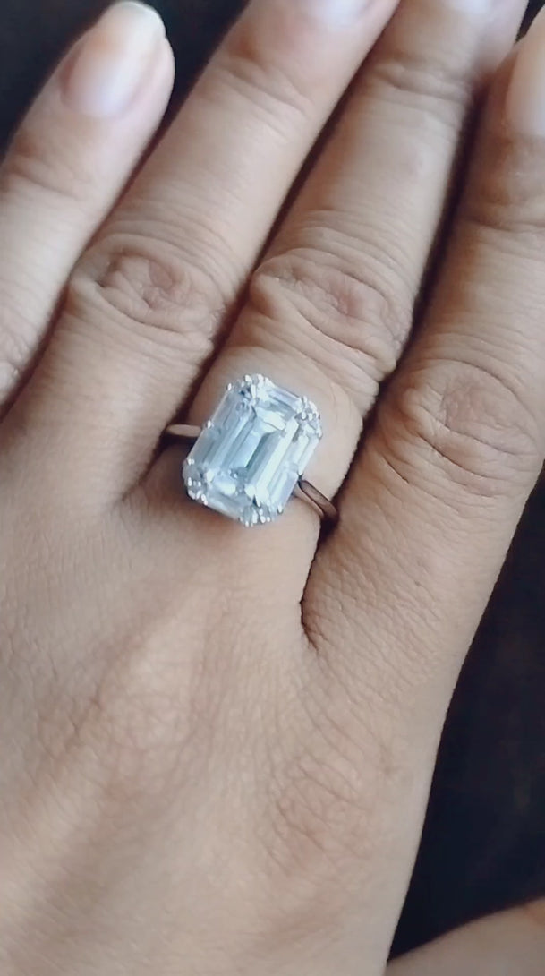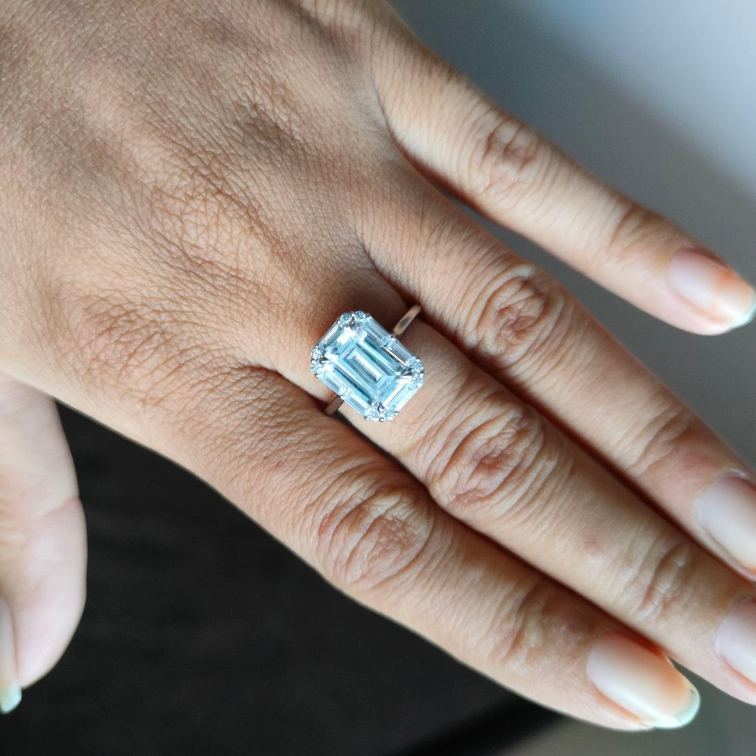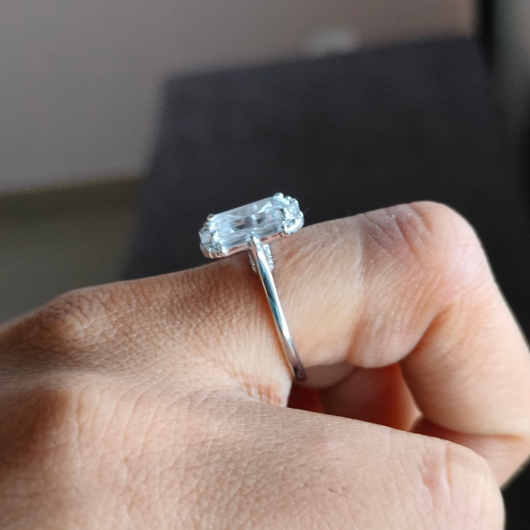 Colorless Emerald Cut Moissanite Engagement Ring Cluster Halo Wedding Ring