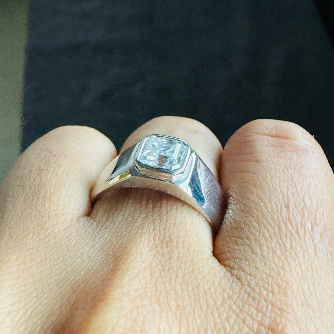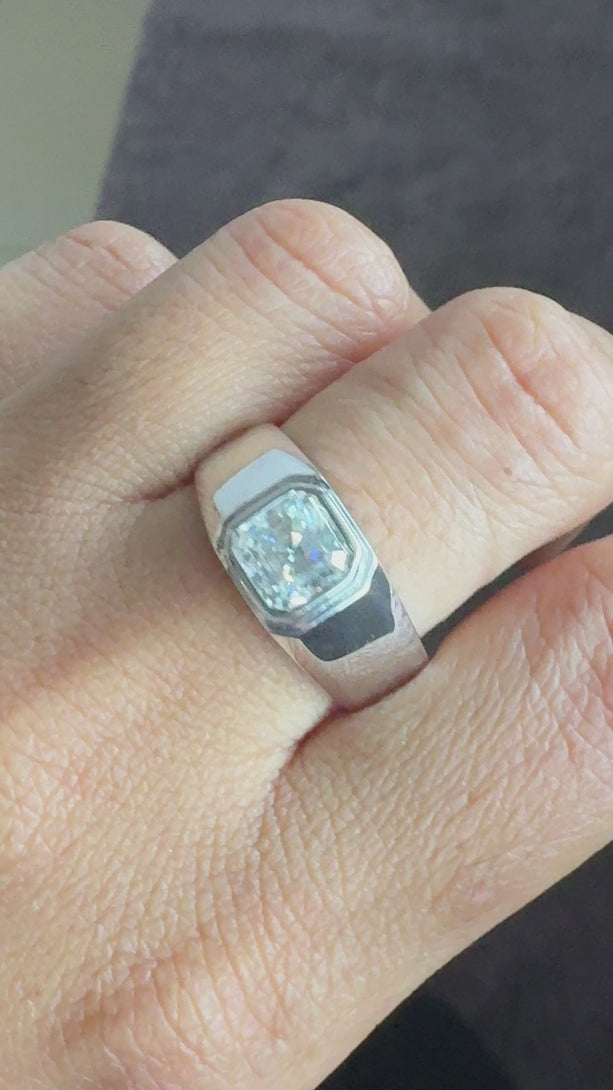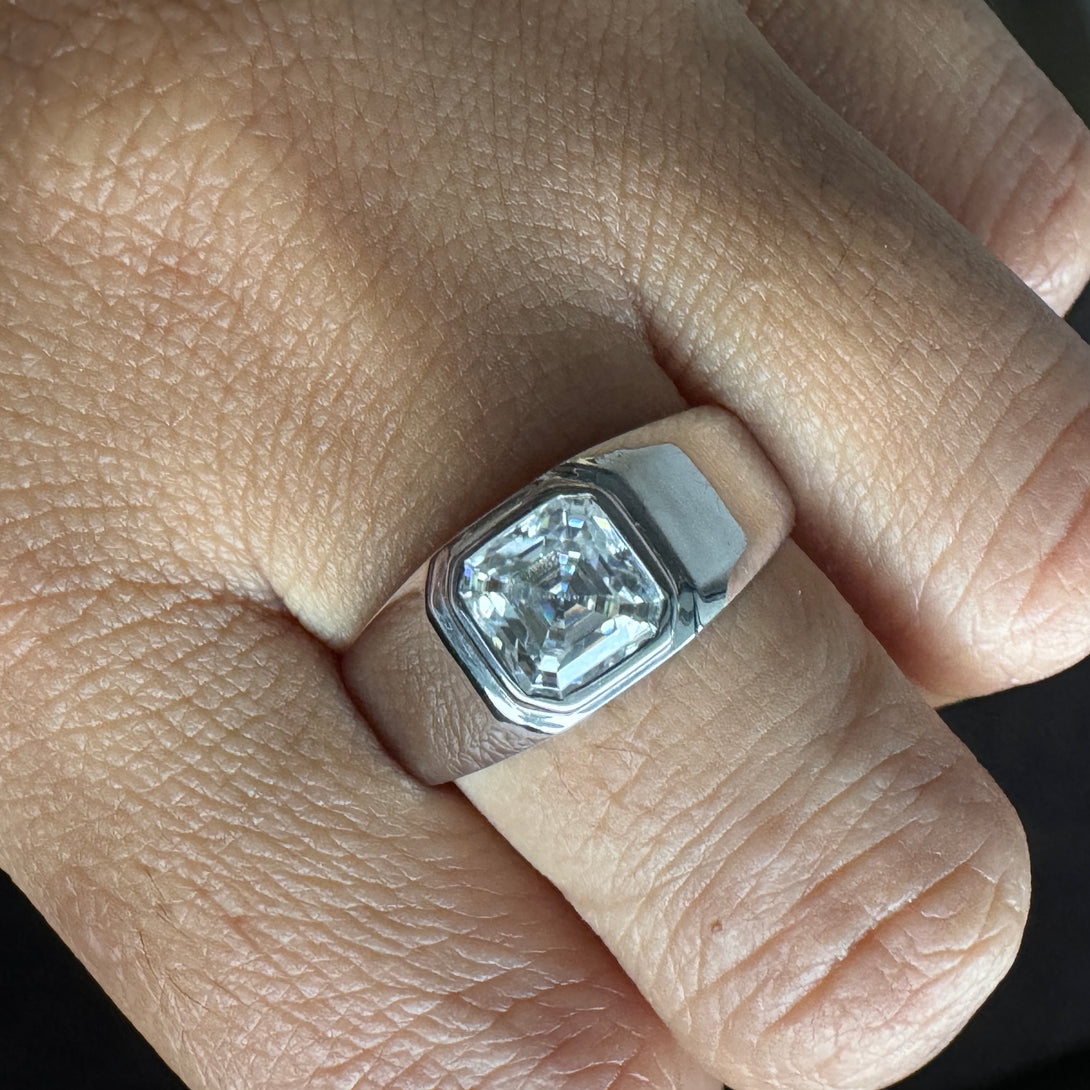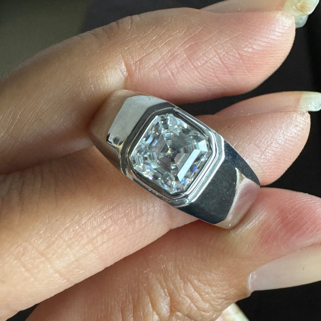 2 CTW Asscher Cut Moissanite Men's Engagement Ring Solitaire Ring Gift Him