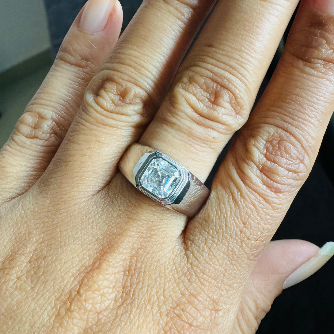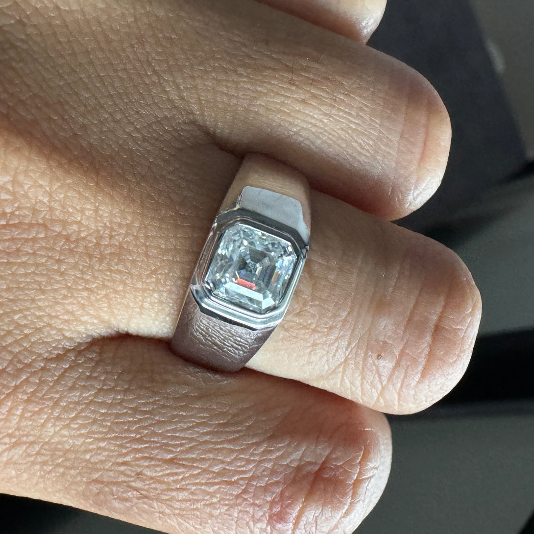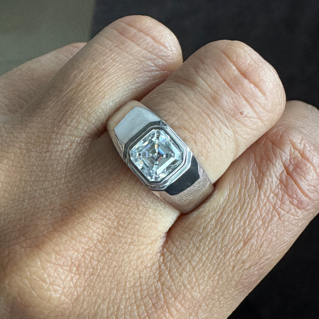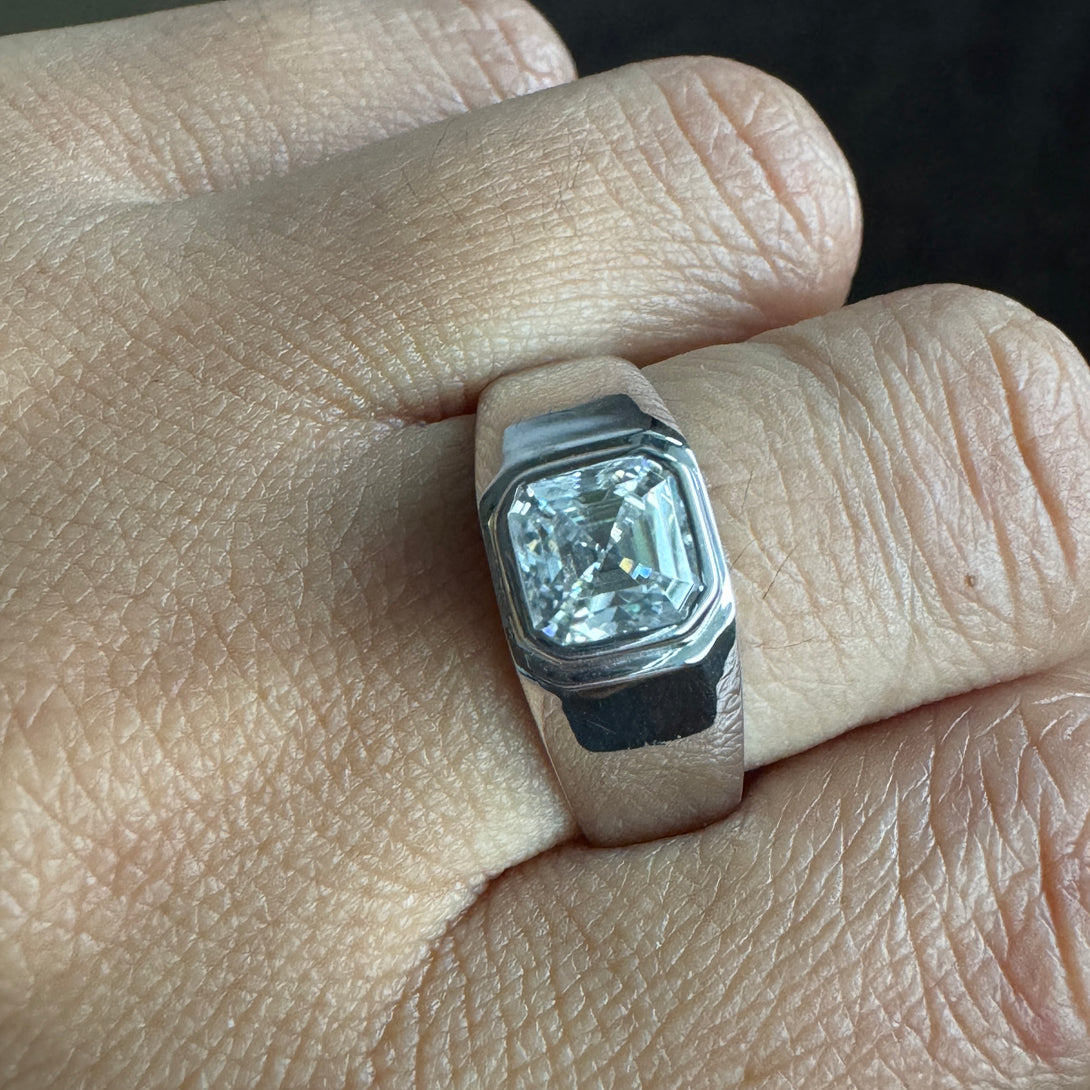 2 CTW Asscher Cut Moissanite Men's Engagement Ring Solitaire Ring Gift Him