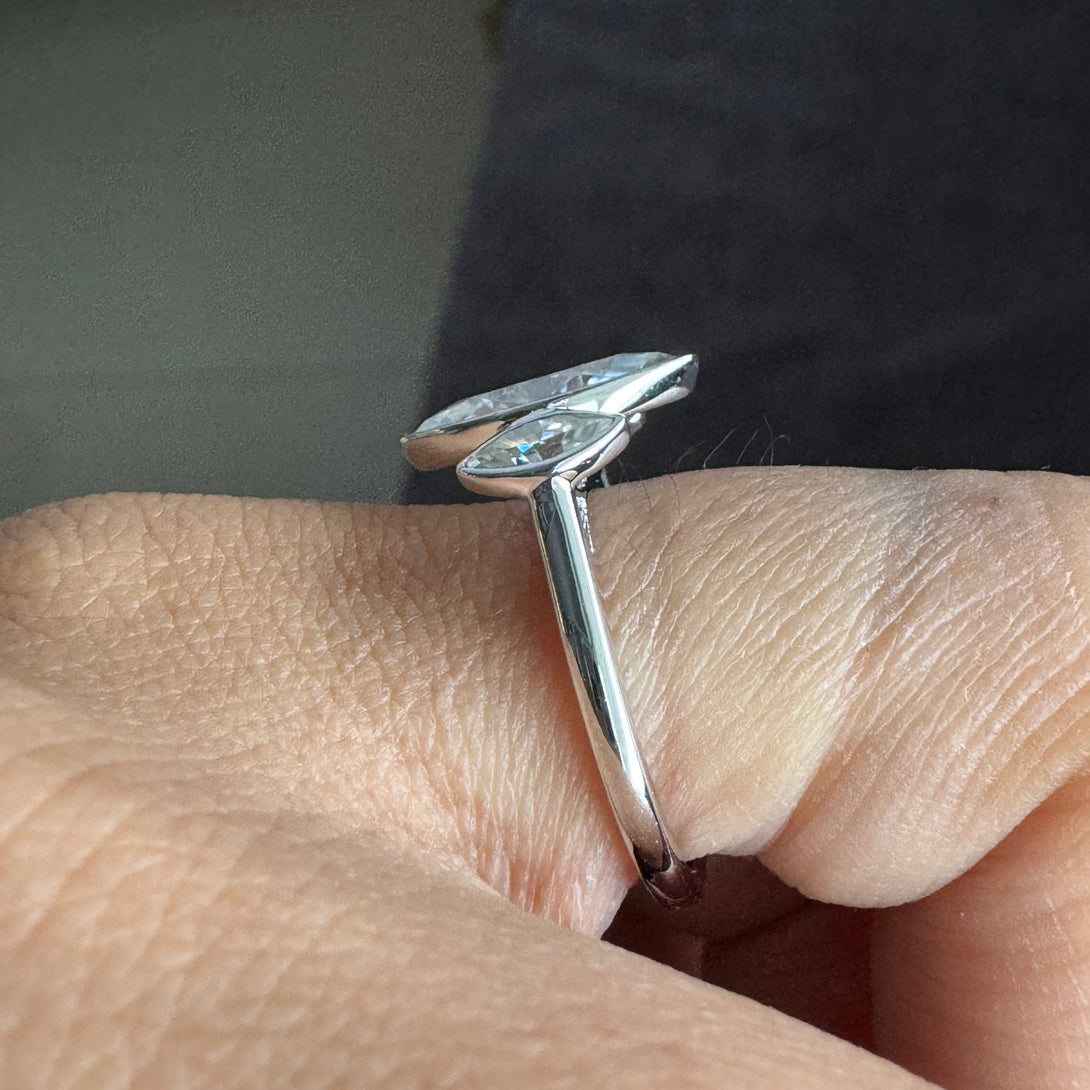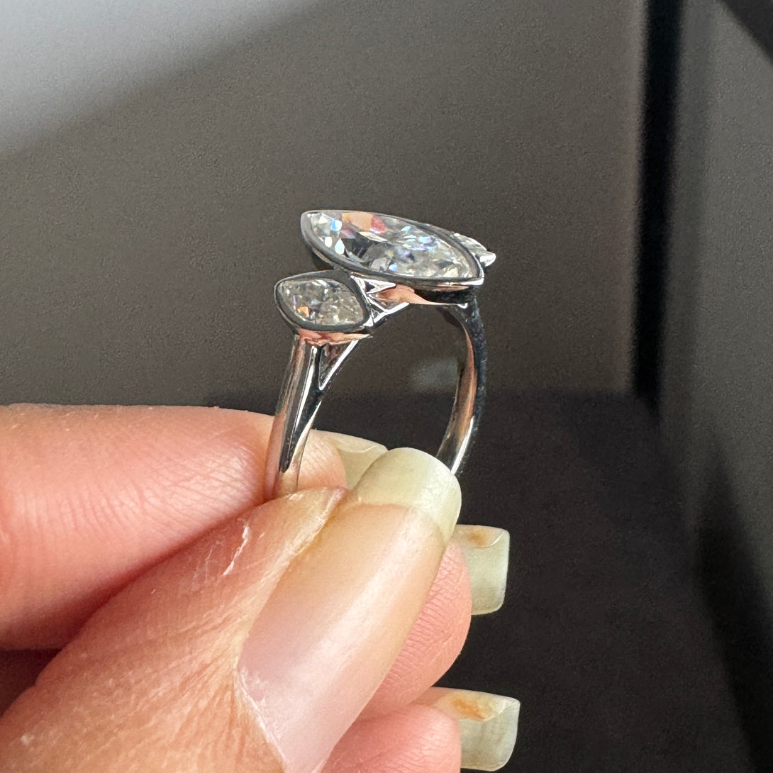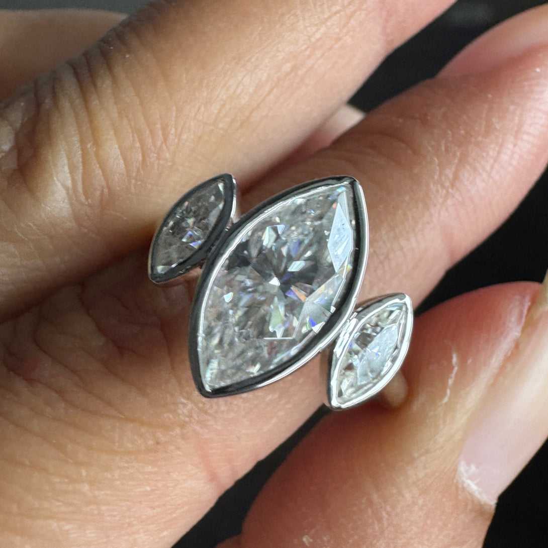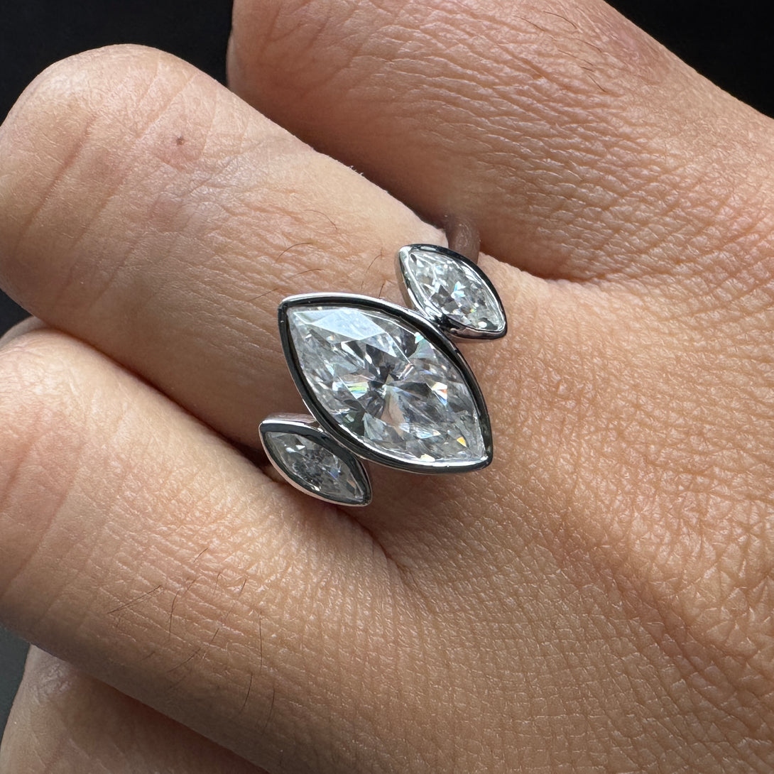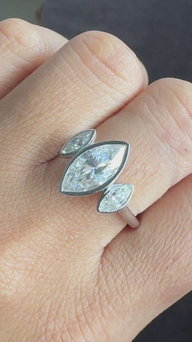 Bezel Set Marquise Three Stone Ring Colorless Moissanite Engagement Ring
