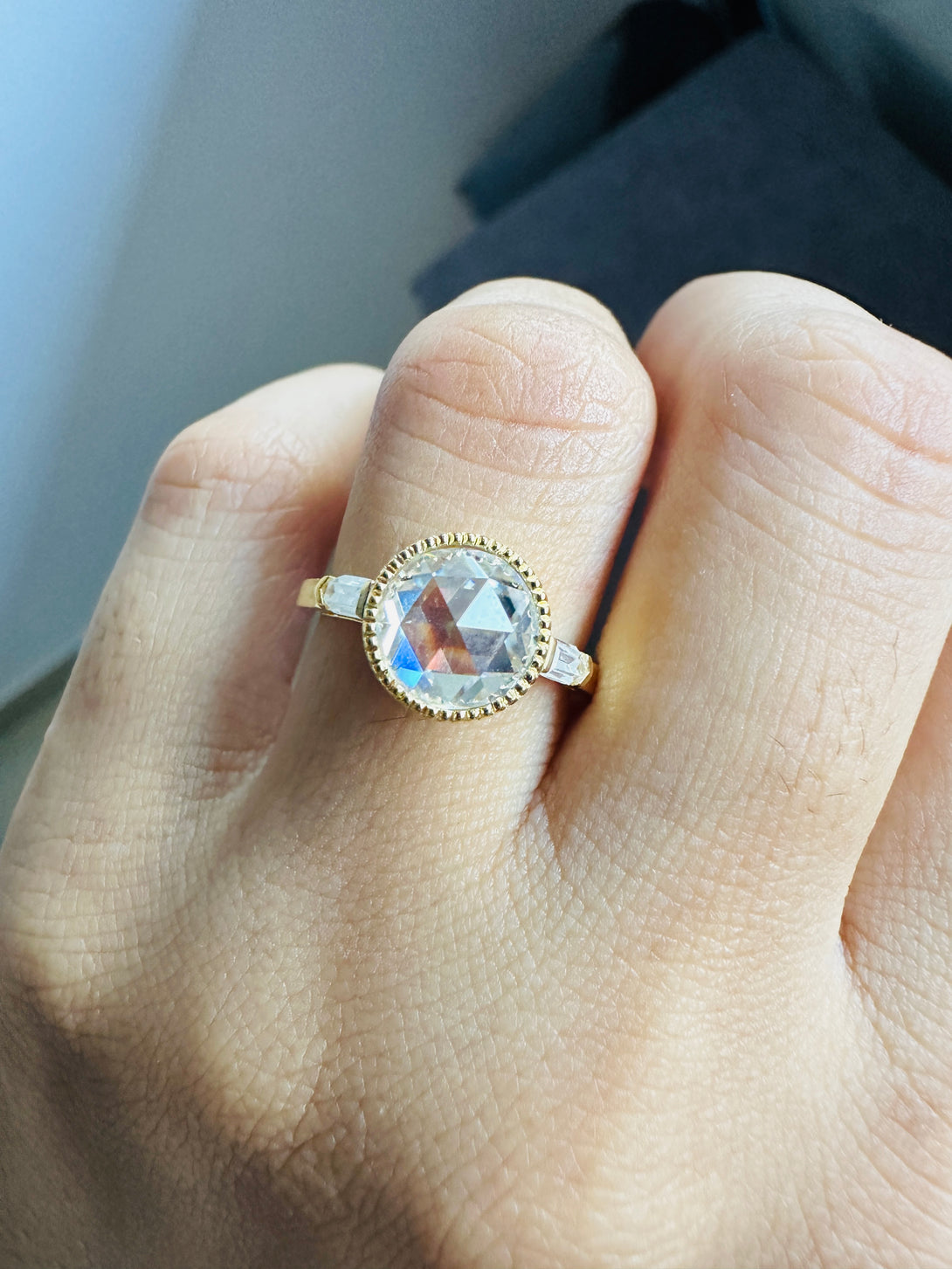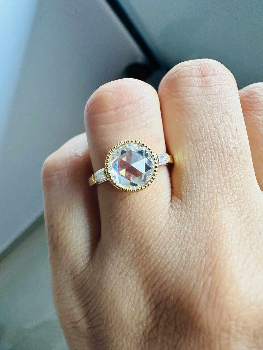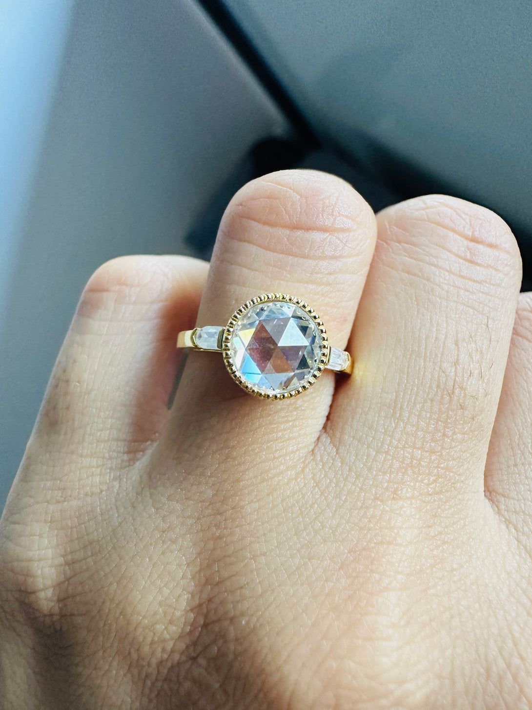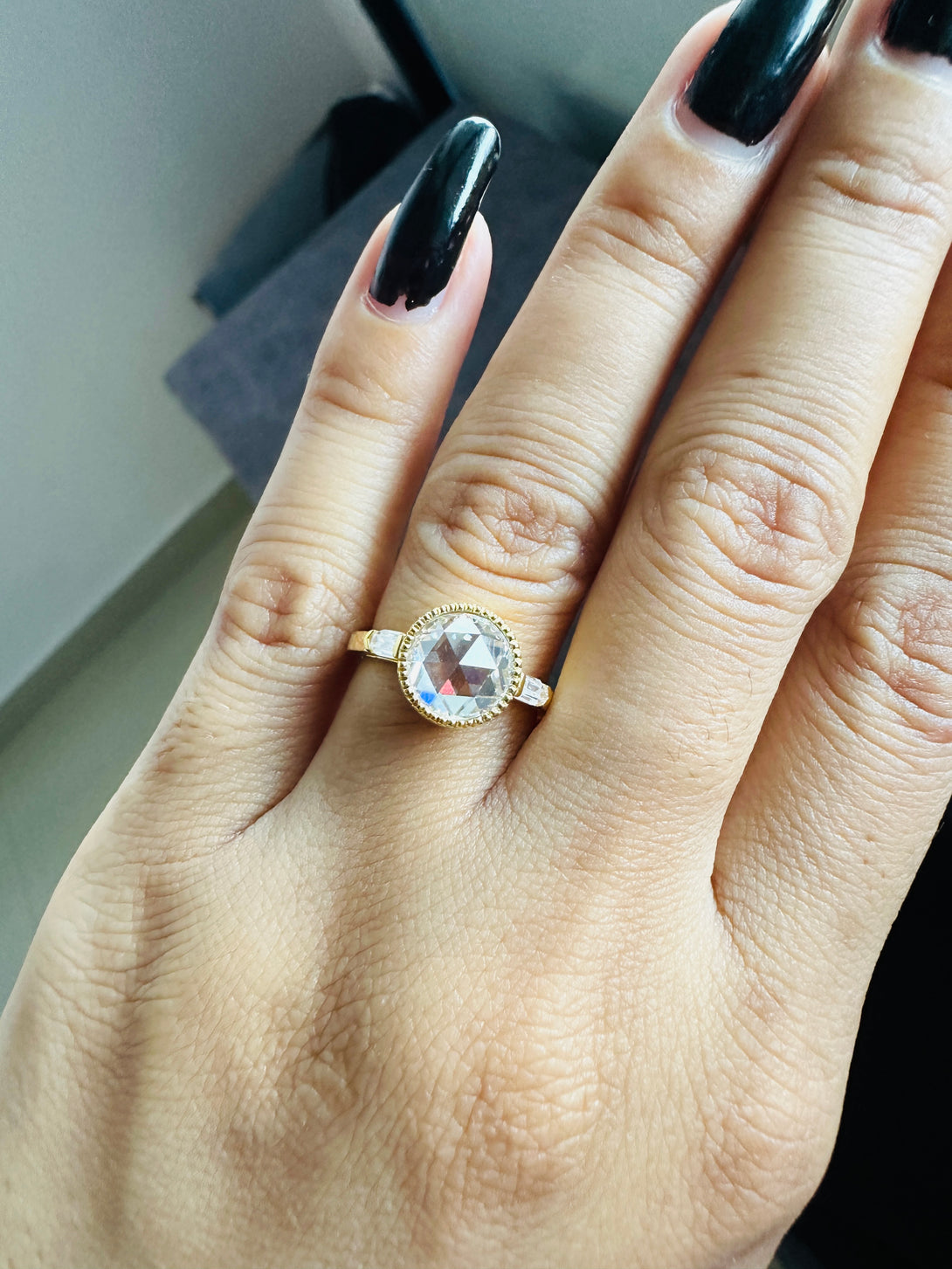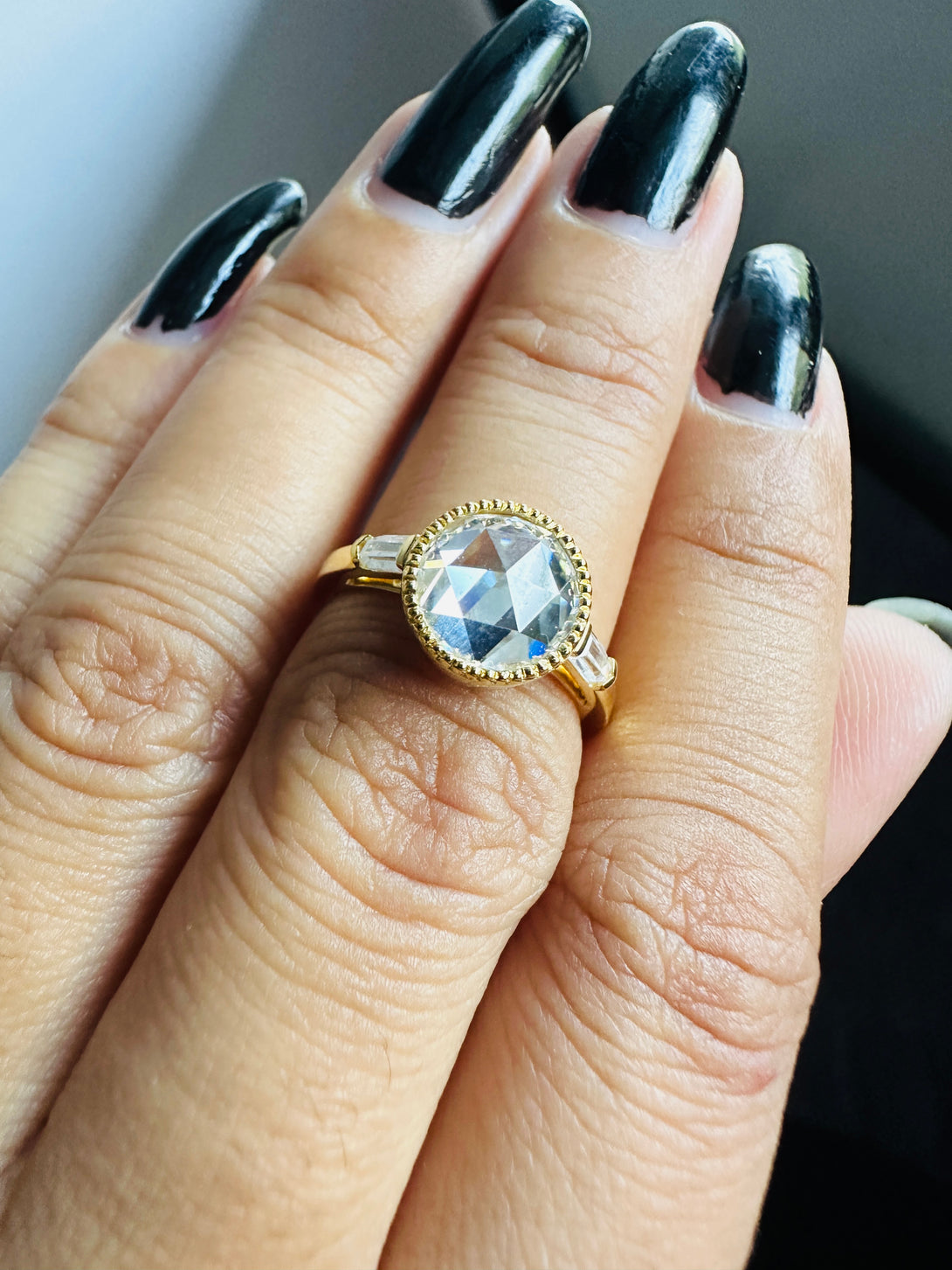 Rose Cut Three Stone Wedding Ring Round Moissanite Engagement Ring Her