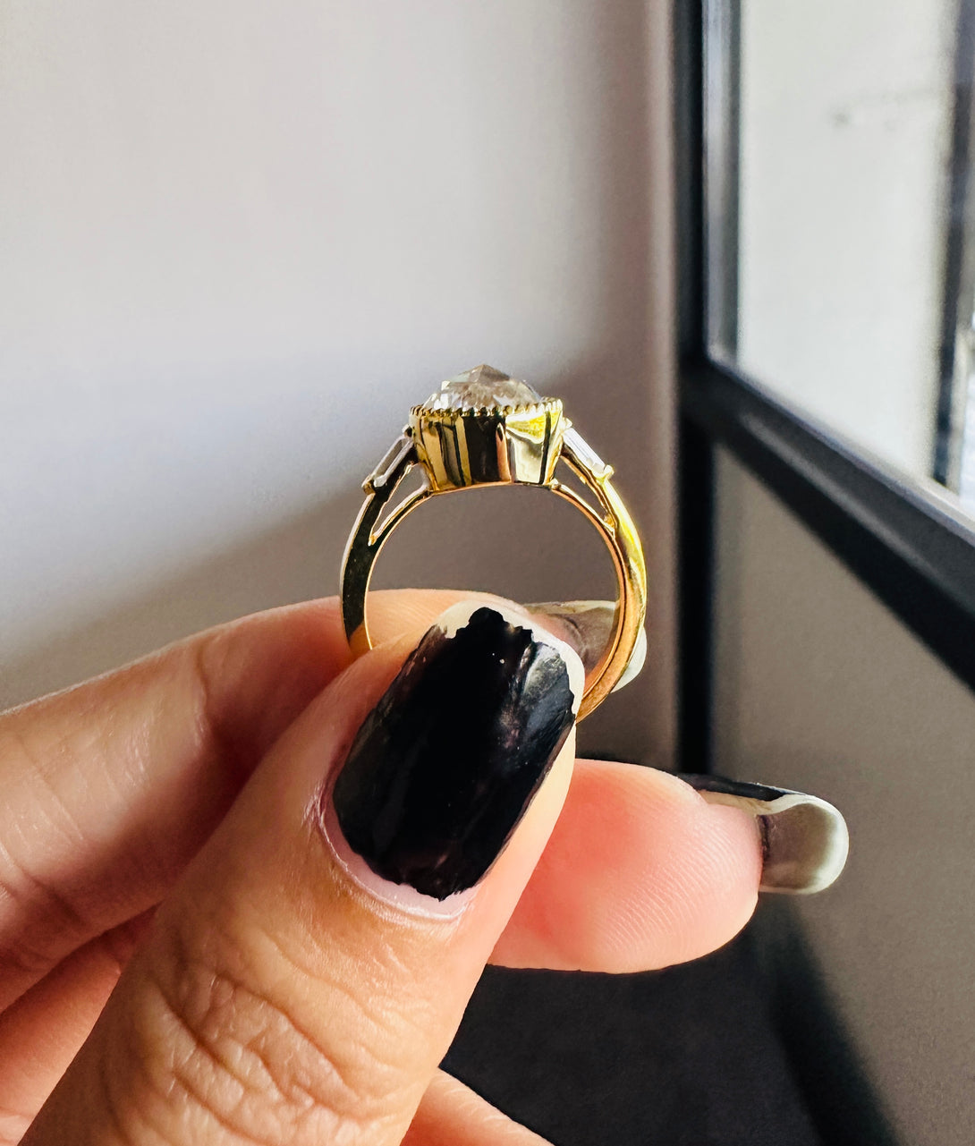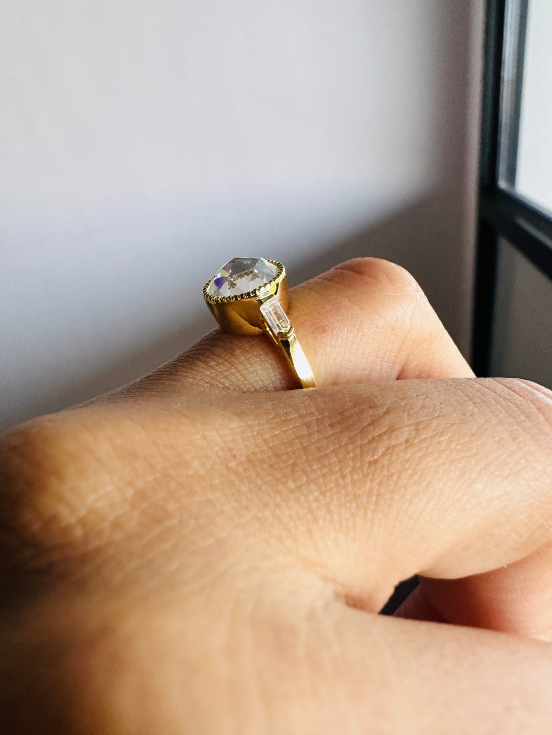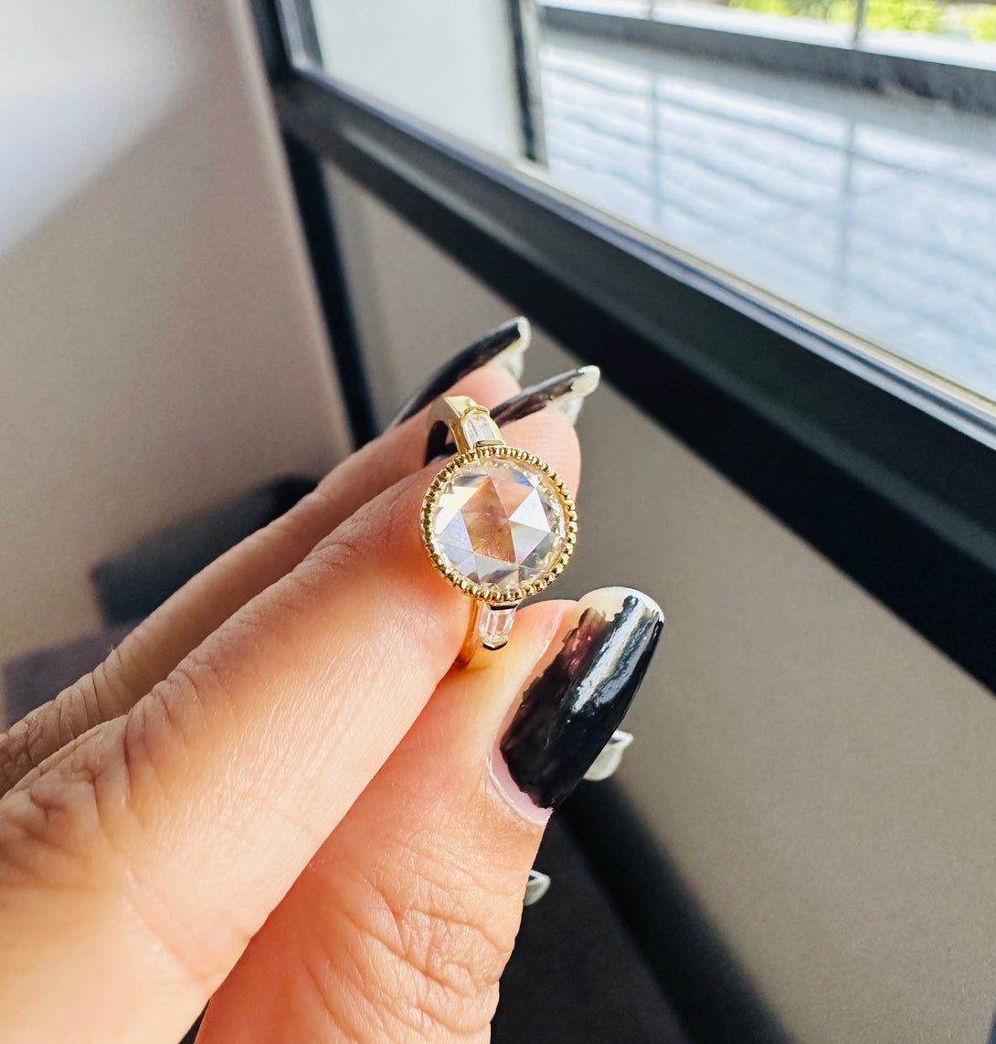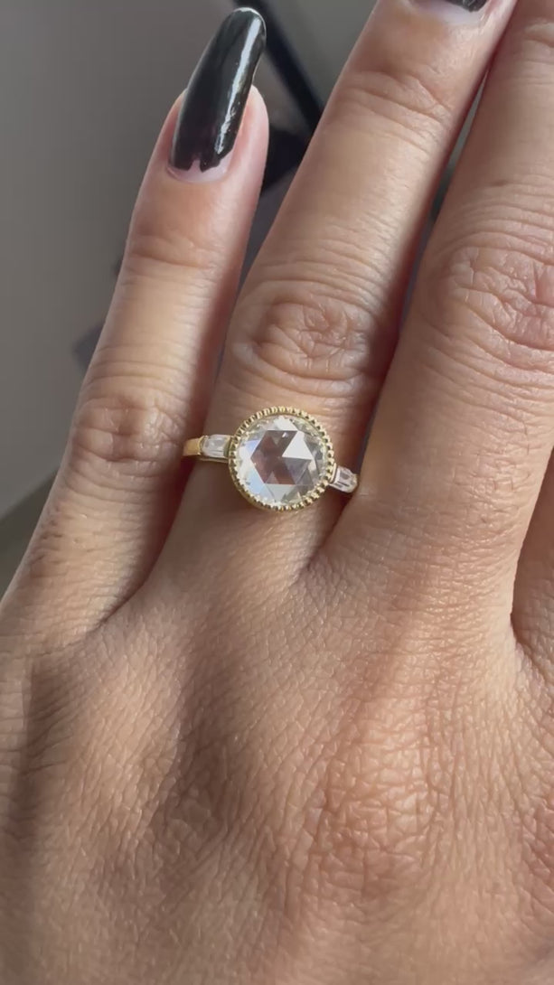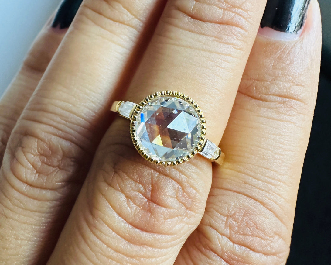 Rose Cut Three Stone Wedding Ring Round Moissanite Engagement Ring Her