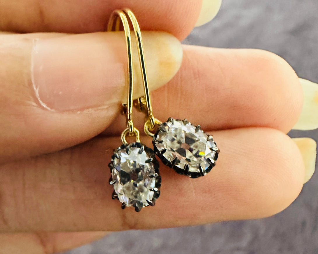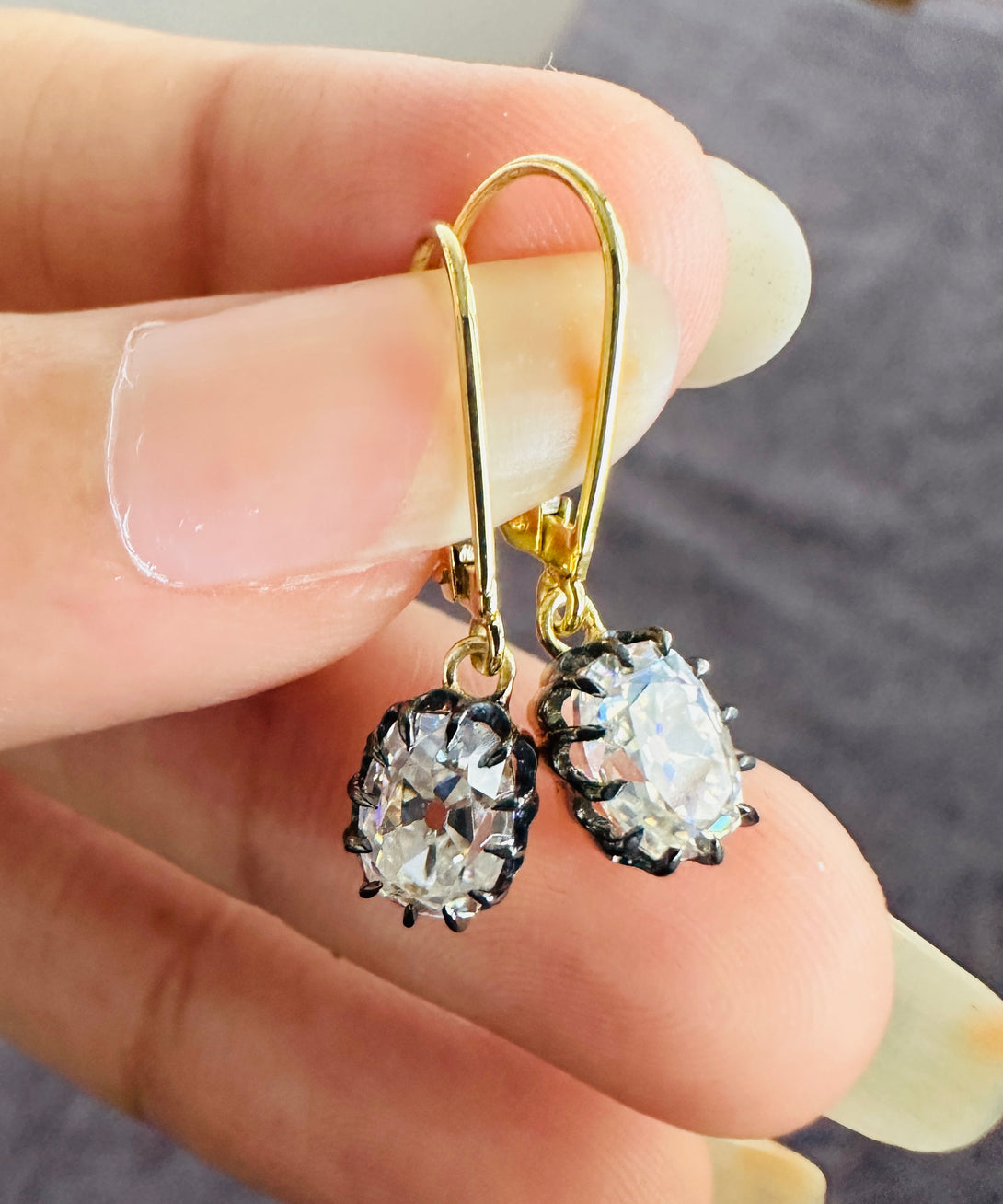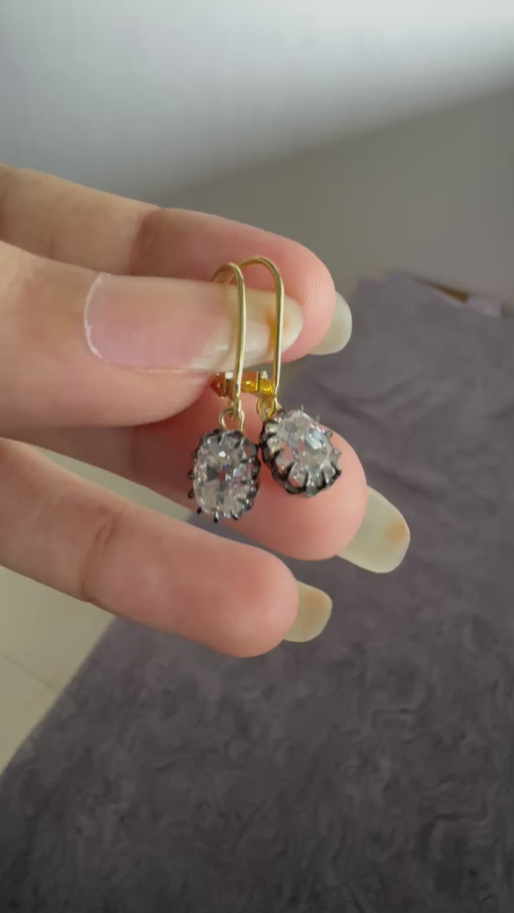 Solitaire Old Mine Cushion Moissanite Earrings Dangle Drop Leverback Earrings