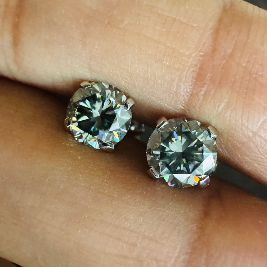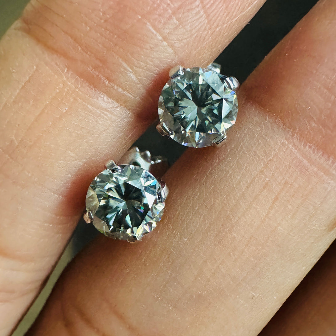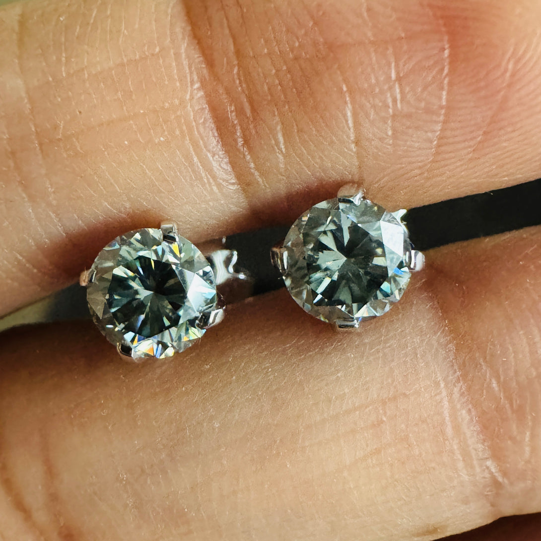 Dainty Moissanite Stud Green Diamond Earrings Solitaire Minimal Studs In Gold