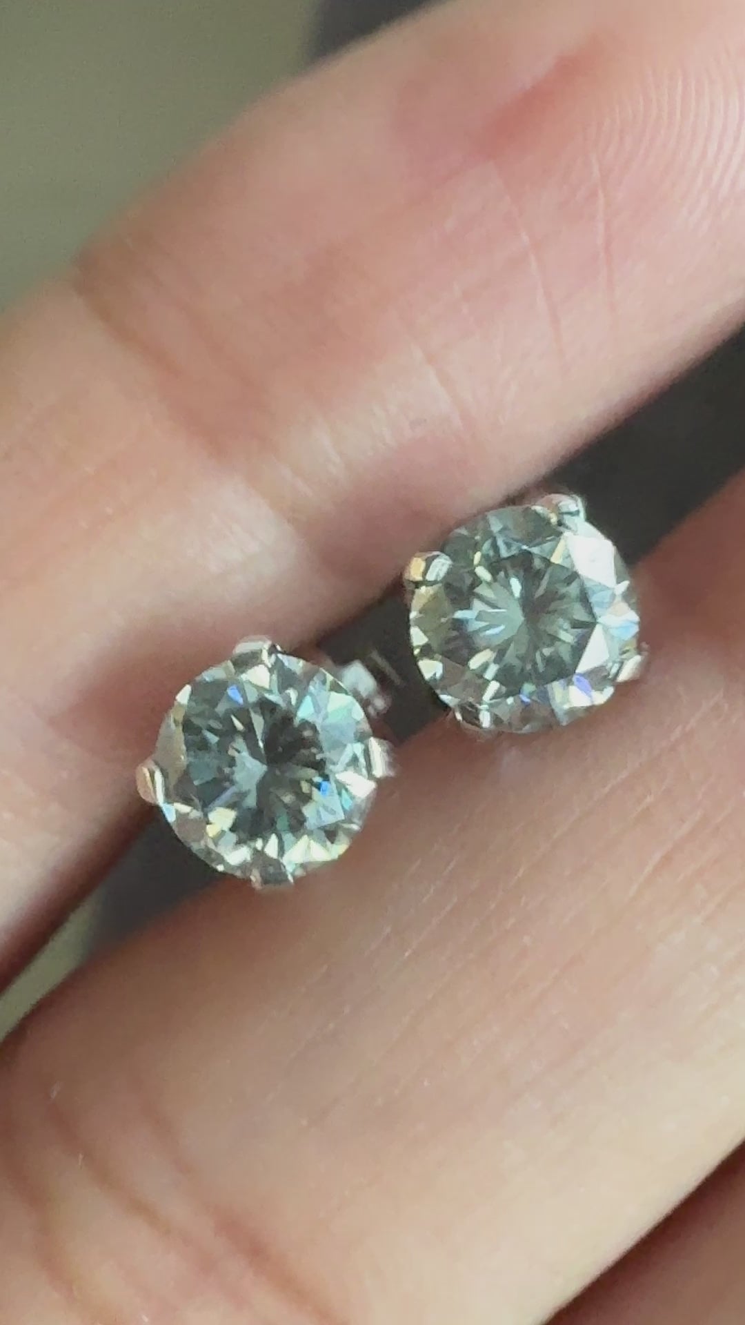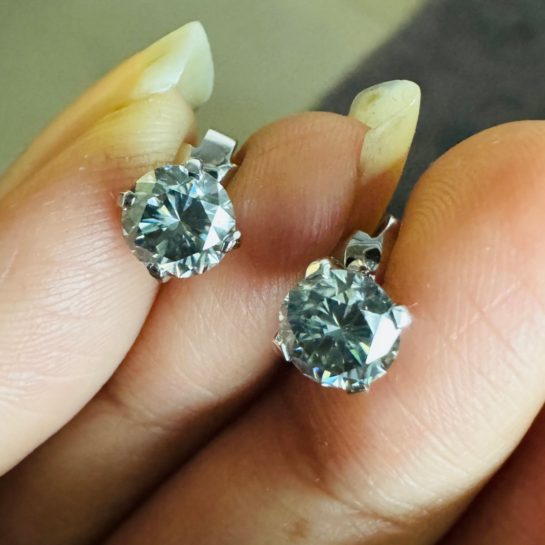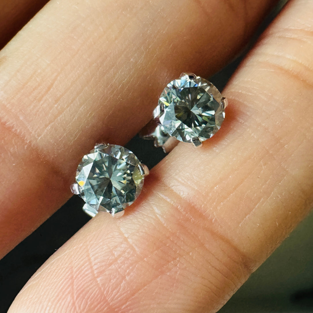 Dainty Moissanite Stud Green Diamond Earrings Solitaire Minimal Studs In Gold
