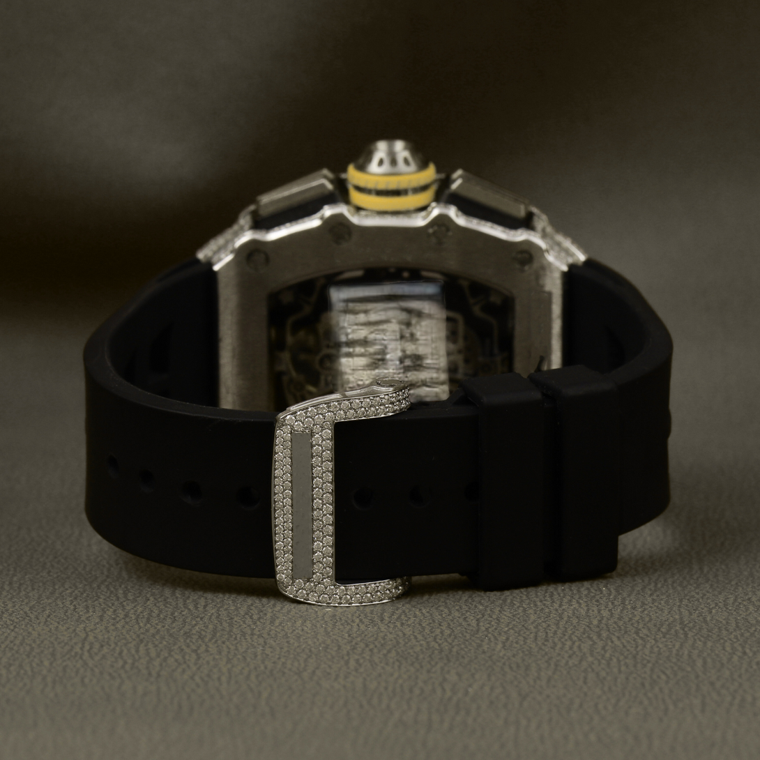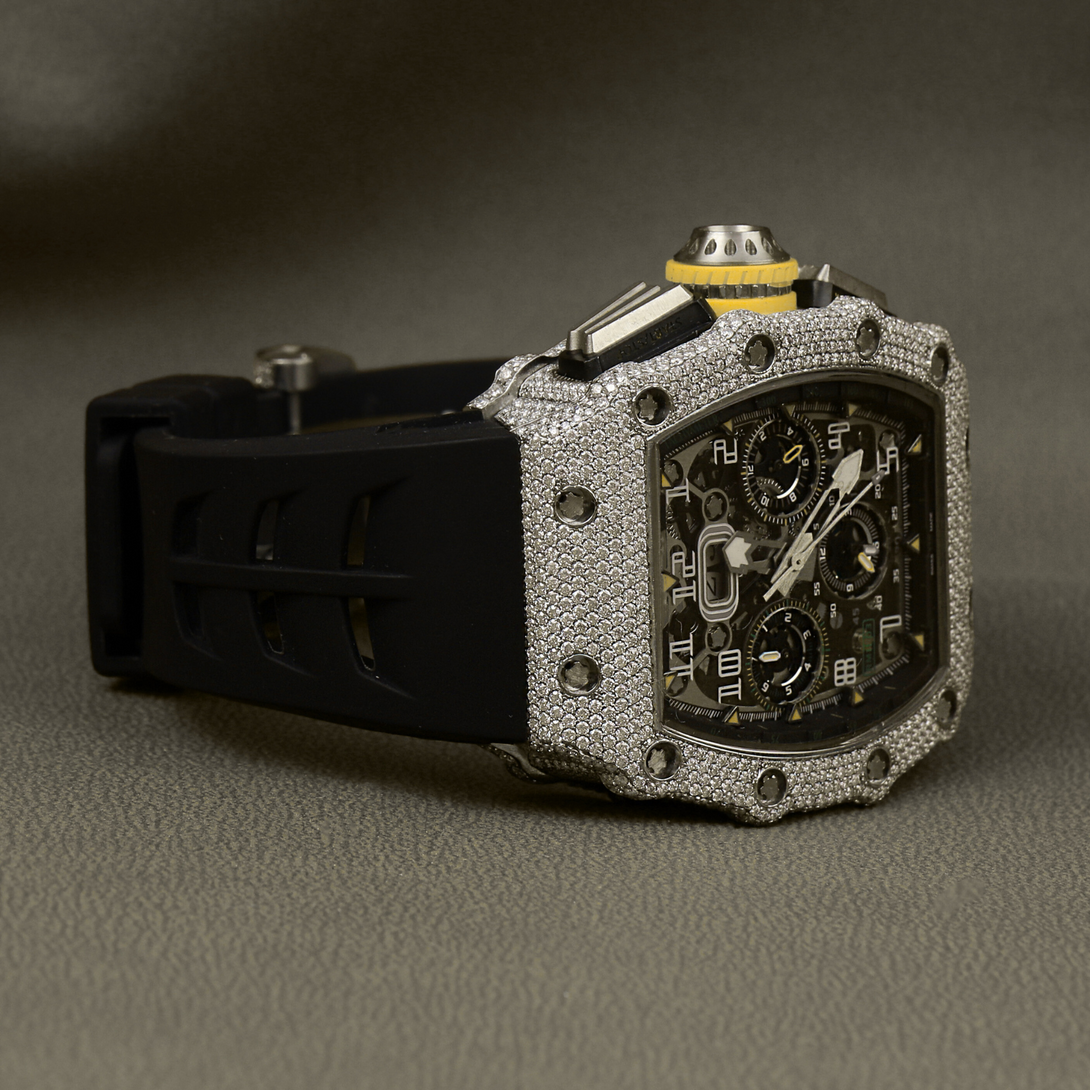 Customized Mechanical Designer Men Luxury Wrist rubber band Watch with Half Iced Out VVS Clarity Round Moissanite Diamond watch for Men