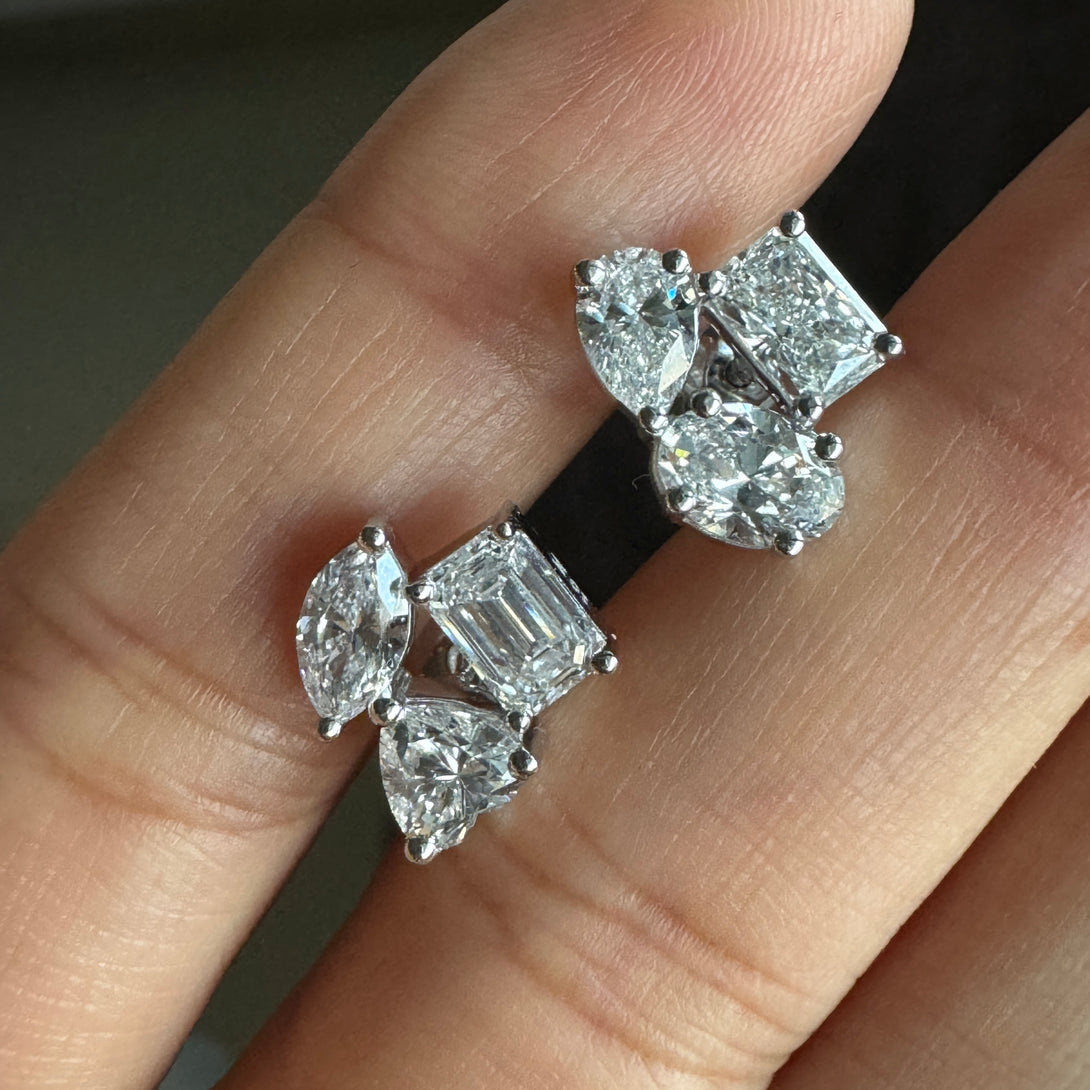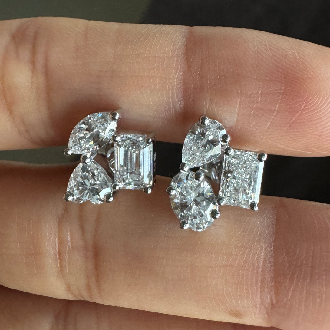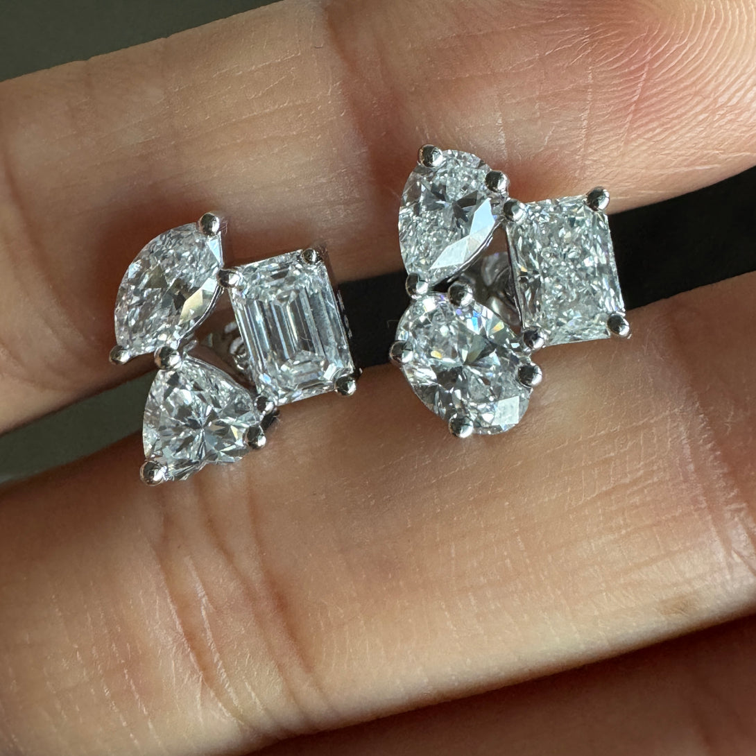 Multiple Cut Stone Stud Earrings Three Moissanite Diamond Birthday Gift For Her