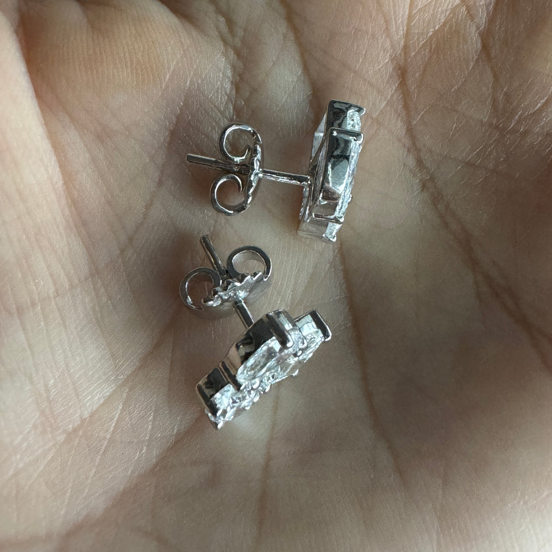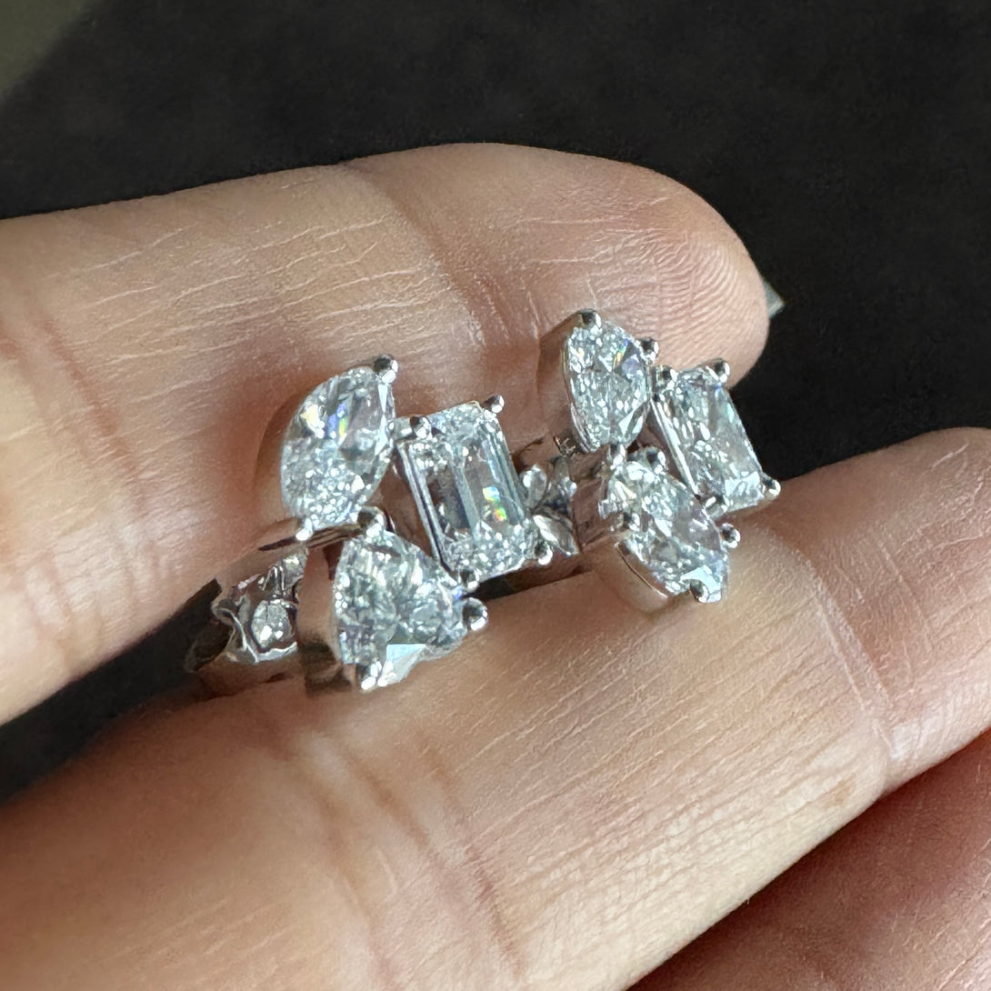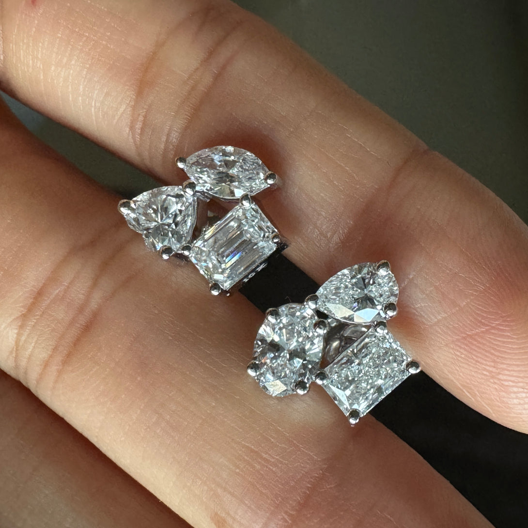 Multiple Cut Stone Stud Earrings Three Moissanite Diamond Birthday Gift For Her