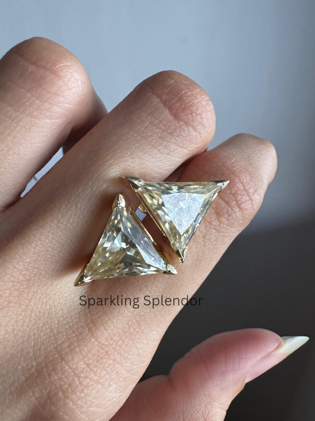 12 MM Yellow Canary Moissanite Stud Earrings Trillion Cut Diamond Gift For Her