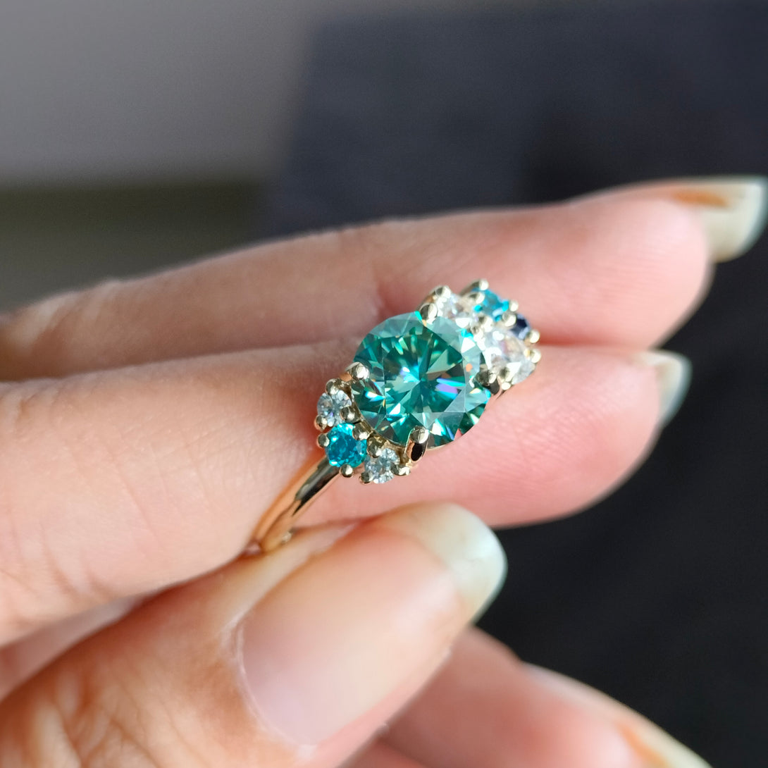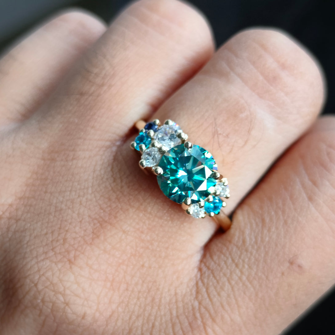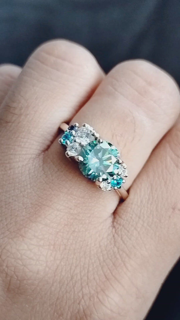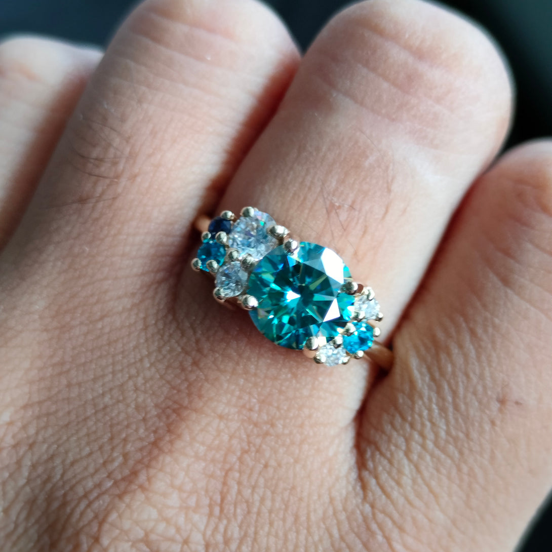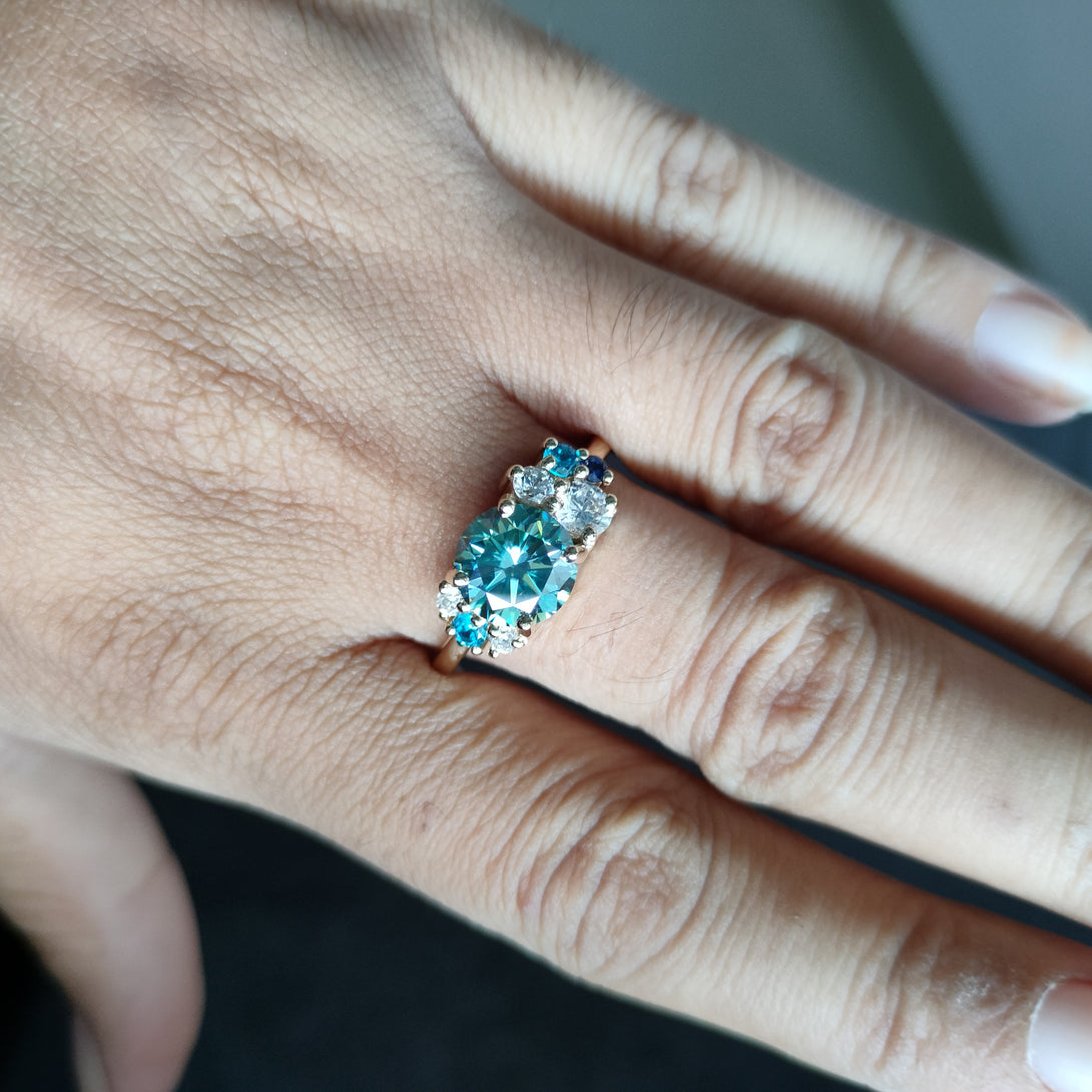Blue Moissanite Engagement Ring Cluster Round Cut Wedding Promise Ring