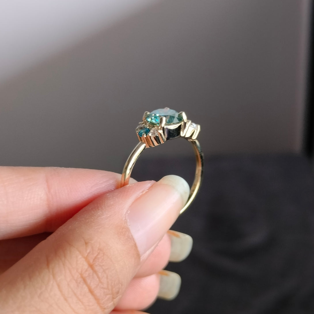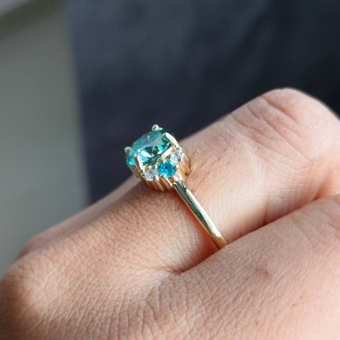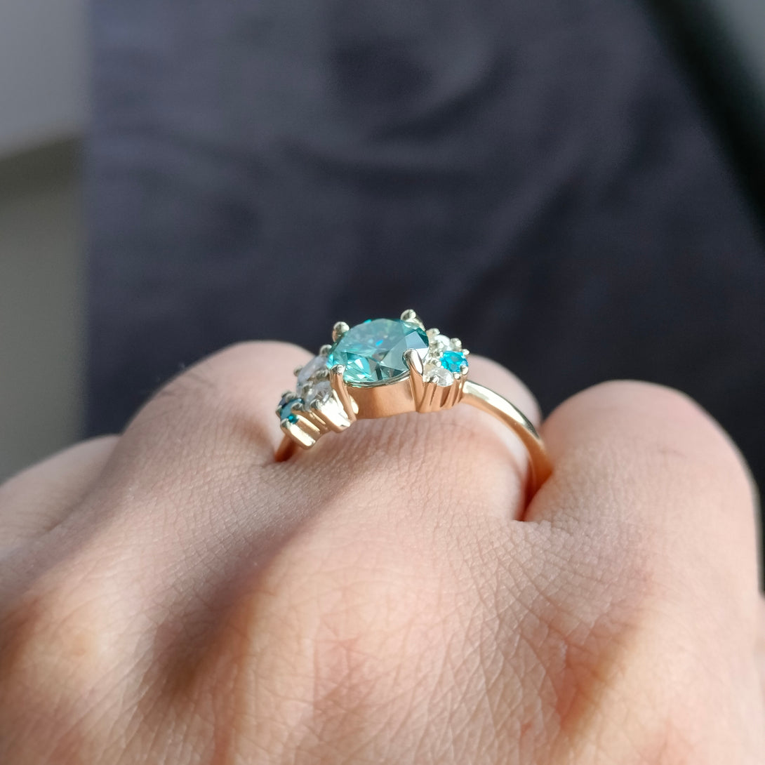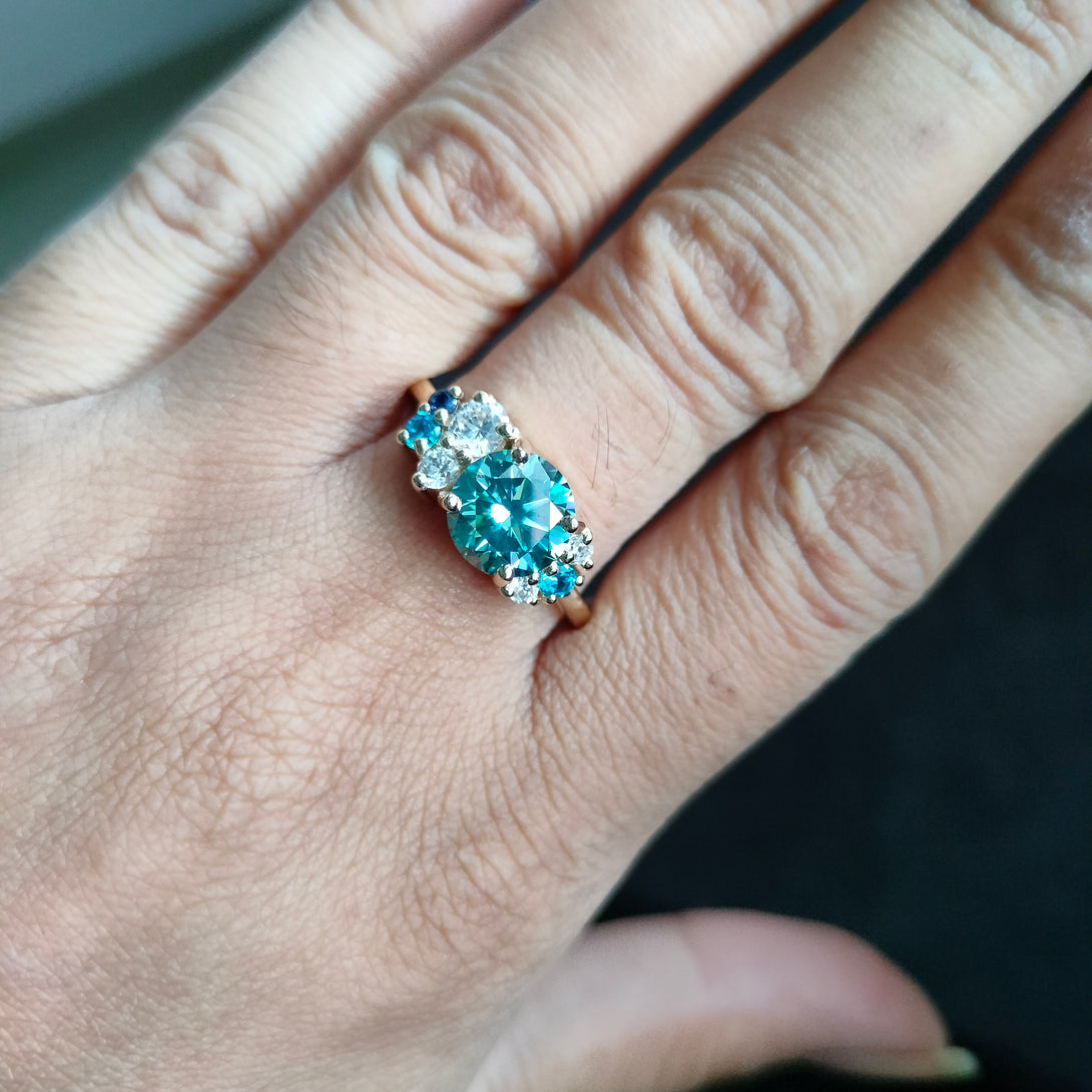 Blue Moissanite Engagement Ring Cluster Round Cut Wedding Promise Ring