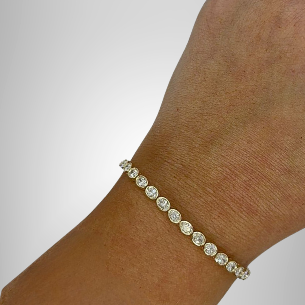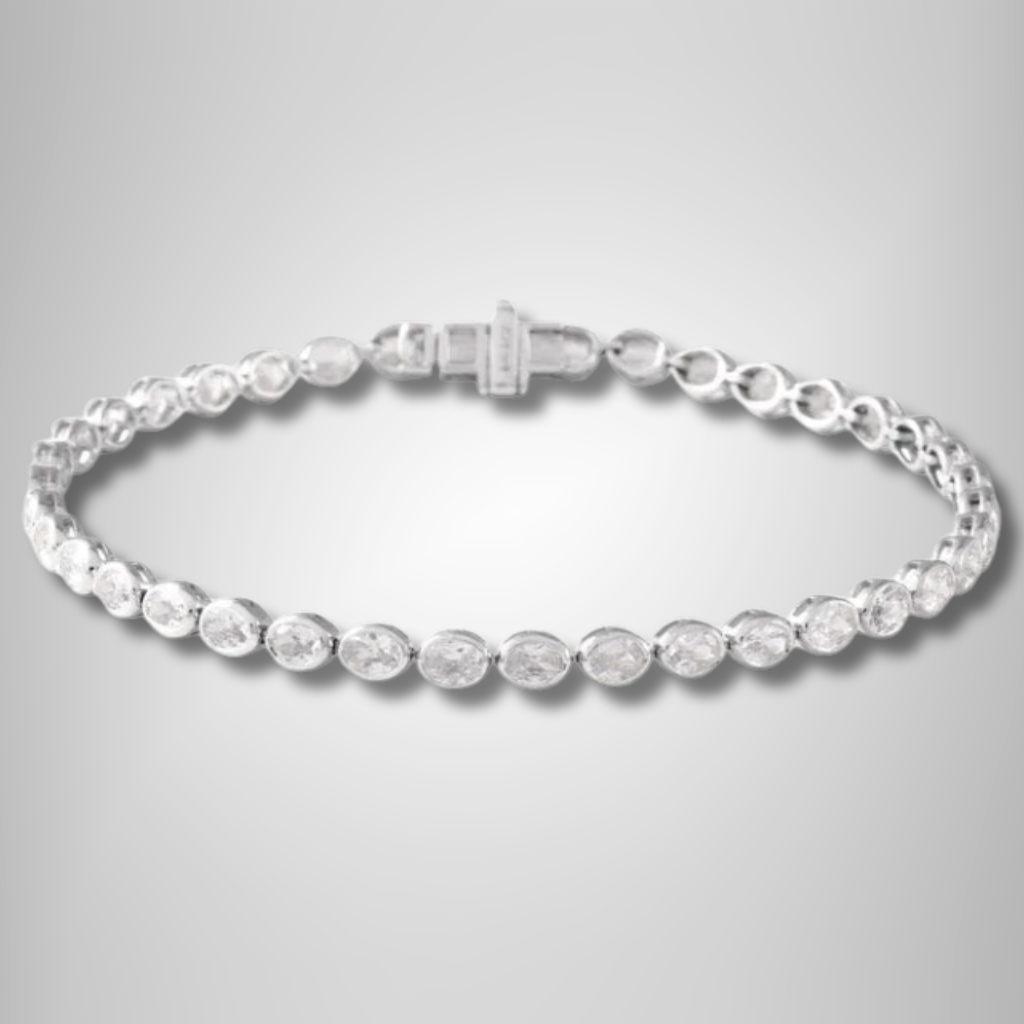 Bezel Set Oval Cut Moissanite Bracelet Sterling Silver Tennis Bracelet For Women