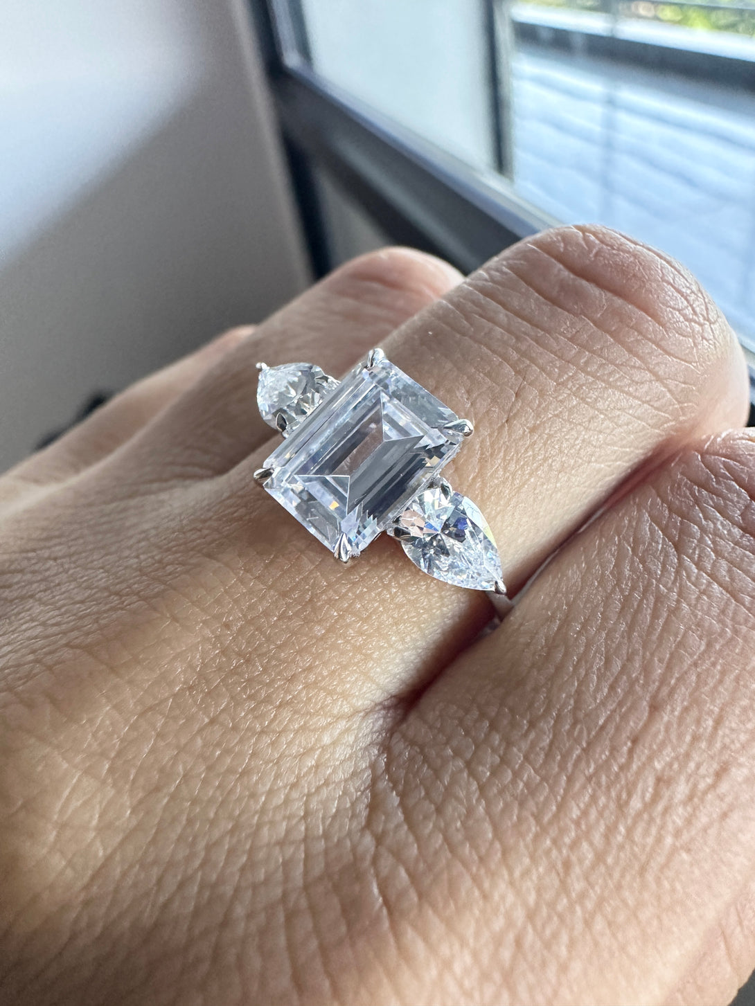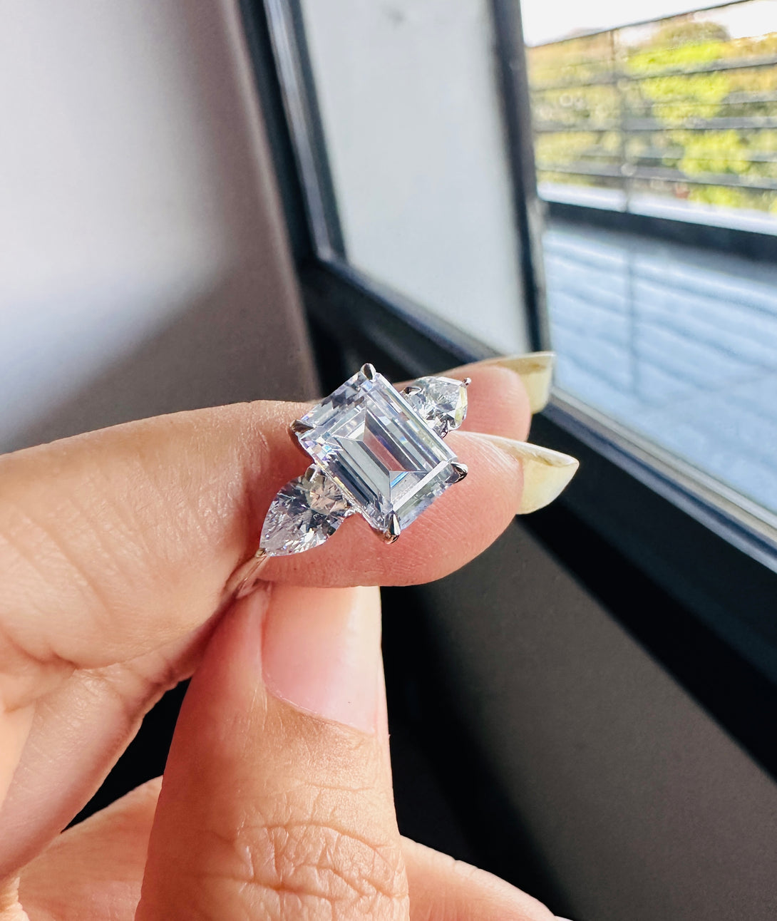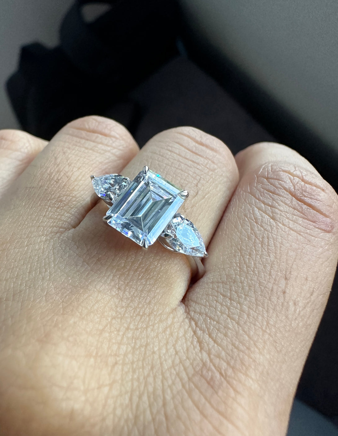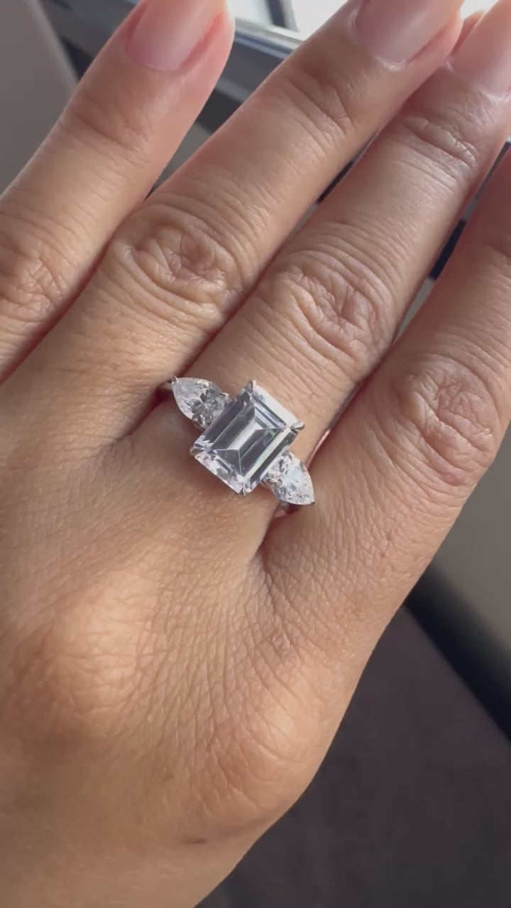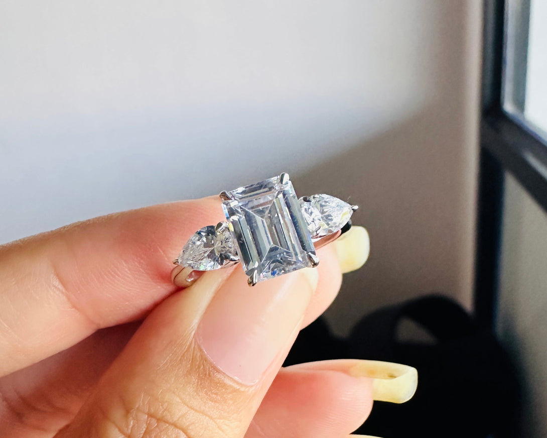 3 CTW Emerald Cut Moissanite Engagement Ring Three Stone Anniversary Gift Ring