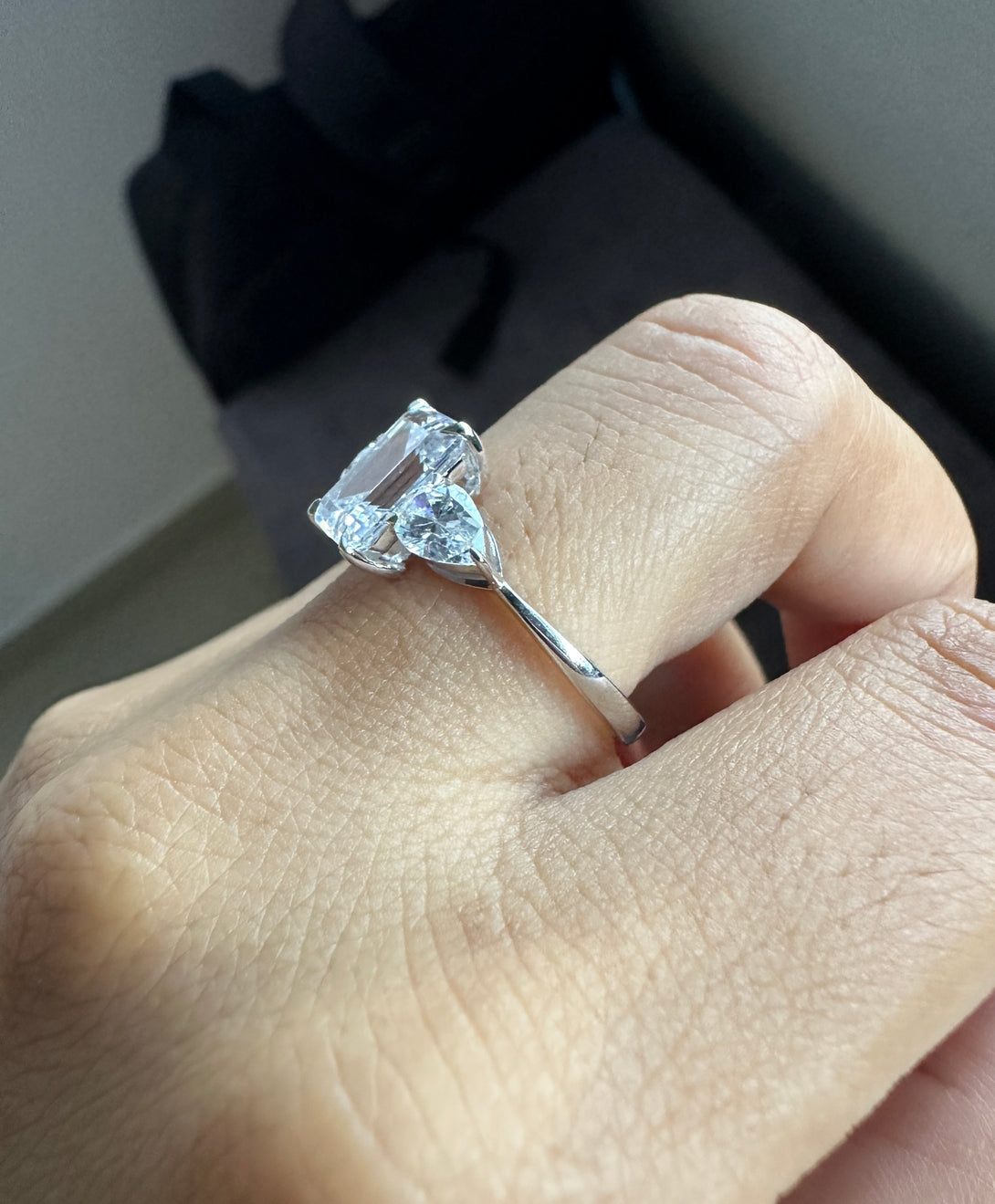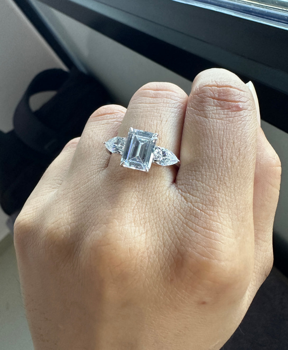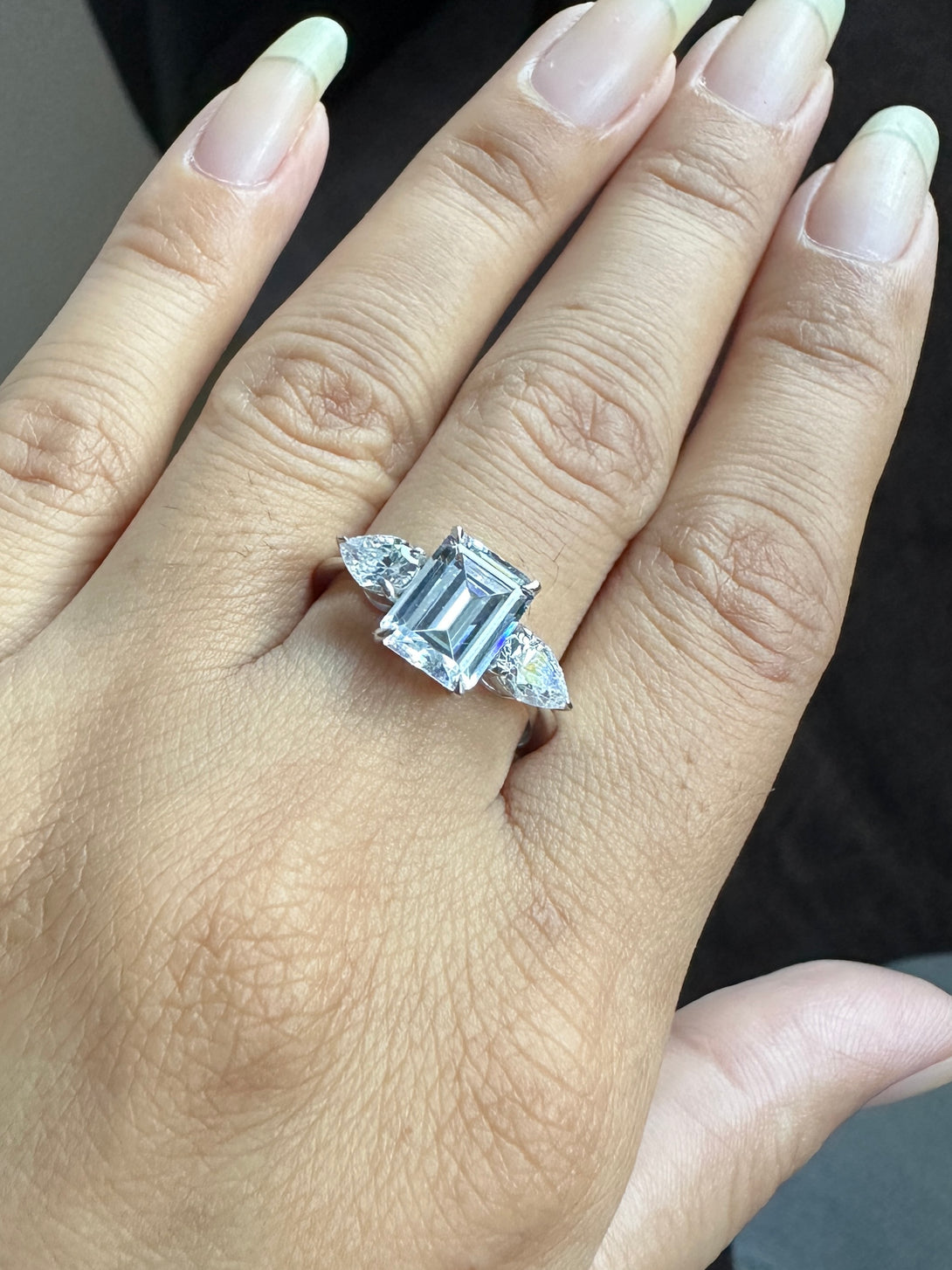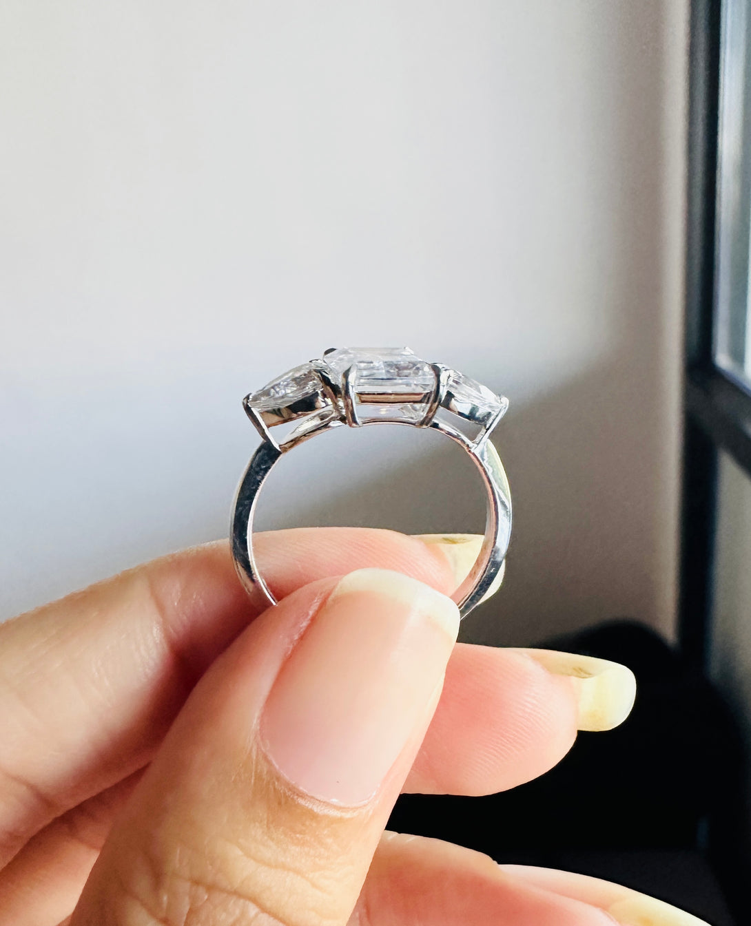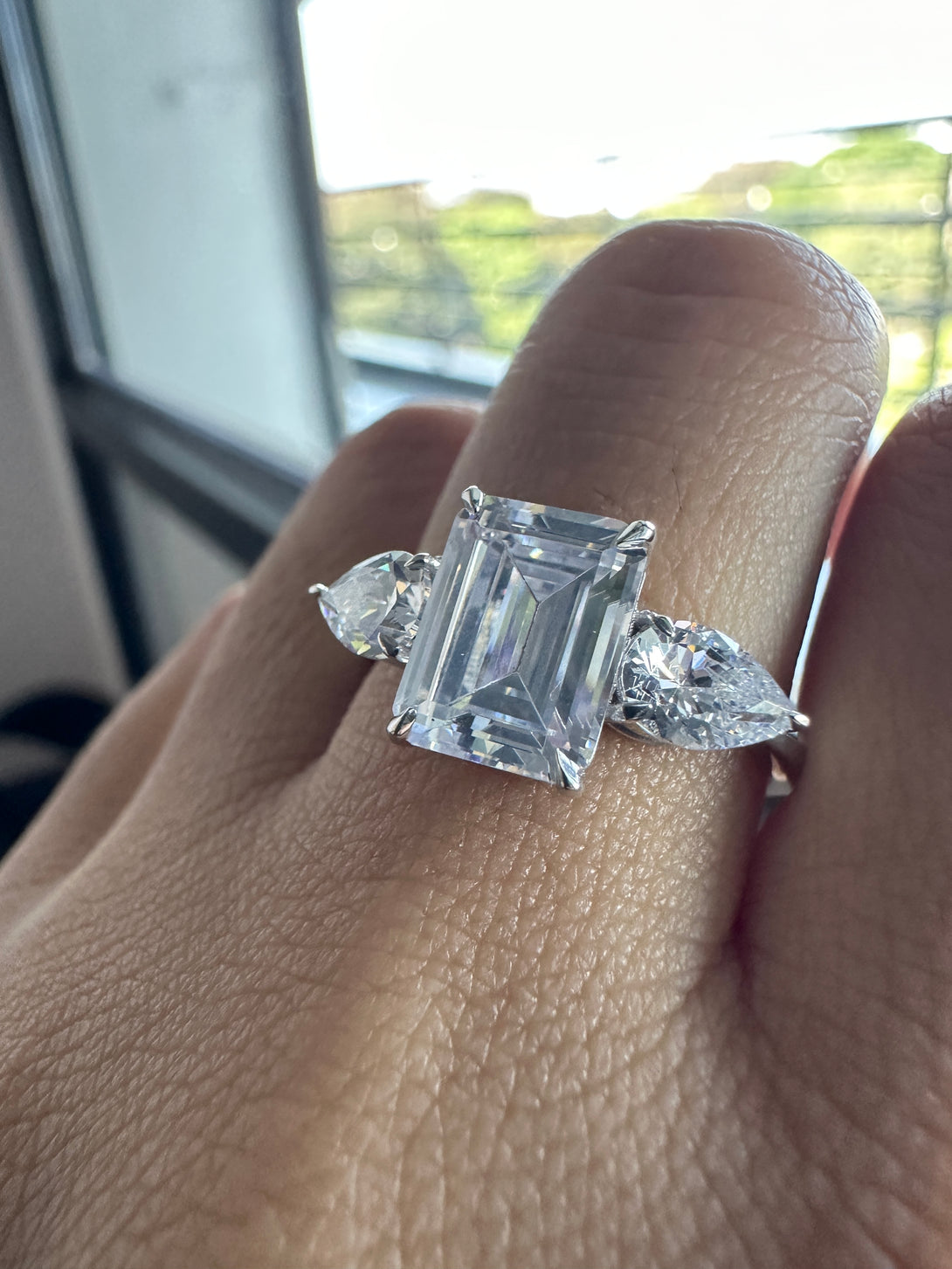 3 CTW Emerald Cut Moissanite Engagement Ring Three Stone Anniversary Gift Ring
