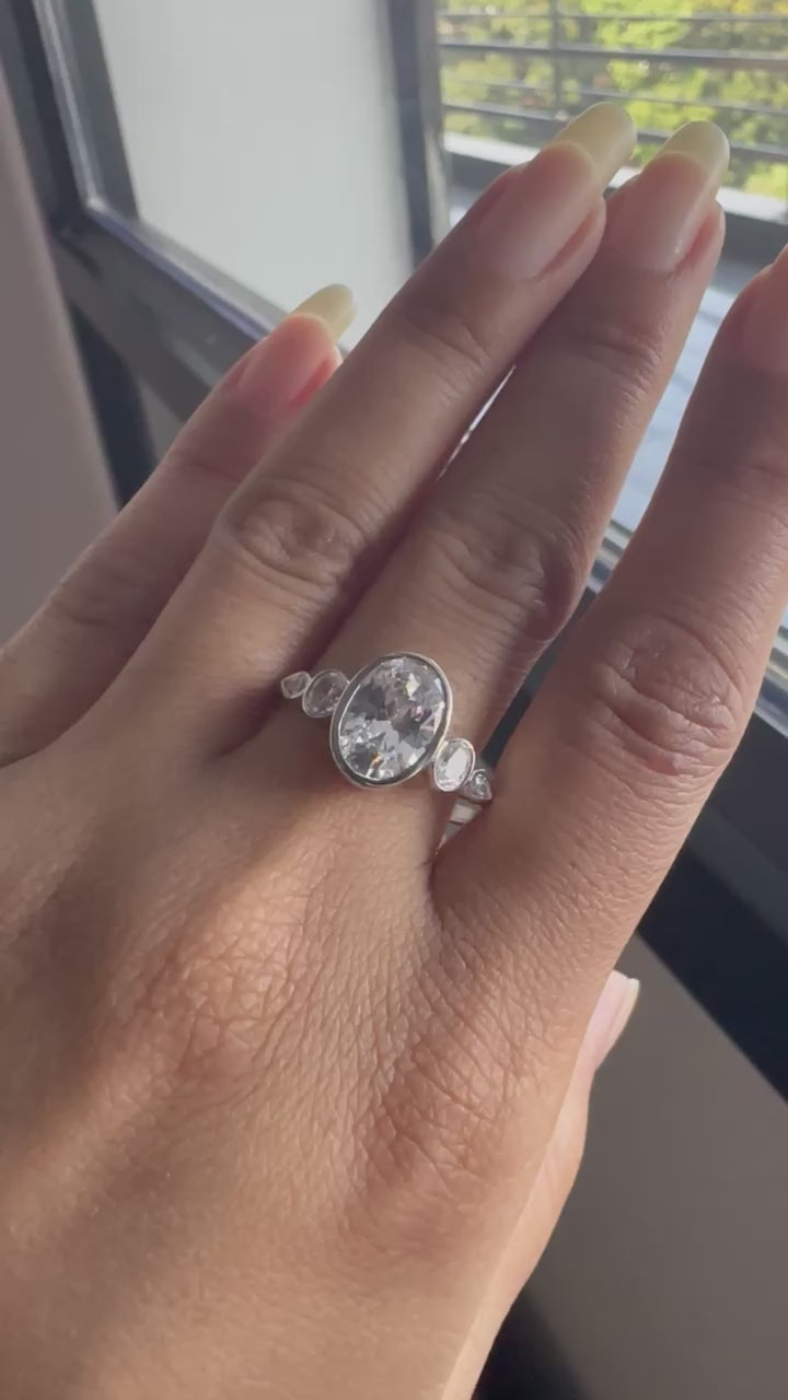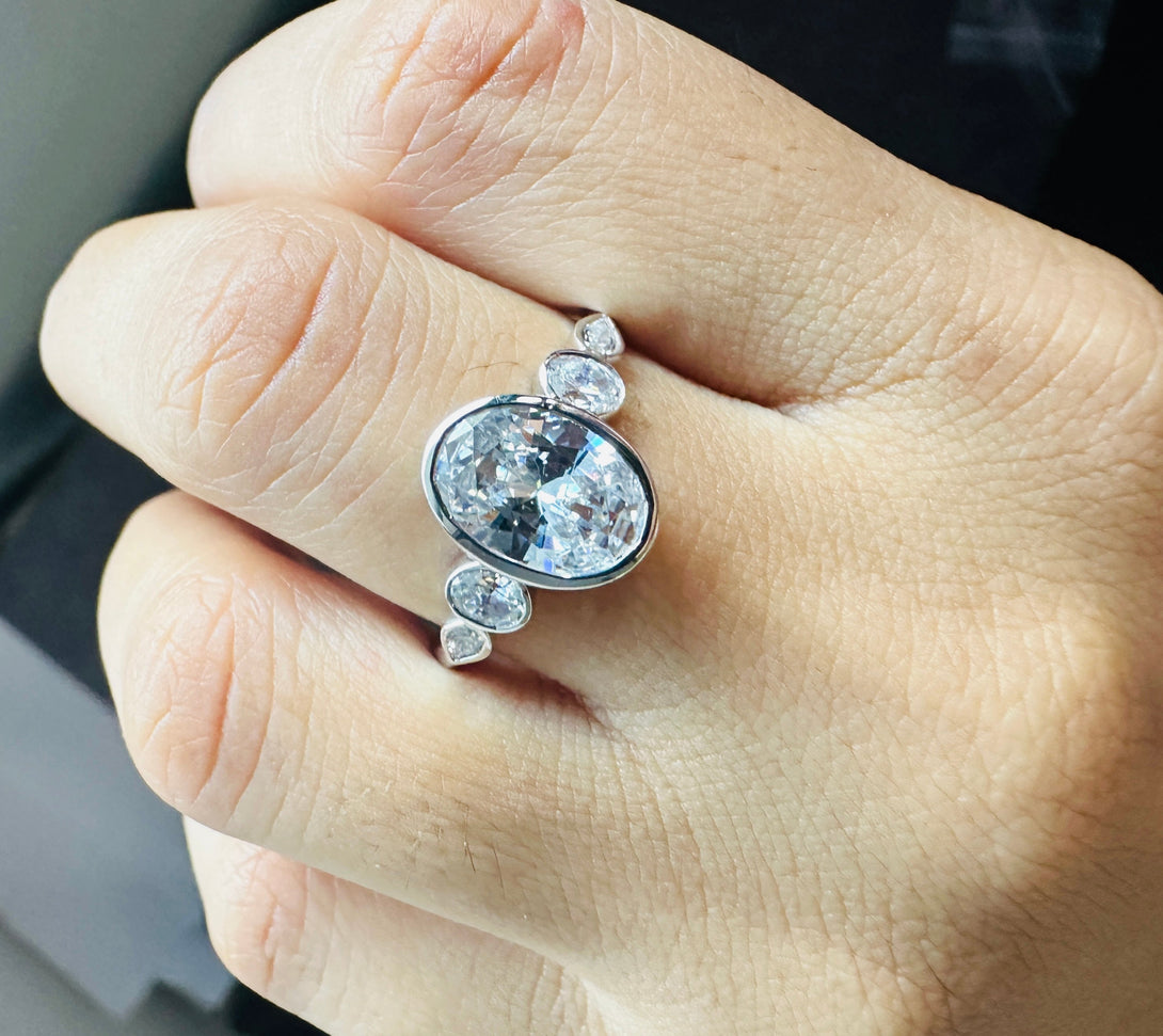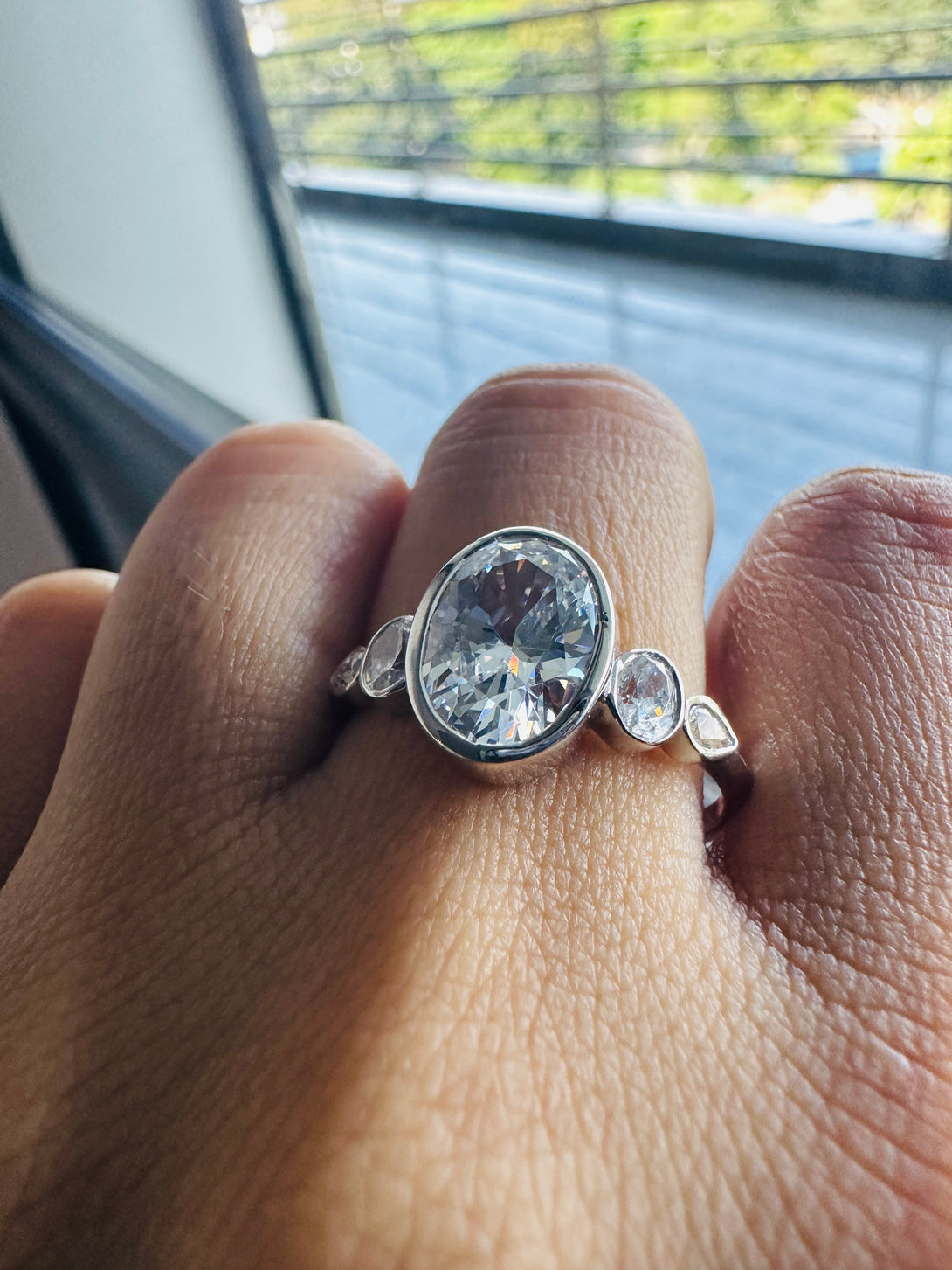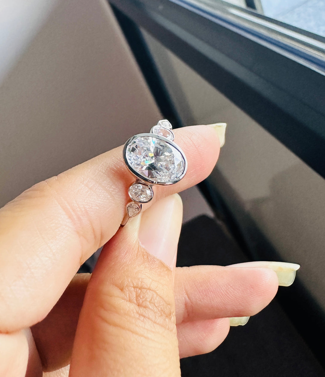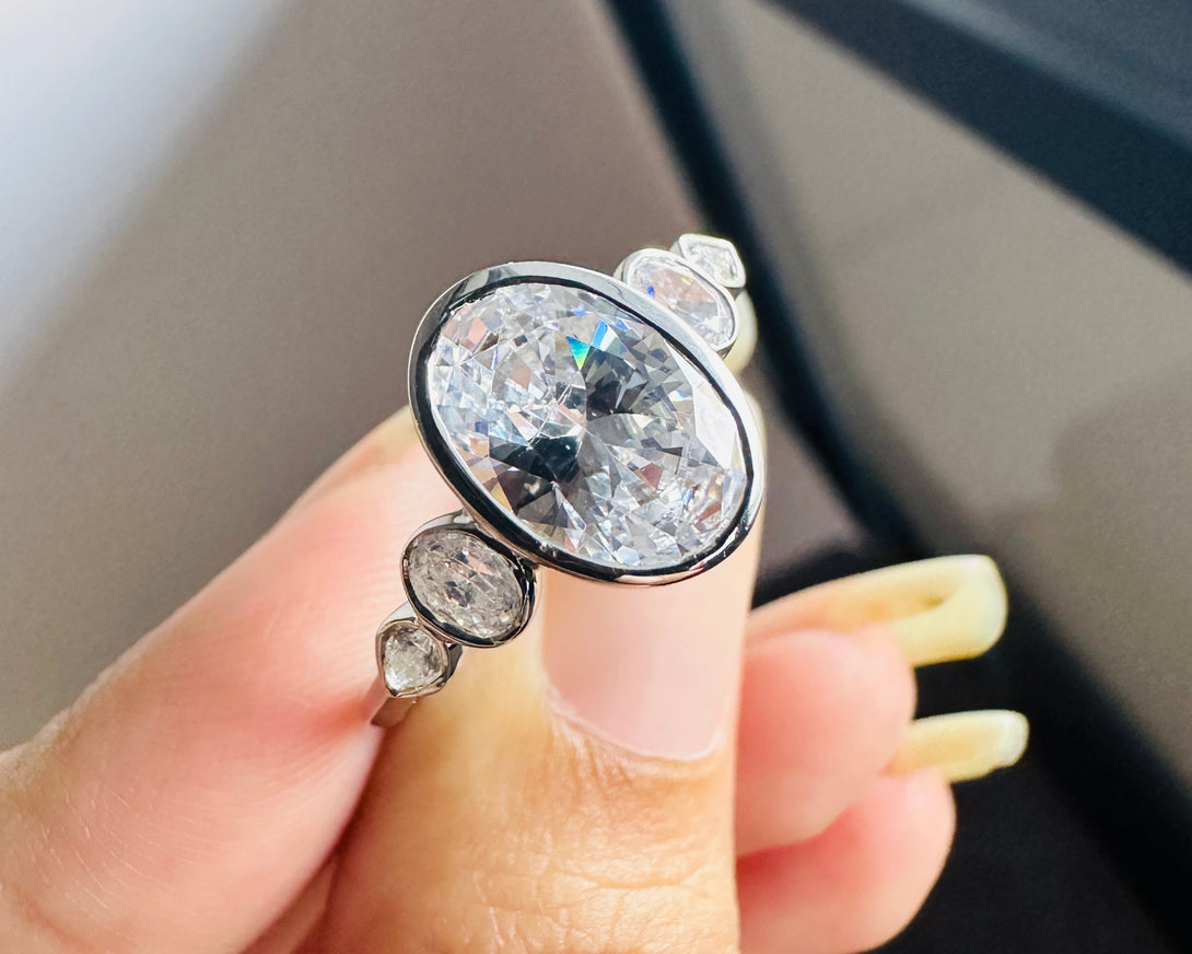 Bezel Set Oval Cut Moissanite Five Stone Engagement Ring Anniversary Gift Her