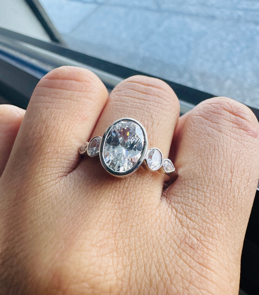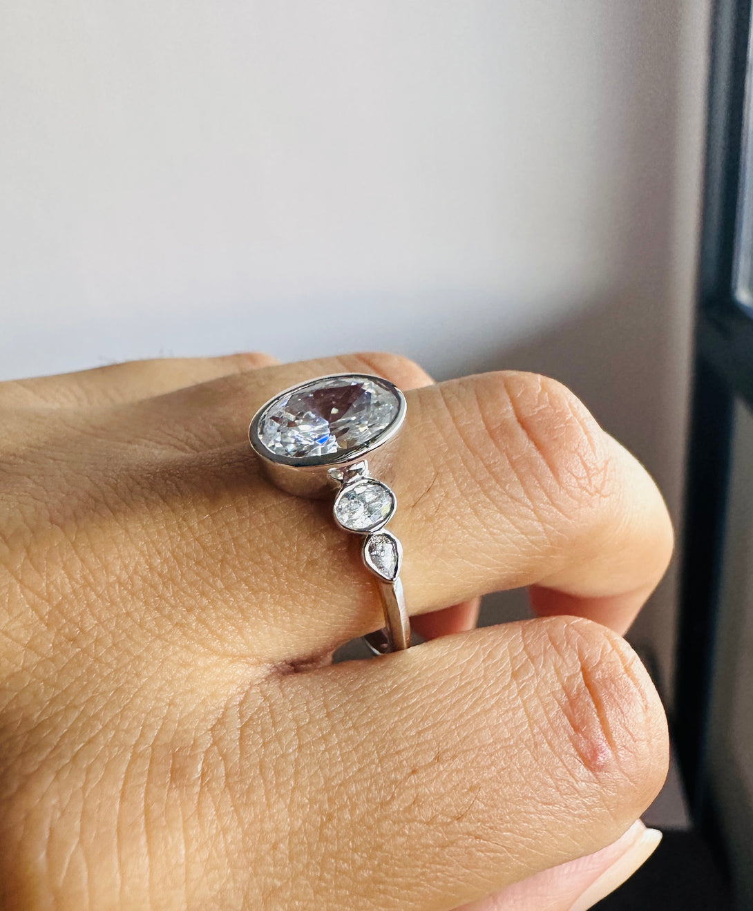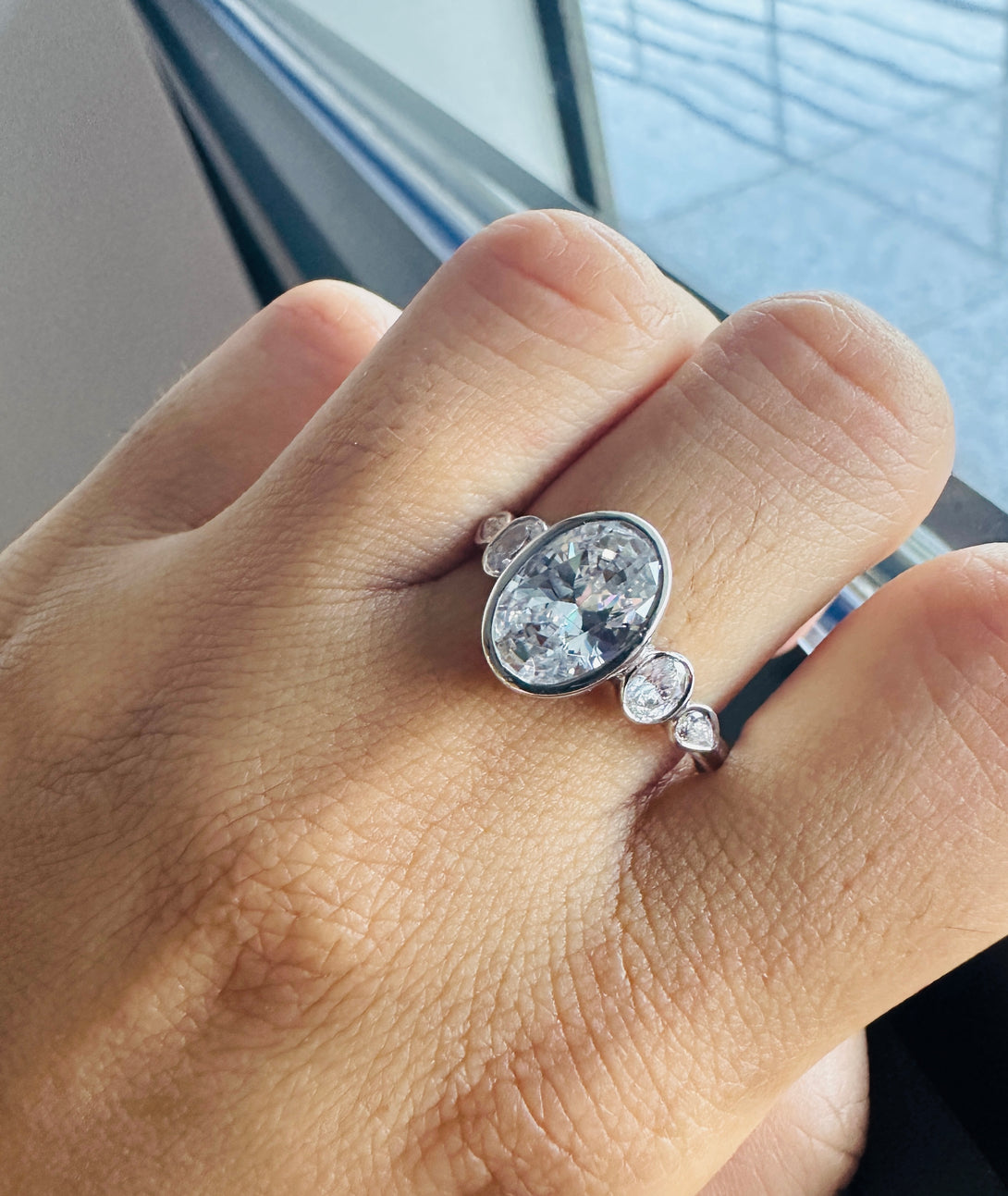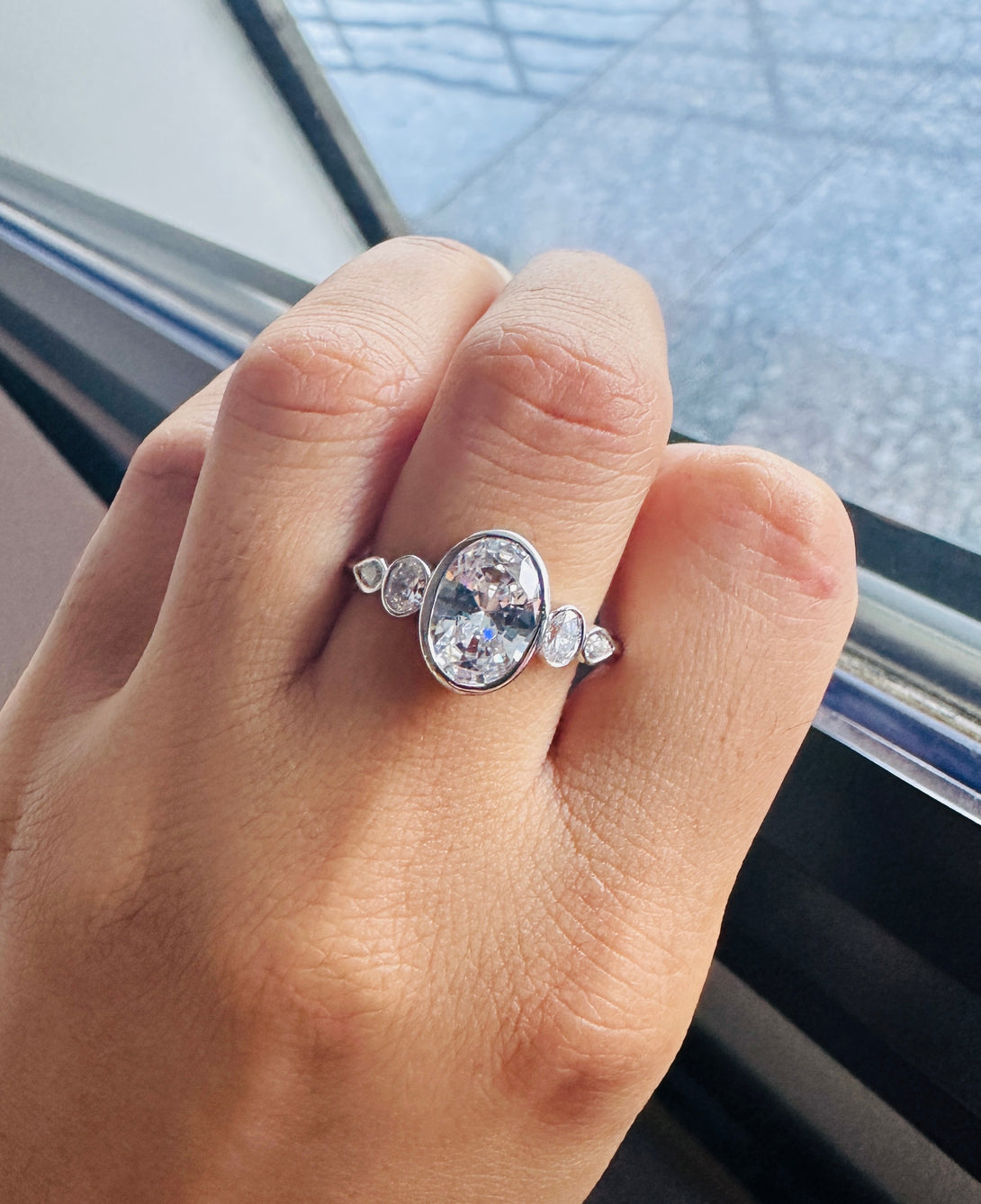 Bezel Set Oval Cut Moissanite Five Stone Engagement Ring Anniversary Gift Her